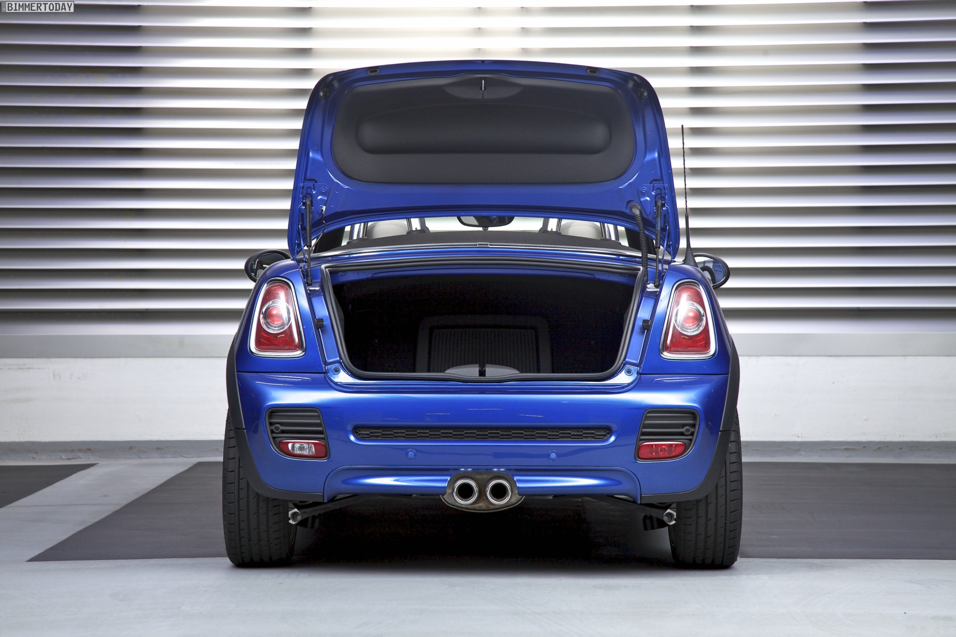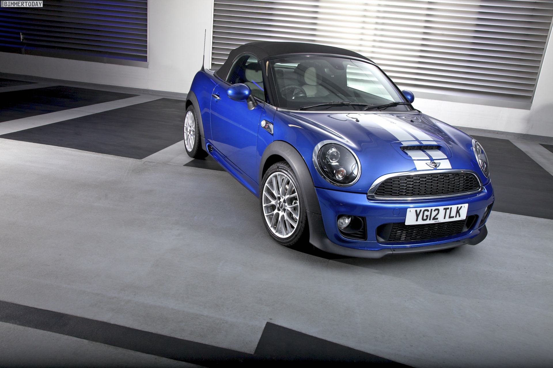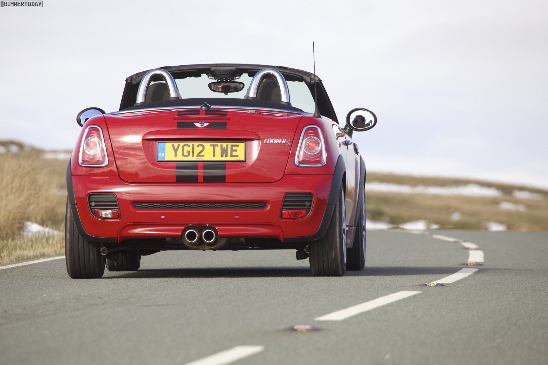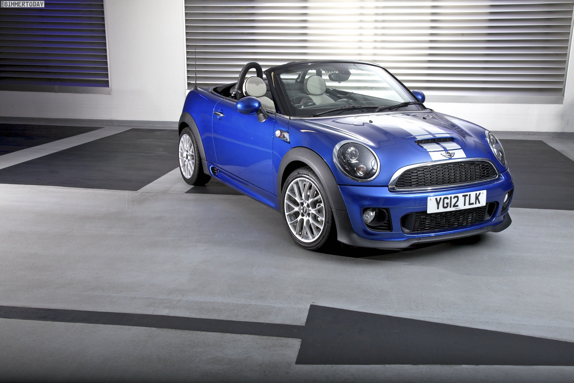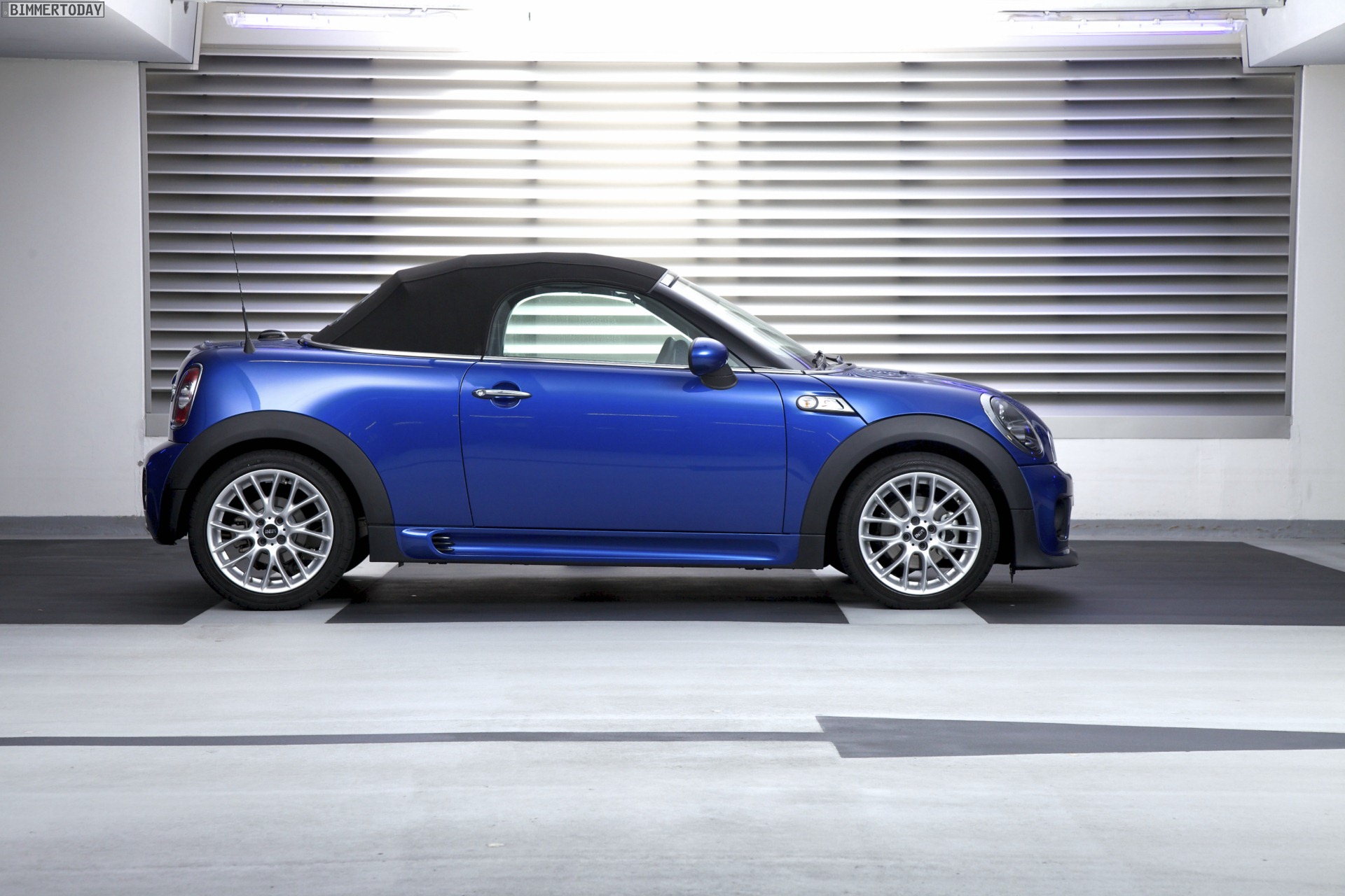 Zu sehen ist einerseits ein MINI Cooper S Roadster in Chili Red, der vom bekannten 1,6 Liter großen Turbo-Vierzylinder mit 184 PS angetrieben wird, andererseits wird ein blauer MINI Cooper SD Roadster mit 143 PS starkem Vierzylinder-Diesel in Szene gesetzt.