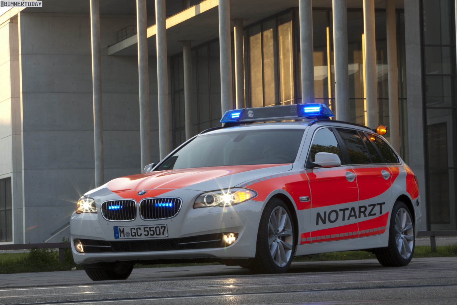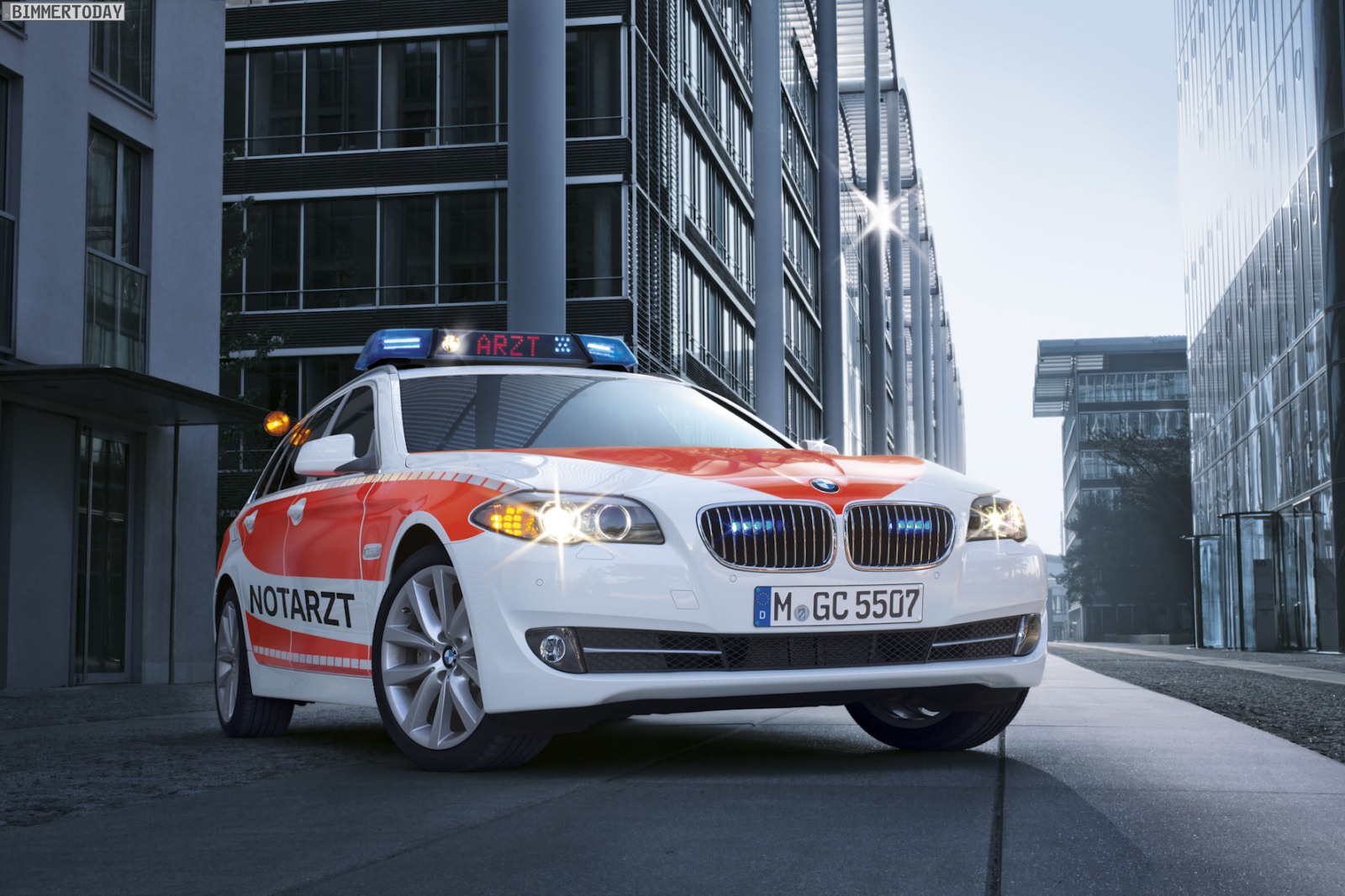 Gemeinsam mit nationalen und internationalen Behörden entwickelt BMW bereits seit mehr als 50 Jahren Fahrzeuge auf vier und zwei Rädern, die speziell an die Bedürfnisse von Rettungskräften angepasst sind. Bereits in der Entwicklung wird bei der BMW Group an die späteren Erfordernisse von Rettungsfahrzeugen gedacht, was die Integration der speziellen Sonderausstattungen später erleichtert. So lässt sich beispielsweise die Signalanlage auf dem Dach komfortabel über den iDrive-Controller oder eine Direktwahltaste auf der Mittelkonsole steuern.