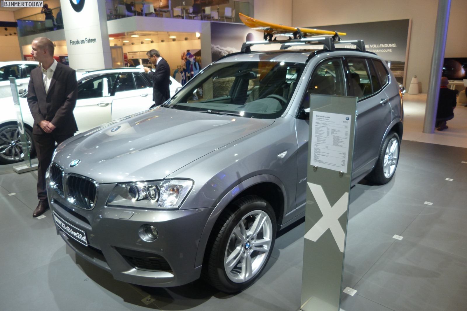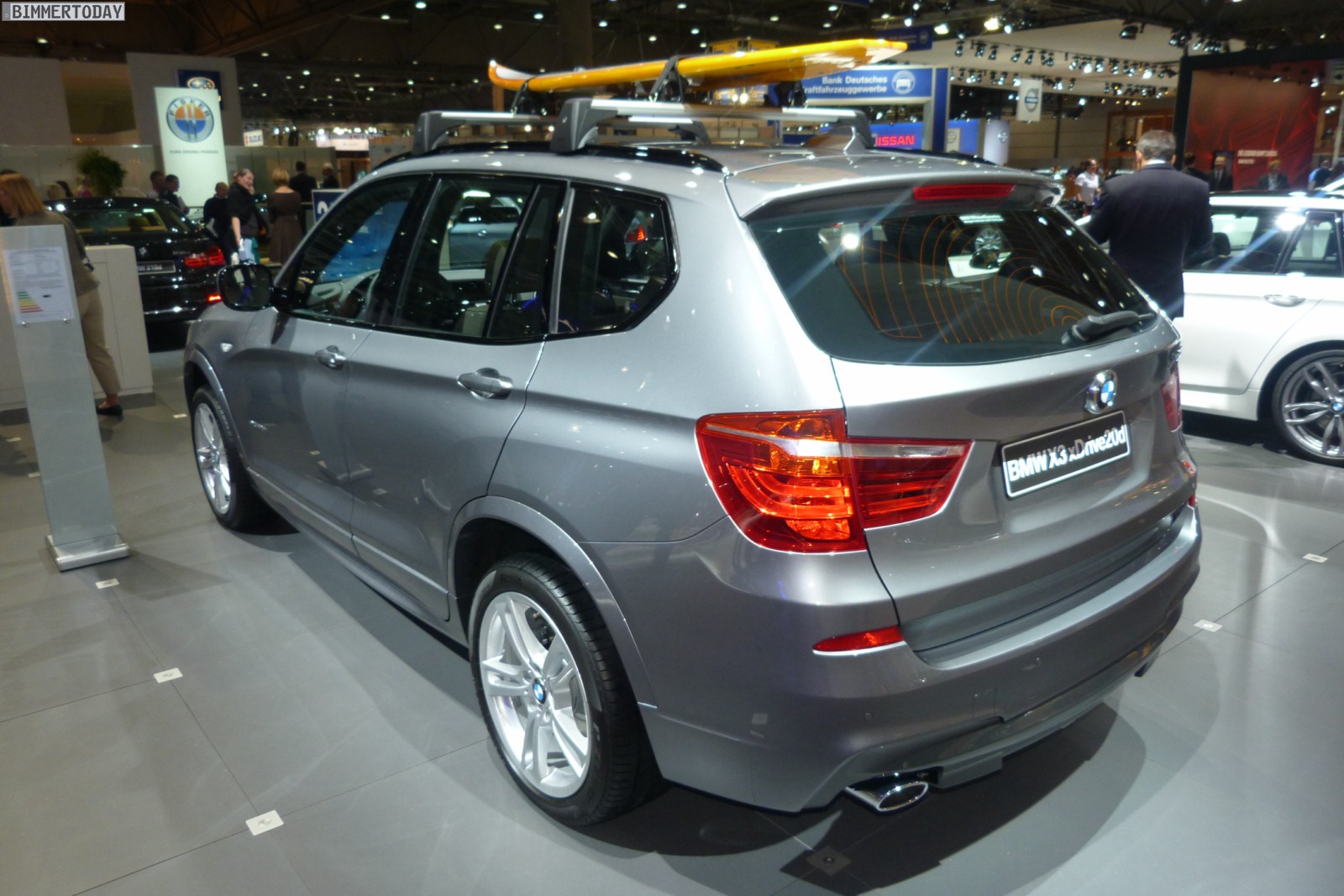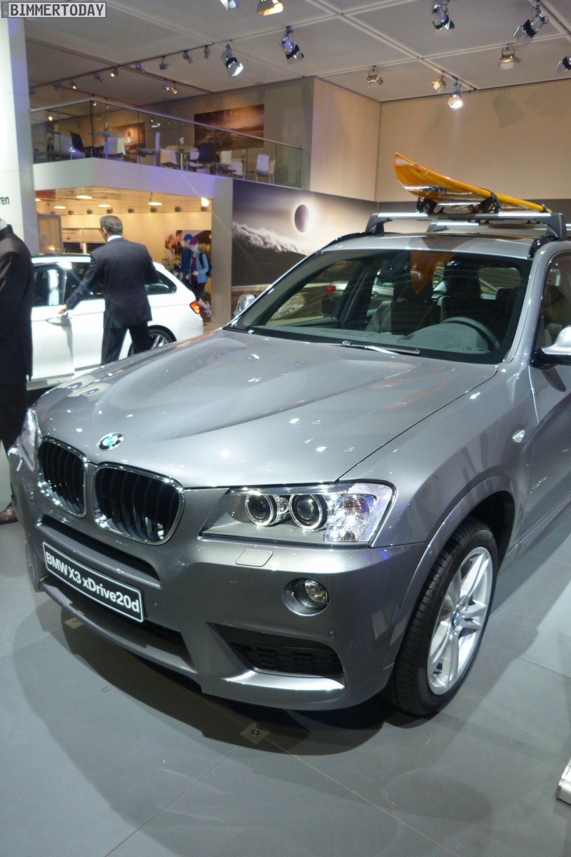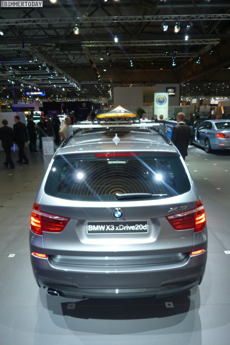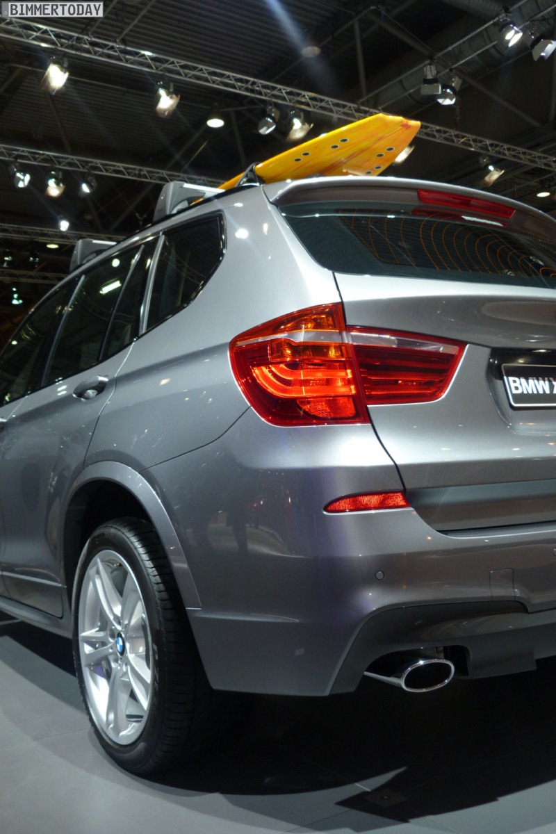 Neben den bereits thematisierten Neuheiten zeigt BMW auf der AMI Leipzig 2012 auch einen BMW X3 F25 mit M Sportpaket – ganz gewiss keine Neuheit, aber ohne Zweifel trotzdem ein Hingucker. Mit Blick auf das Surfbrett auf dem Dach und die damit verbundene Positionierung als Freizeitbegleiter könnte besagter X3 bei manchem Beobachter auch als “Gegenspieler im Geiste” zur schon auf der Auto China Peking 2012 erstmals gezeigten Studie Audi Q3 jinlong yufeng wahrgenommen werden, die sich ebenfalls speziell an junge und dynamische Freizeit-Sportler richtet.