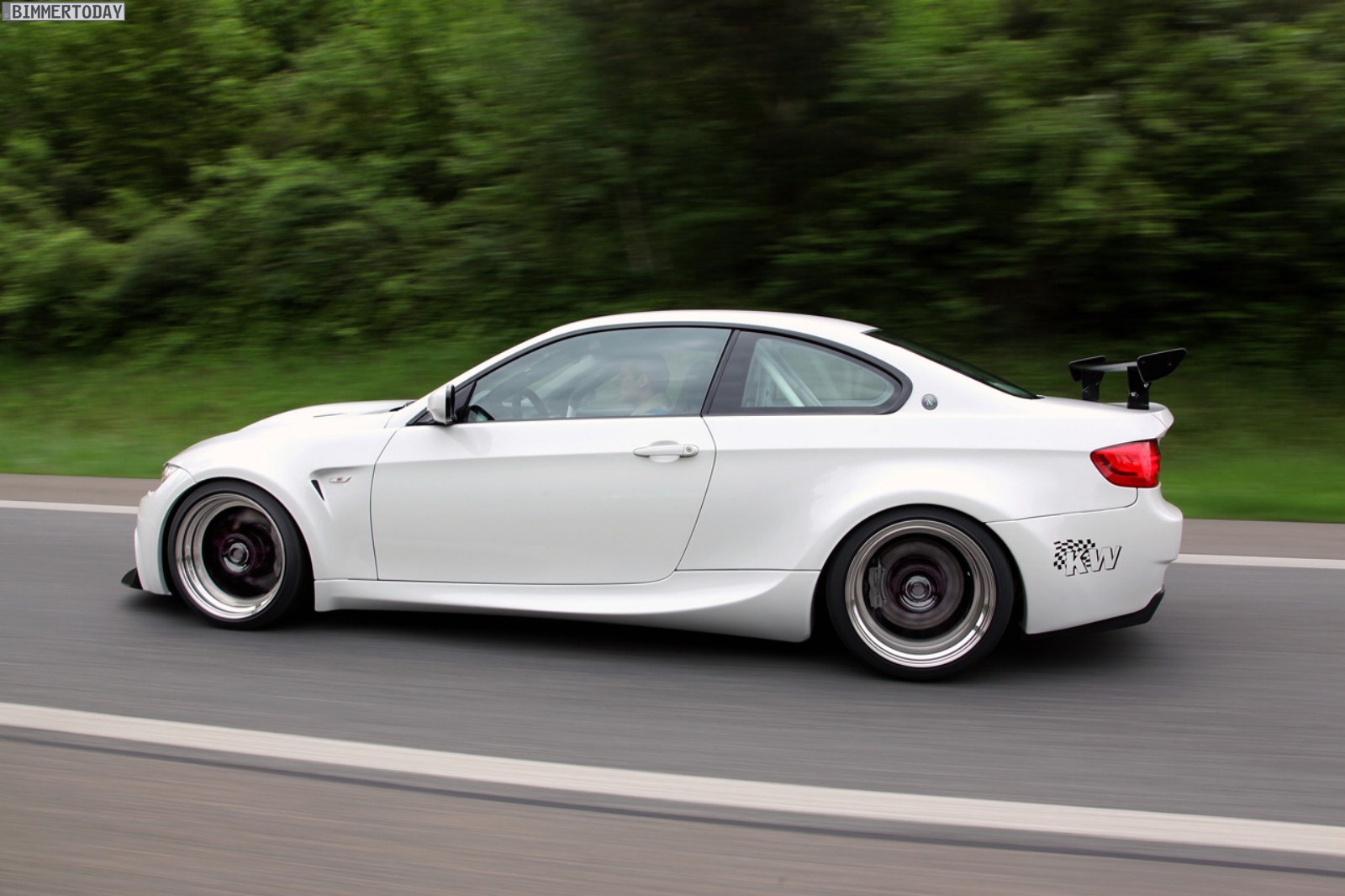 Im beinahe komplett ausgeräumten Innenraum vermitteln Recaro-Schalensitze aus Carbon, ein Performance-Lenkrad mit Alcantara-Bezug und auf Wunsch auch ein Überrollkäfig maximale Sicherheit und Rennsport-Flair. Da außerdem alle neuen Karosserie-Komponenten aus Carbon gefertigt sind, liegt das Gewicht des Tuning-Boliden satte 250 Kilogramm unter einem serienmäßigen BMW 335i Coupé der aktuellen Generation E92 – 1.430 Kilogramm treffen auf 450 PS!