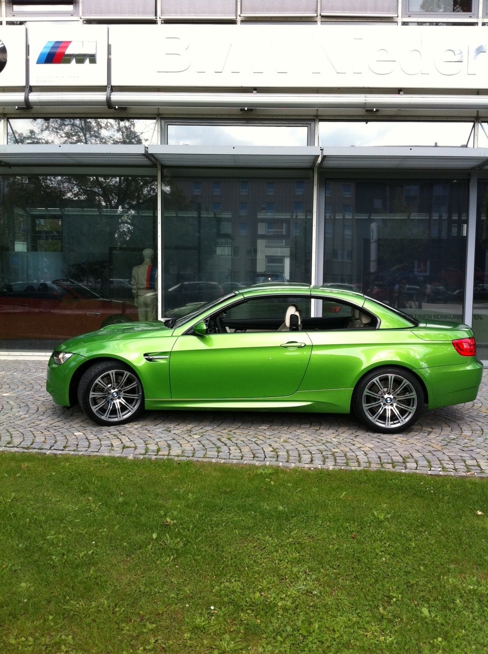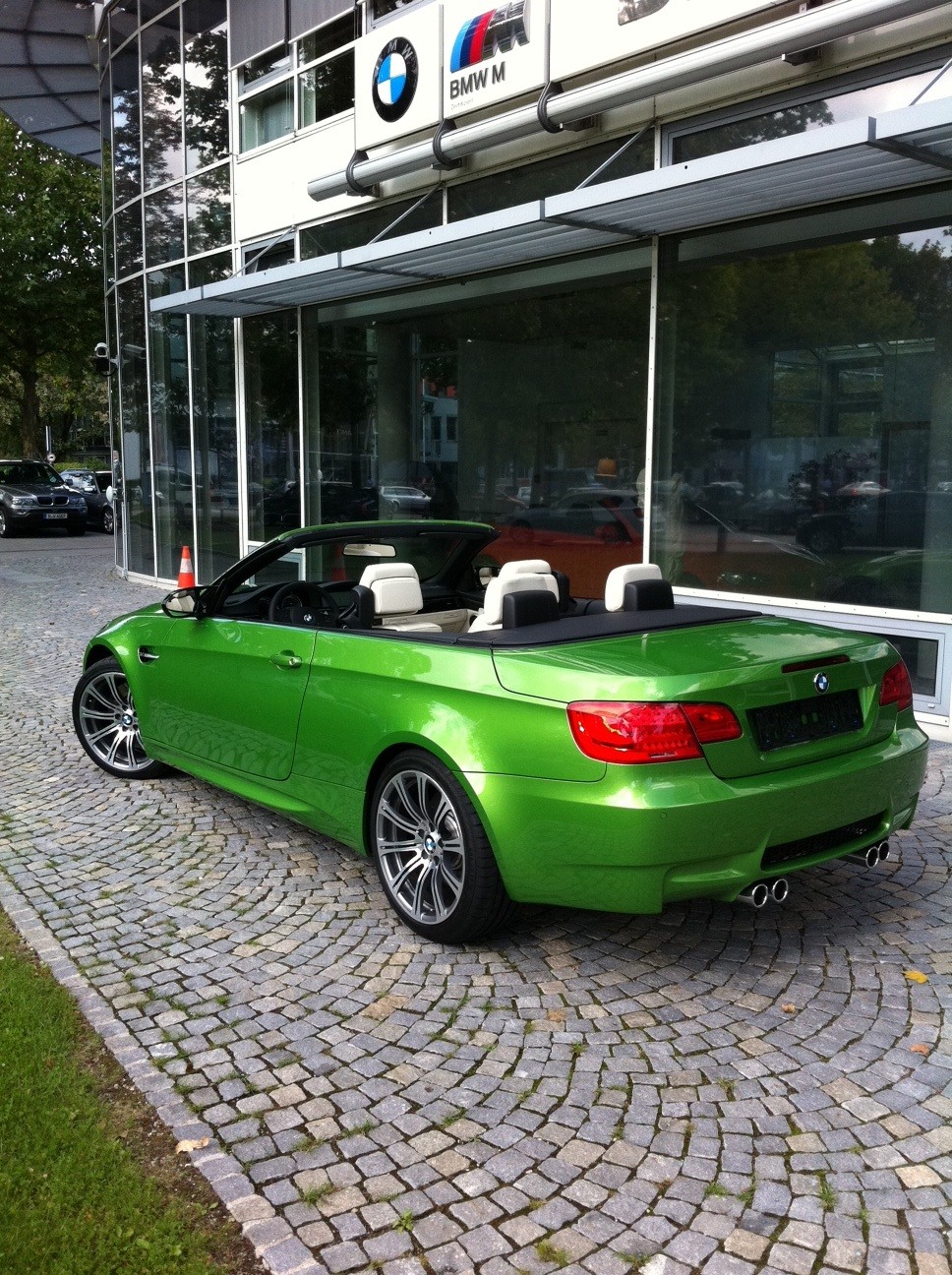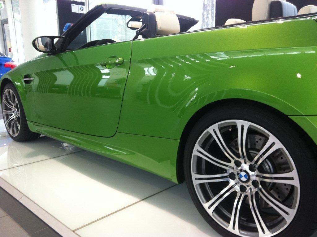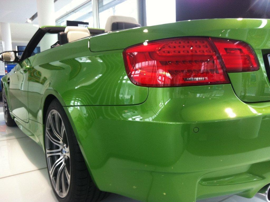 Nachdem wir vor einigen Monaten über ein BMW M3 Coupé in Java Grün berichtet hatten, haben wir nun Bilder vom bisher einzigen BMW M3 Cabrio in Java Grün erhalten. Das Fahrzeug stand Ende 2011 bei der Niederlassung München und ist mittlerweile längst in liebenden Händen angekommen. Technisch handelt es sich um ein normales M3 Cabrio E93 LCI mit 420 PS starkem V8-Hochdrehzahlmotor.