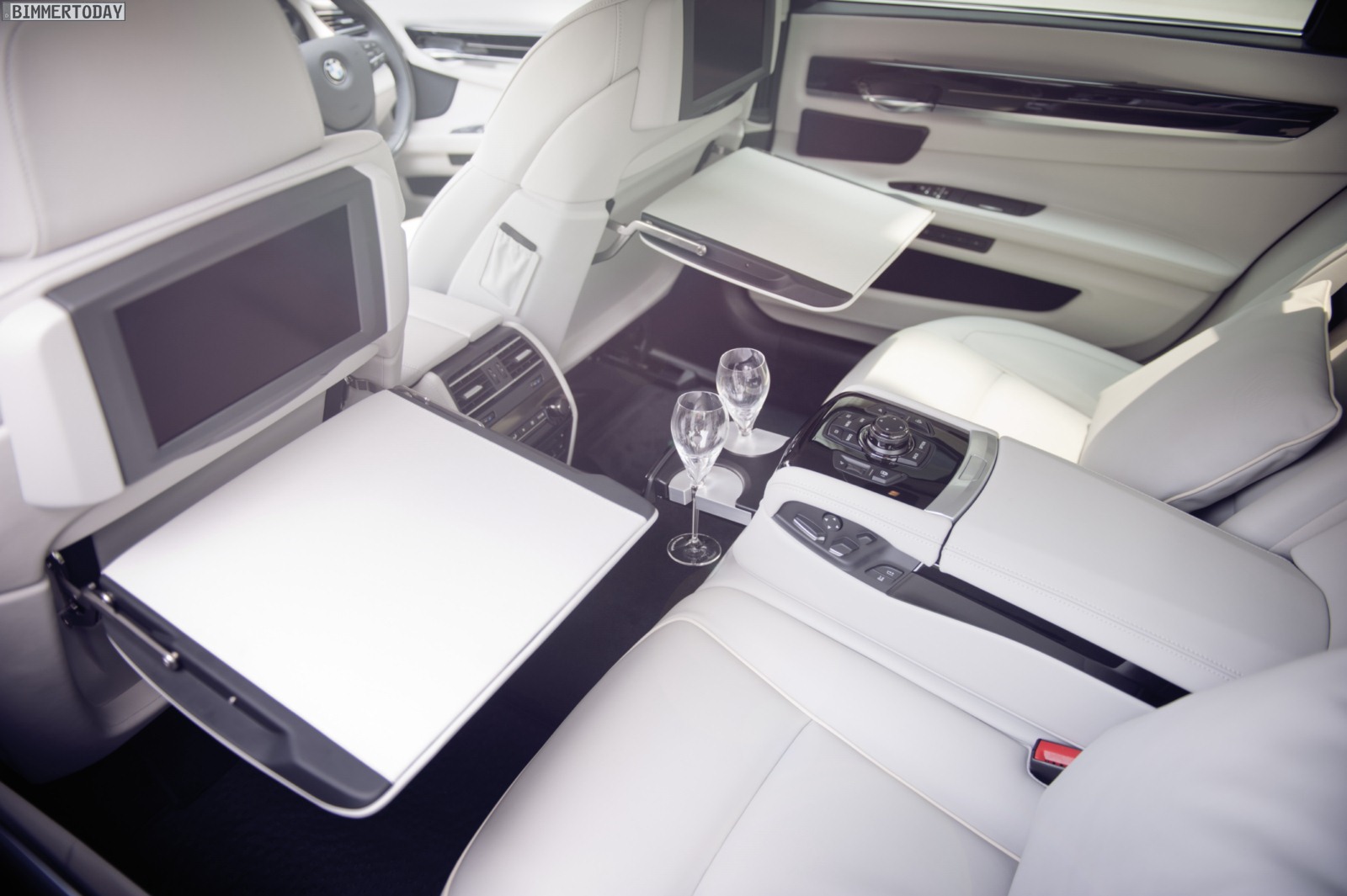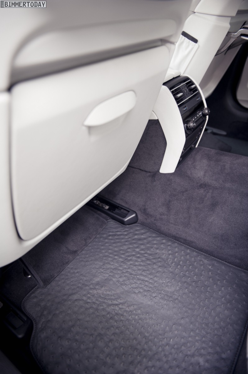 Alle fünf Exemplare des BMW Individual 7 Series by Didit Hediprasetyo kommen mit BMW Individual Kühlfach und Champagnerglashaltern im Fond, einem mit seidengrauem Leder bezogenen Klapptisch und Fond Entertainment System. In die Kopfstützen und zwei zusätzliche Kissen aus platinfarbenem Straußenleder ist ein Logo des Designers integriert, außerdem bietet das Sondermodell des BMW 7er ein in den Dachhimmel eingelassenes Kosmetikfach und auf Wunsch einen hochwertigen und farblich passenden Hundekorb aus Leder und Alcantara.