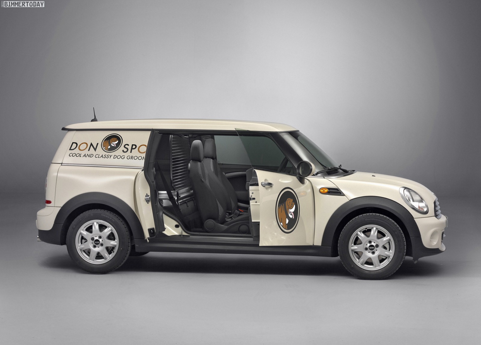 Die Abmessungen des auf Transportaufgaben optimierten MINI entsprechen denen des Clubman, allerdings verfügt der neue Clubvan trotz seiner fünf Türen lediglich über zwei Sitze und einen entsprechend modifizierten Innenraum.