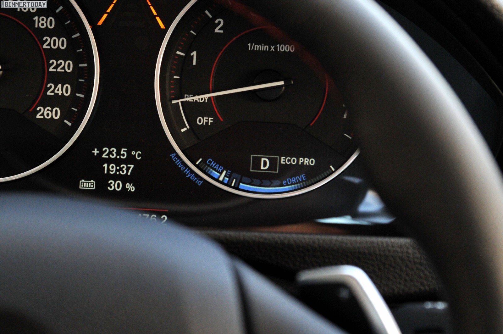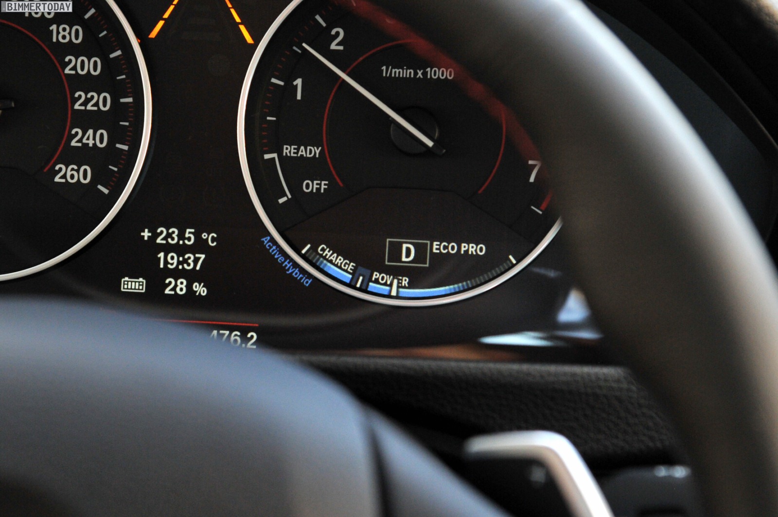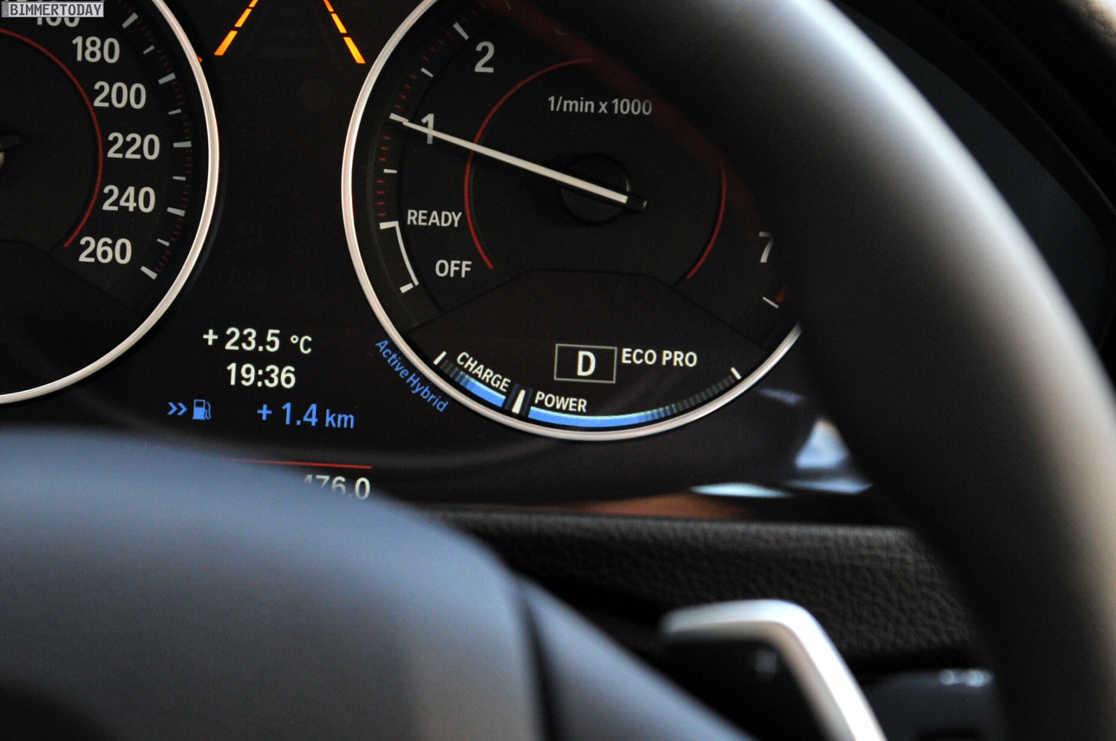 Dennoch handelt es sich beim ActiveHybrid 3 nicht “nur” um eine gewöhnliche Mittelklasse-Limousine mit üppiger Motorisierung, was dem Nutzer spätestens beim Motorstart auffällt – denn abgesehen davon, dass die Nadel im Drehzahlmesser von “Off” auf “Ready” springt, passiert zunächst nichts. Der Verbrennungsmotor hält sich vornehm zurück und überlässt dem innerhalb des Getriebegehäuses untergebrachten Elektromotor die Aufgabe, das Fahrzeug völlig lautlos aus der Parkposition zu fahren.