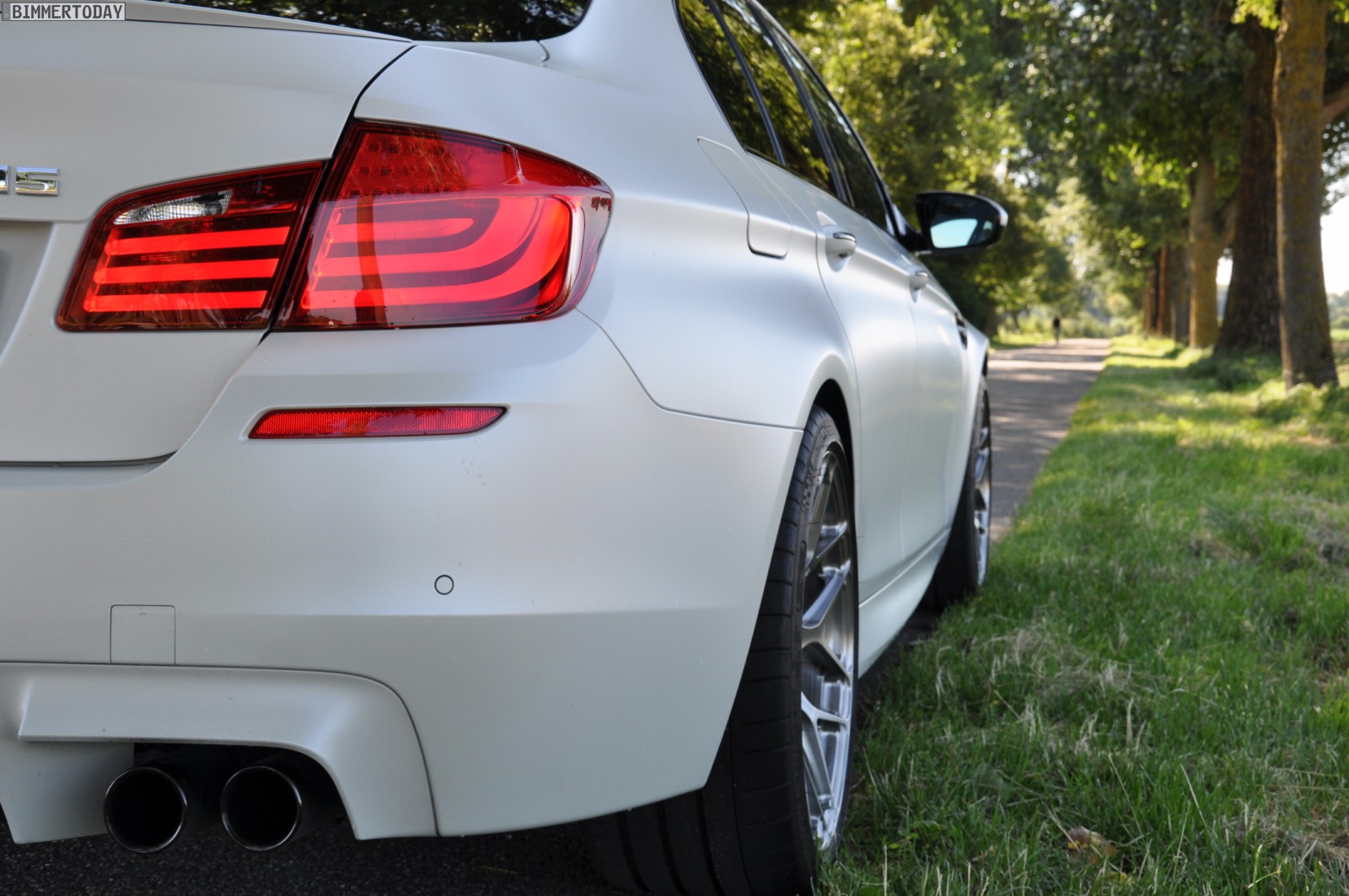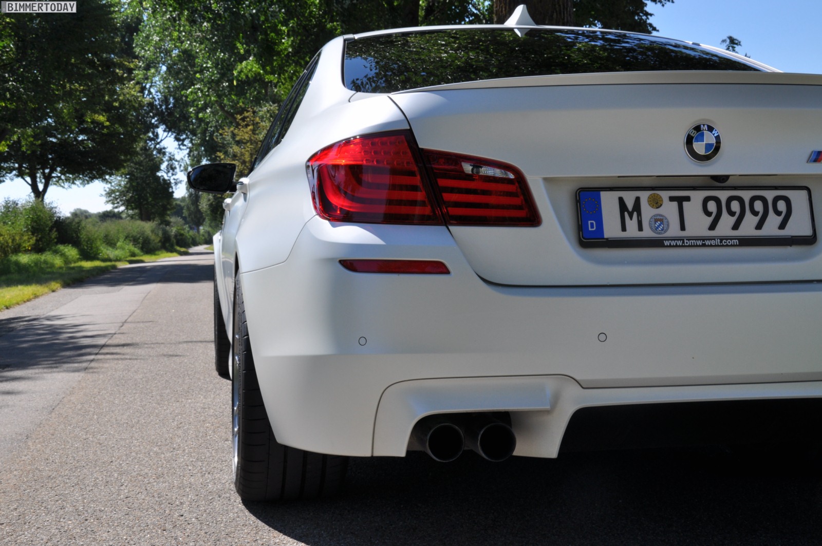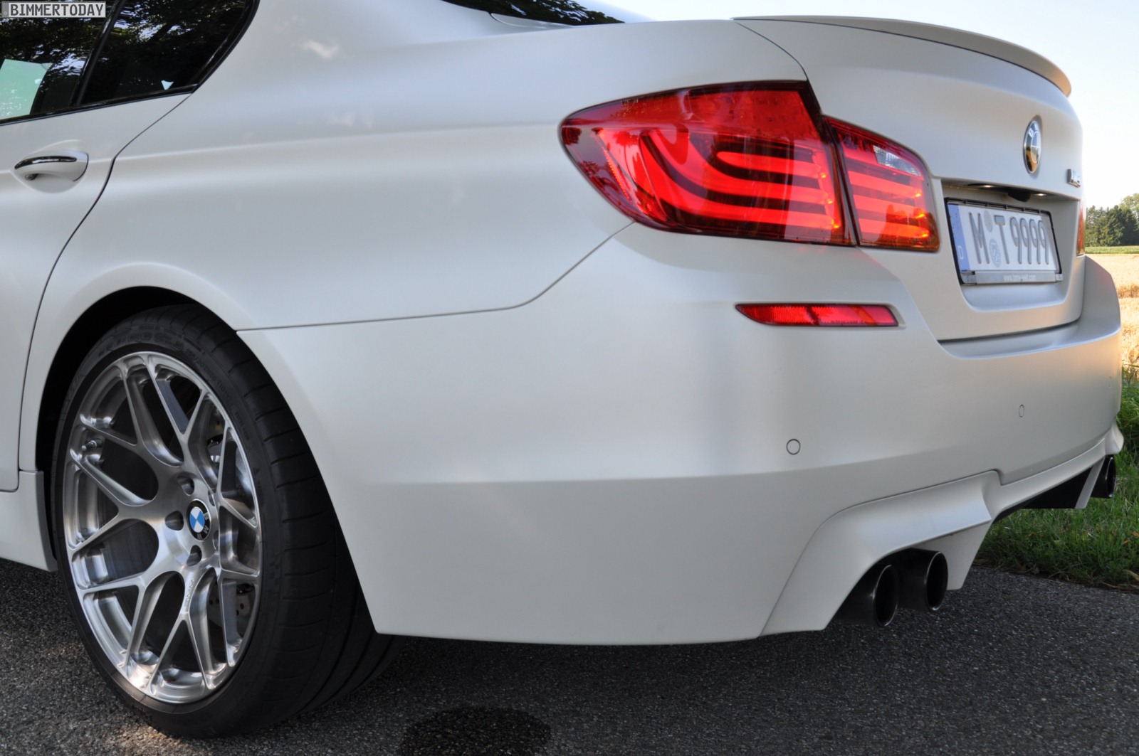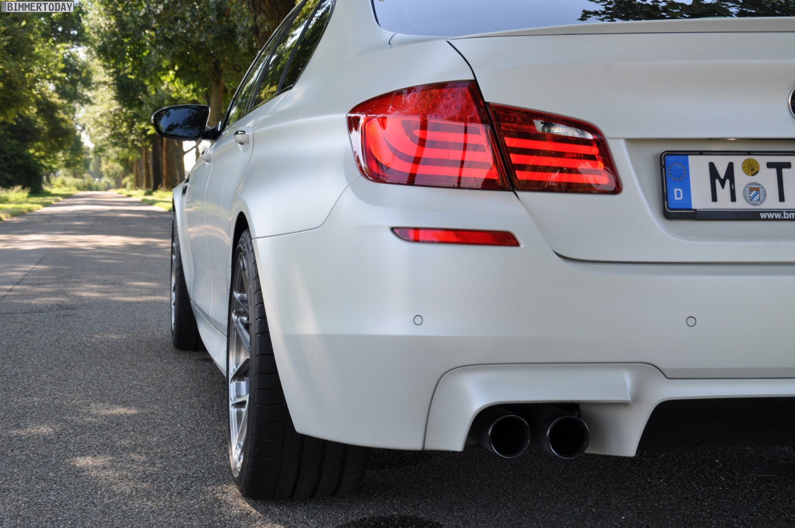 Leider ist die von Jürgen vorgenommene Individualisierung nicht ganz billig, denn allein für die matte Lackierung in Frozen White wünscht BMW Individual eine Überweisung in Höhe von 4.600 Euro, weitere 3.200 Euro werden für die Exterieur-Umfänge in Chrom dunkel fällig. Einen kurzen Eindruck vom hier gezeigten BMW M5 gab es übrigens schon in dem von uns vor wenigen Tagen thematisierten Video zu BMW Individual, in dem auch einige andere Schmuckstücke zu sehen sind.