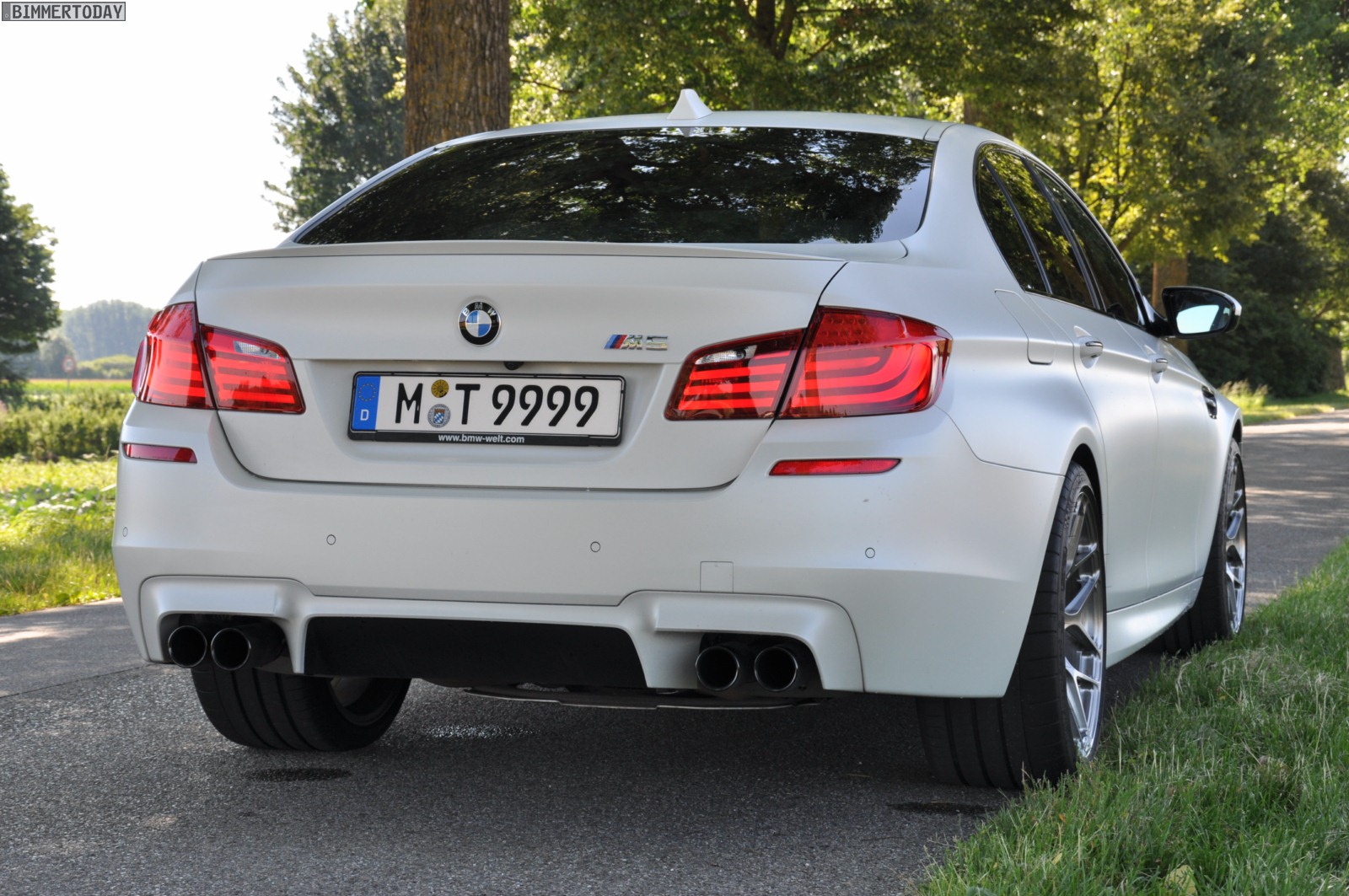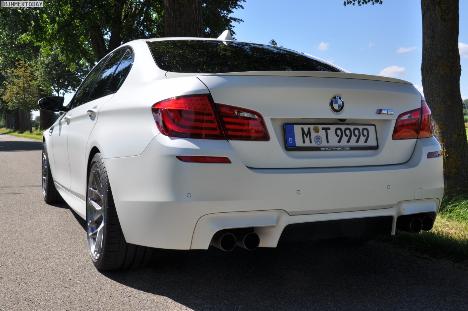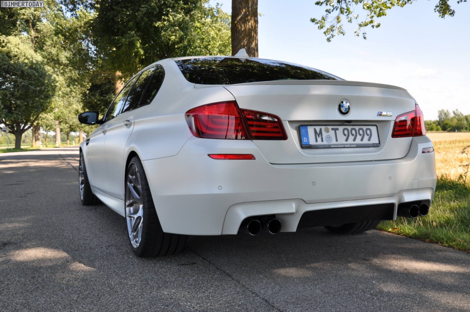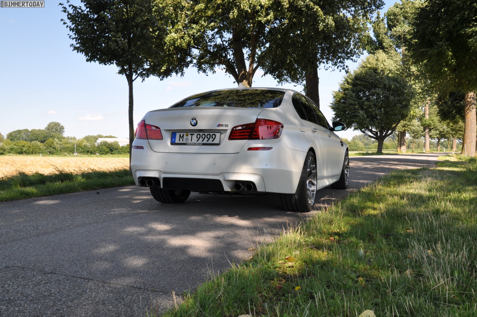 Leider ist die von Jürgen vorgenommene Individualisierung nicht ganz billig, denn allein für die matte Lackierung in Frozen White wünscht BMW Individual eine Überweisung in Höhe von 4.600 Euro, weitere 3.200 Euro werden für die Exterieur-Umfänge in Chrom dunkel fällig. Einen kurzen Eindruck vom hier gezeigten BMW M5 gab es übrigens schon in dem von uns vor wenigen Tagen thematisierten Video zu BMW Individual, in dem auch einige andere Schmuckstücke zu sehen sind.
