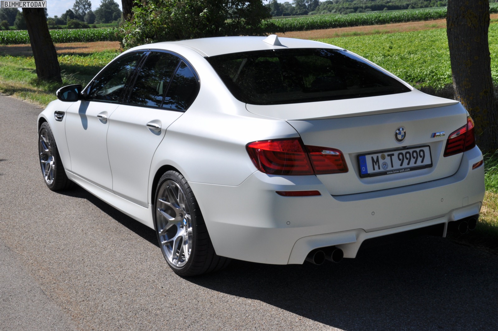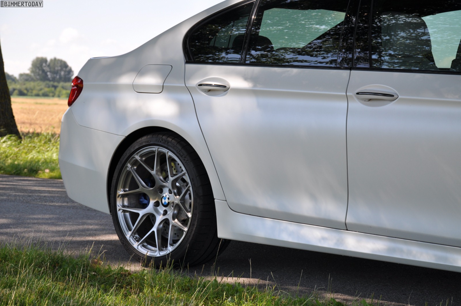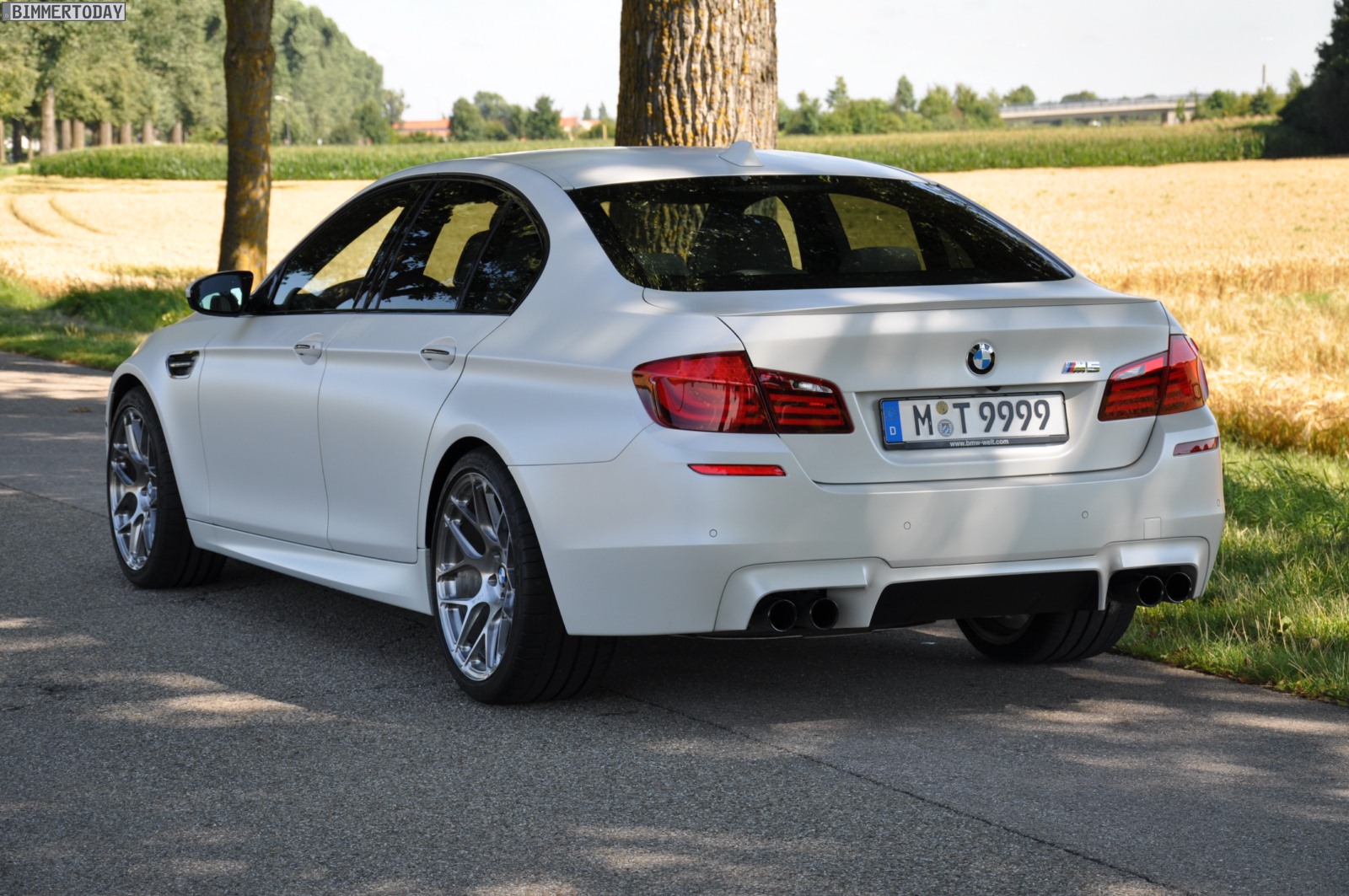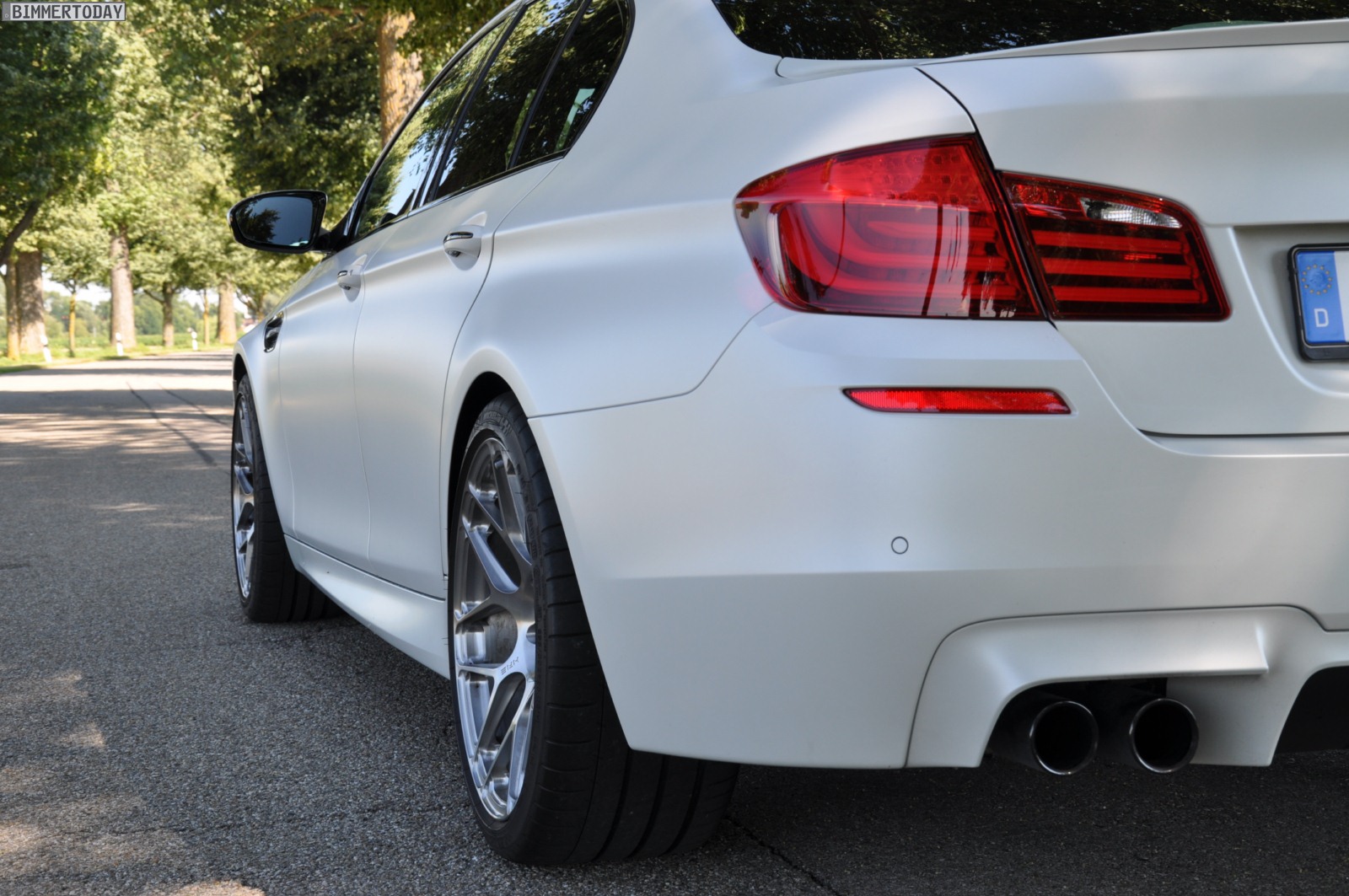Leider ist die von Jürgen vorgenommene Individualisierung nicht ganz billig, denn allein für die matte Lackierung in Frozen White wünscht BMW Individual eine Überweisung in Höhe von 4.600 Euro, weitere 3.200 Euro werden für die Exterieur-Umfänge in Chrom dunkel fällig. Einen kurzen Eindruck vom hier gezeigten BMW M5 gab es übrigens schon in dem von uns vor wenigen Tagen thematisierten Video zu BMW Individual, in dem auch einige andere Schmuckstücke zu sehen sind.