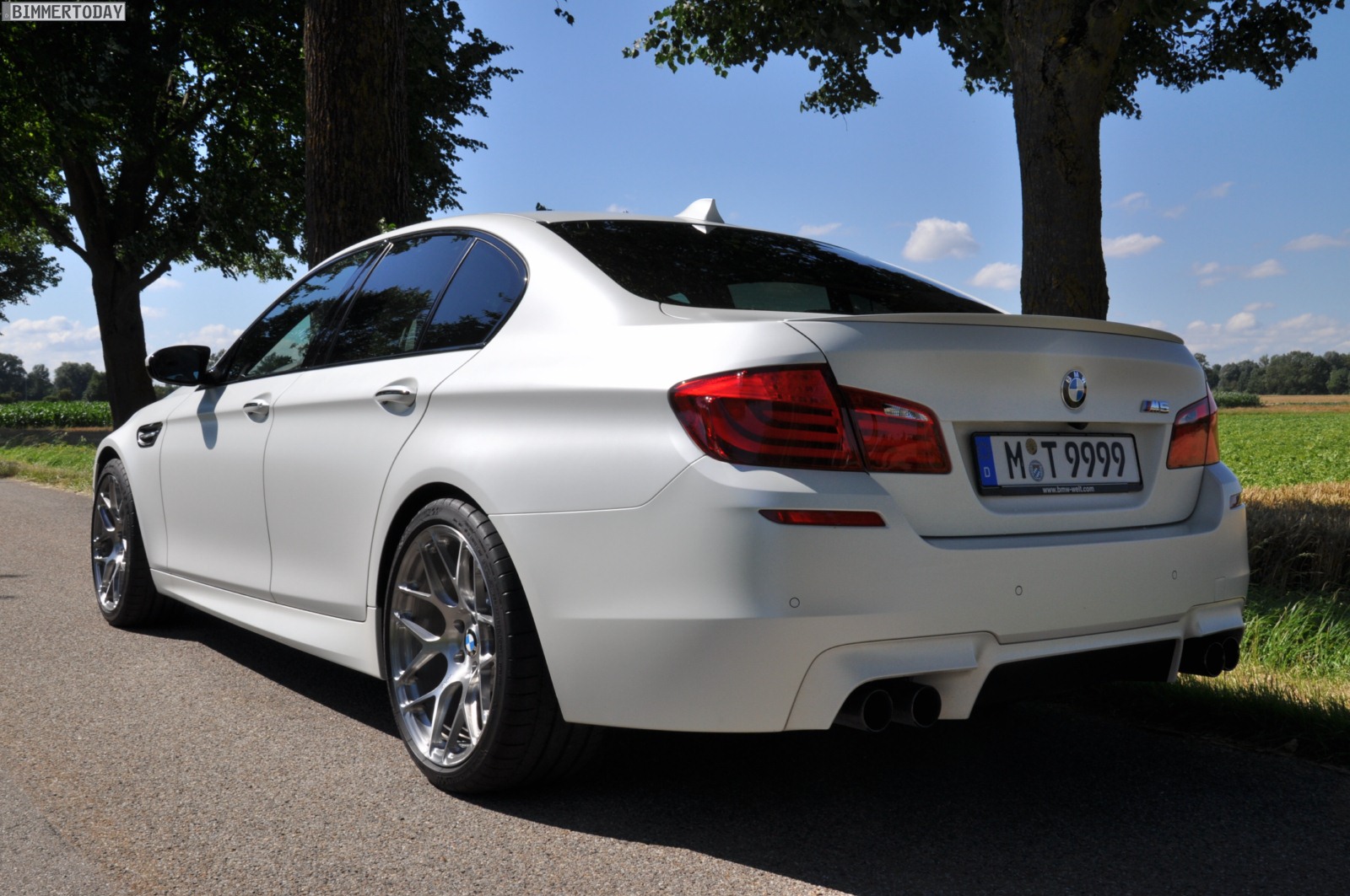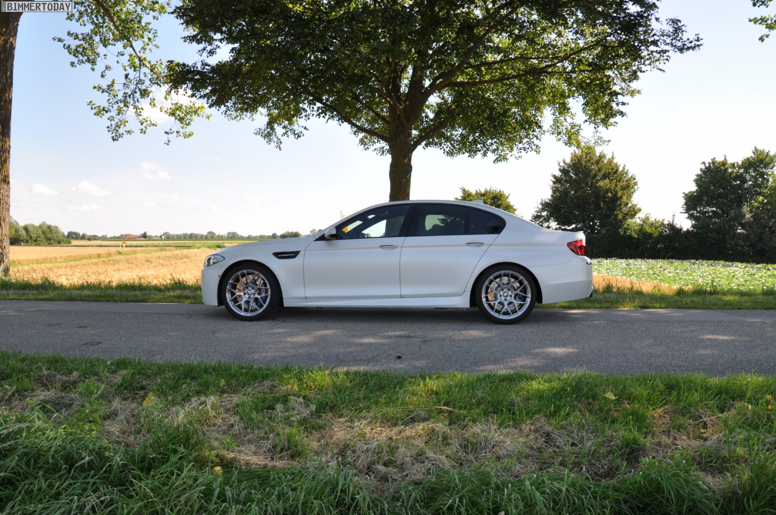 Weiß gilt im Allgemeinen als Farbe der Unschuld, aber nicht immer verbirgt sich hinter der harmlos wirkenden Fassade auch wirklich ein harmloses Wesen. Der BMW M5 F10 von unserem Leser Jürgen Thoma gehört ohne Zweifel nicht zur harmlosen Sorte, denn dank seinem 560 PS starken V8-Biturbo zählt er zu den schnellsten in Großserie gebauten Limousinen der Welt.
