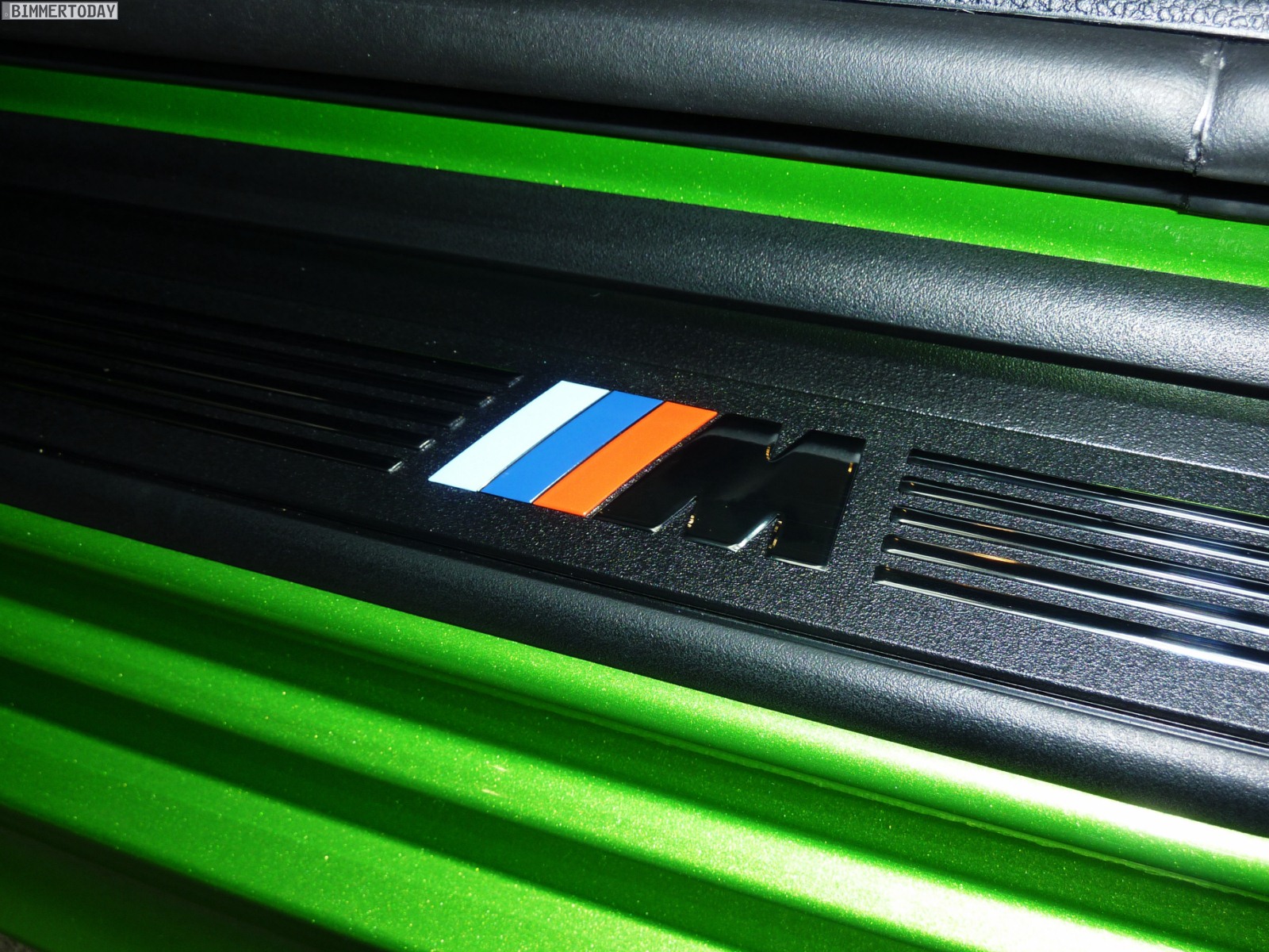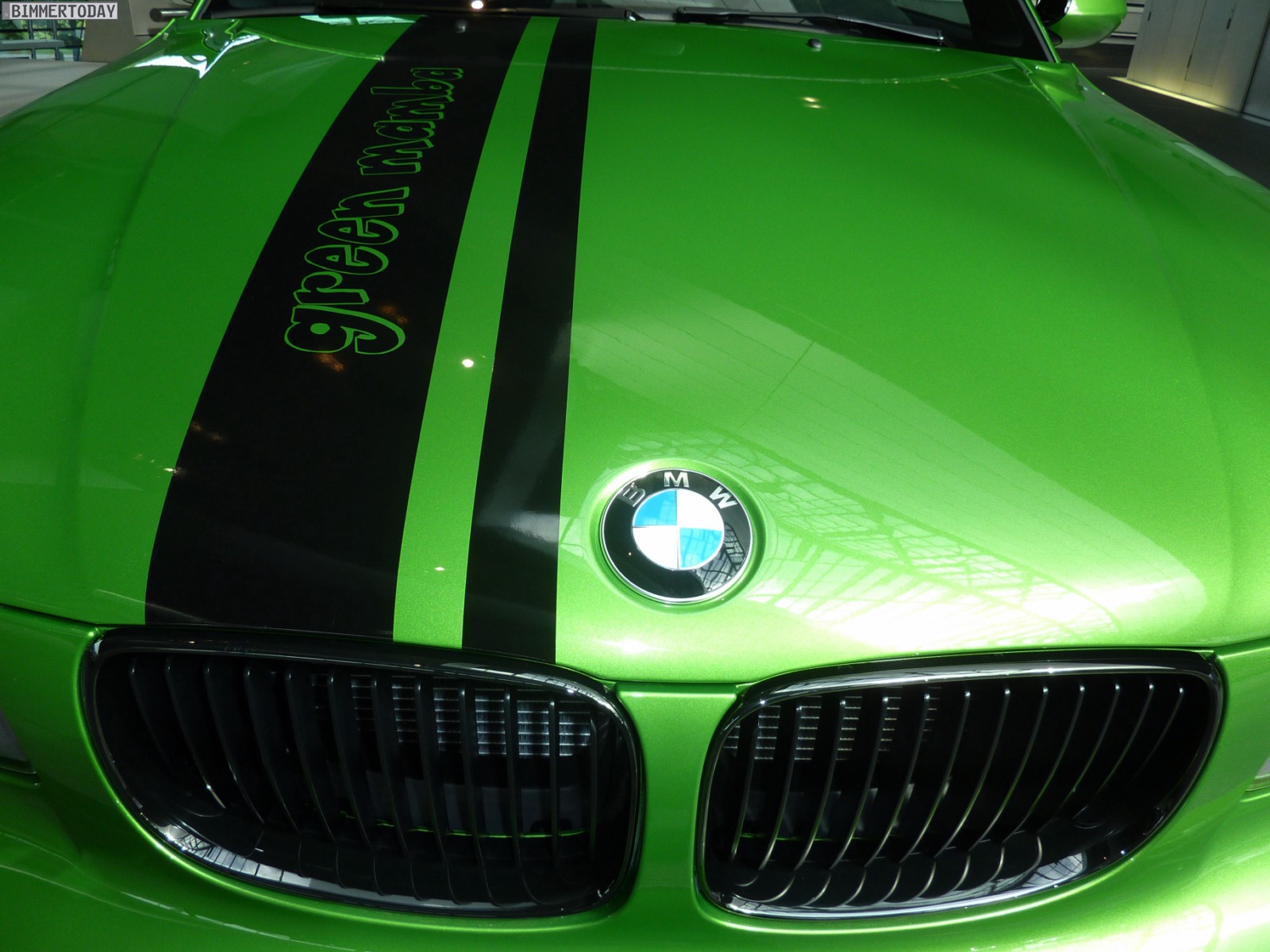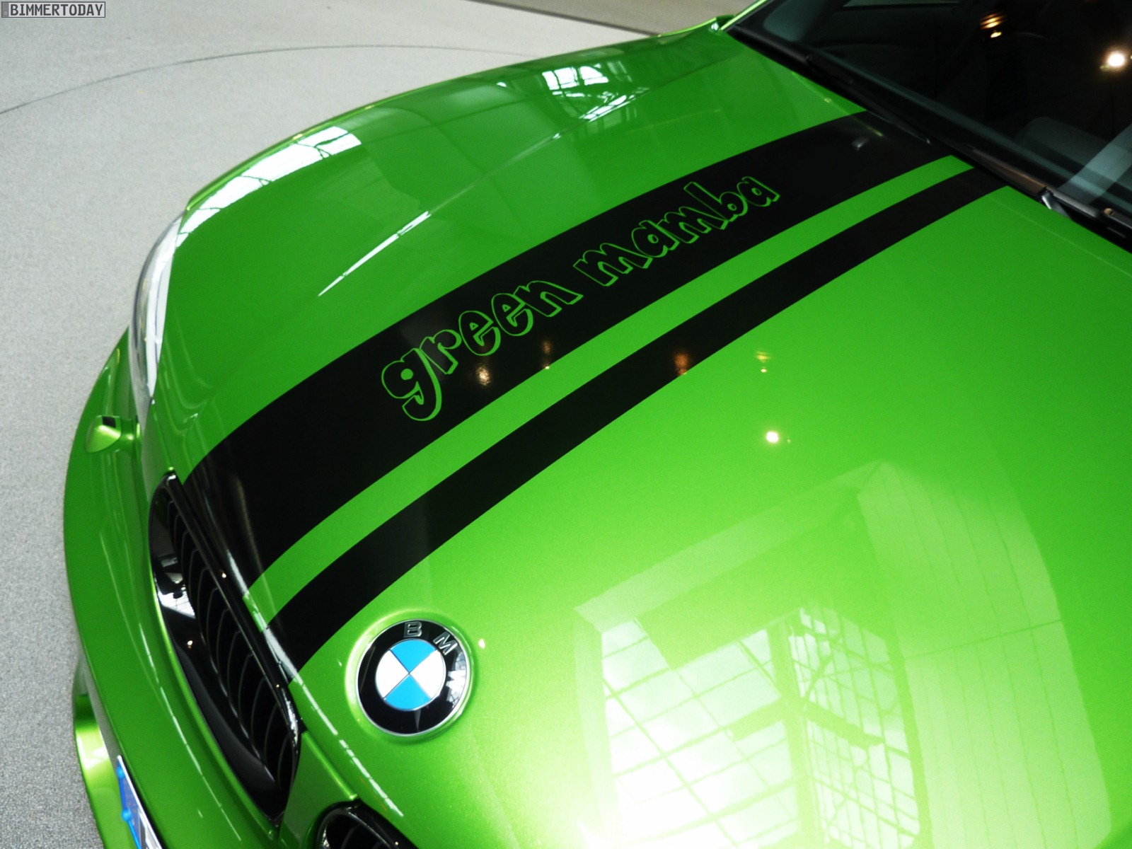 Mit der Hilfe von BMW Individual und hartnäckigem persönlichen Einsatz war es möglich, den kompakten Spaßmacher ab Werk in der Wunschfarbe Java Grün metallic zu erhalten und ihn so zum absoluten Unikat zu machen. Für sportliche Akzente sorgen außerdem schwarze Zierstreifen mit “Green Mamba”-Schriftzug, die vom BMW M3 GTS bekannten Leichtmetallräder sowie Nieren, Kiemen und Endrohre in Chrom dunkel.