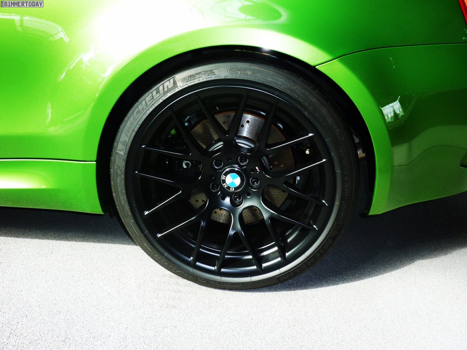 Auch wenn es für das BMW 1er M Coupé keine Möglichkeit zur Nachahmung mehr gibt, könnten die folgenden Preise noch den einen oder anderen Anhaltspunkt für künftige BMW Individual-Kunden liefern: Die Lackierung in Java Grün Metallic steht mit 4.300 Euro im Kaufvertrag, die GTS-Felgen kosten 1.200 Euro extra und die Exterieurumfänge in Chrom dunkel lässt sich BMW mit 3.600 Euro bezahlen.