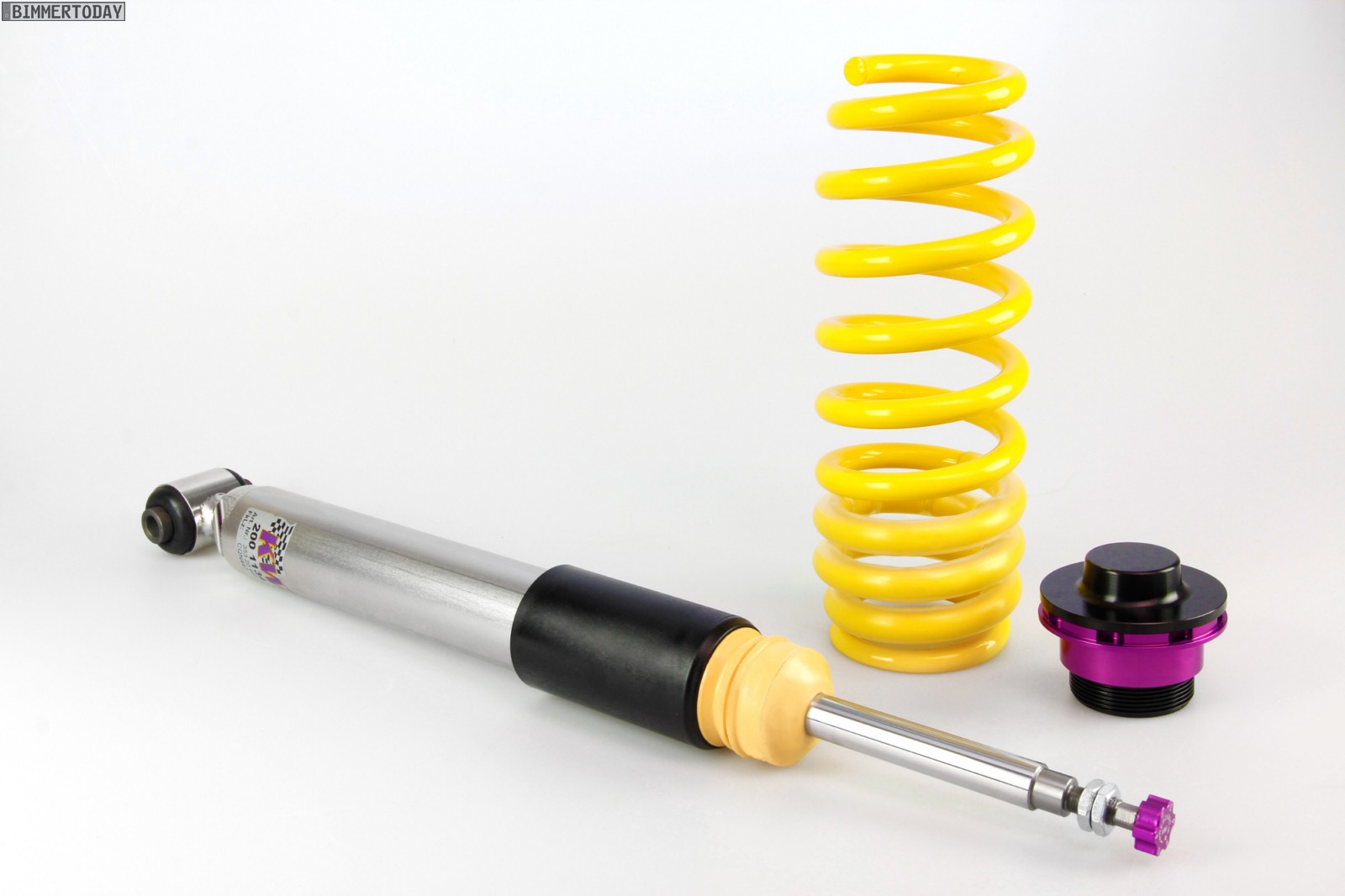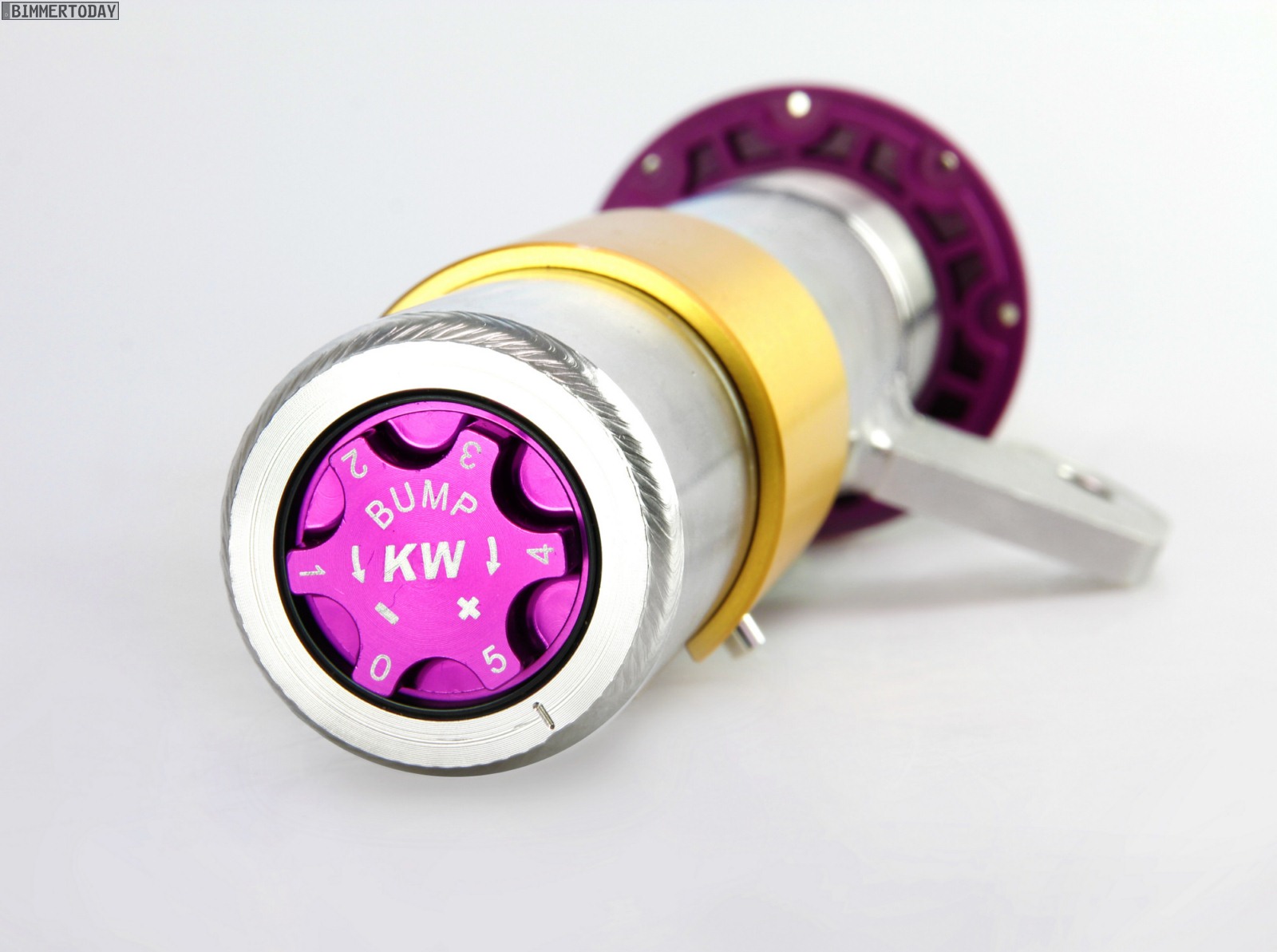 Johannes Wacker (KW Produktmanager): “In der neuen Ausführung des KW Gewindefahrwerk Variante 3+ haben wir für die Dämpferverstellung das Einstellrädchen für die Druckstufe in den Gehäuseboden integriert. Zur Abstimmung der Zugstufe wird das Verstellrädchen beim Dämpfer an der Vorderachse einfach oben zum Verstellen auf die Kolbenstange aufgesteckt. Ändern beispielsweise Fahrer ihre von BMW freigegebenen Rad/Reifenkombinationen gegen einen größeren Radsatz oder wird im Zuge von Performancemodifikationen etwa die Dimension der Serienbremsanlage gewechselt, kann dies über die Zugstufe berücksichtigt werden.”