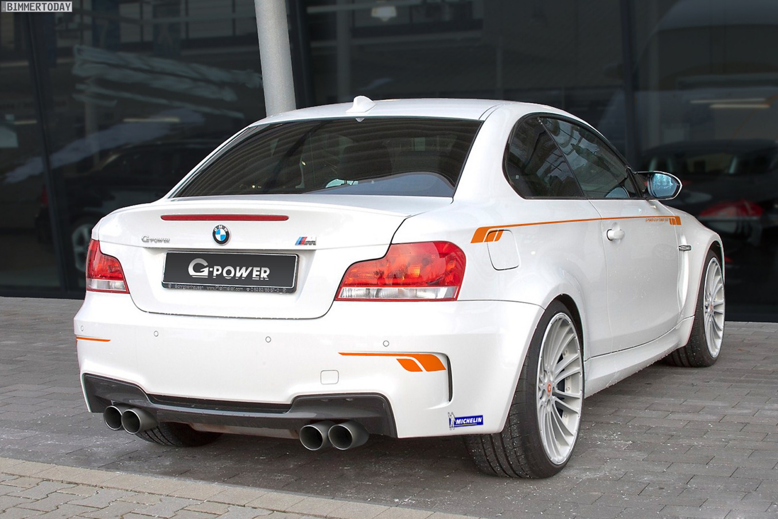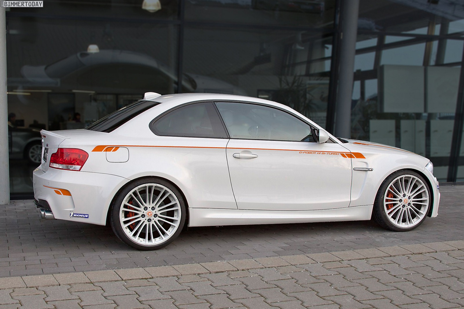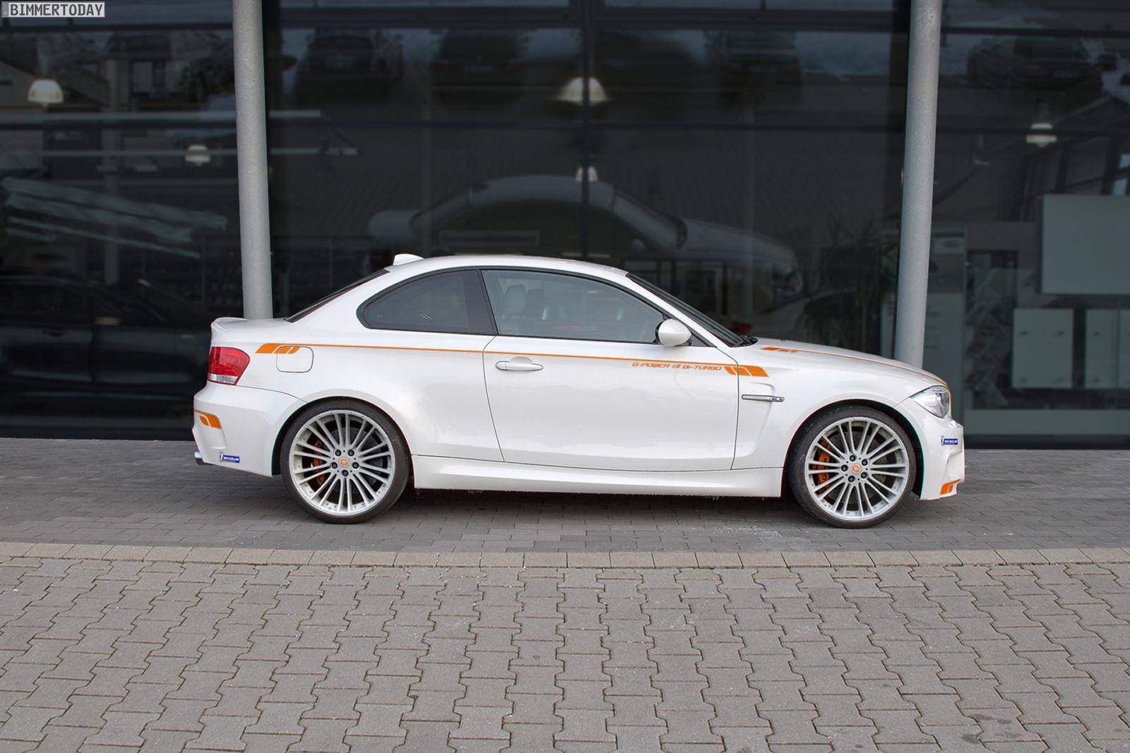 Um den 1er M auch auf kurvigem Geläuf noch schneller zu machen, kommt neben den bereits genannten Leichtmetallrädern mit Michelin Pilot Super Sport-Bereifung in 255 respektive 295 Millimeter Breite auch ein Gewindefahrwerk von G-Power zum Einsatz. Für die zur Motorleistung passende Verzögerung sorgt eine Bremsanlage mit 396 Millimeter großen Scheiben, die wahlweise in Stahl oder Keramik-Verbundstoff erhältlich sind und mit Sechs- oder Vier-Kolben-Bremssätteln kombiniert werden.