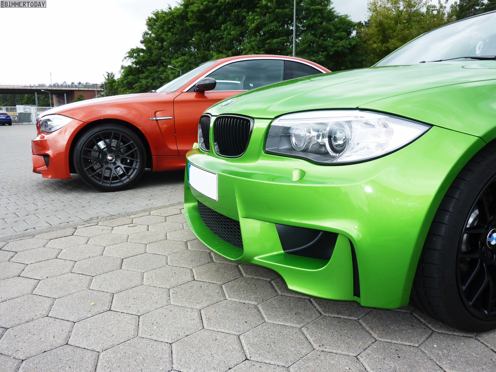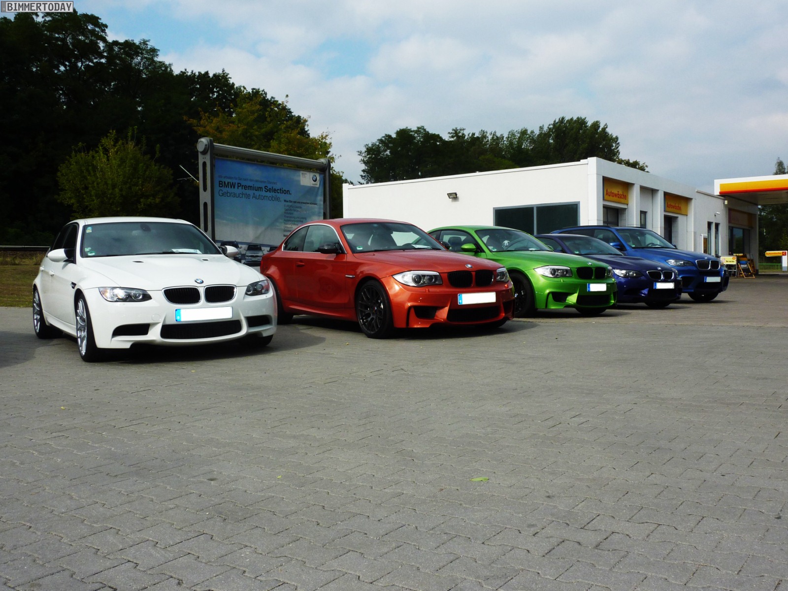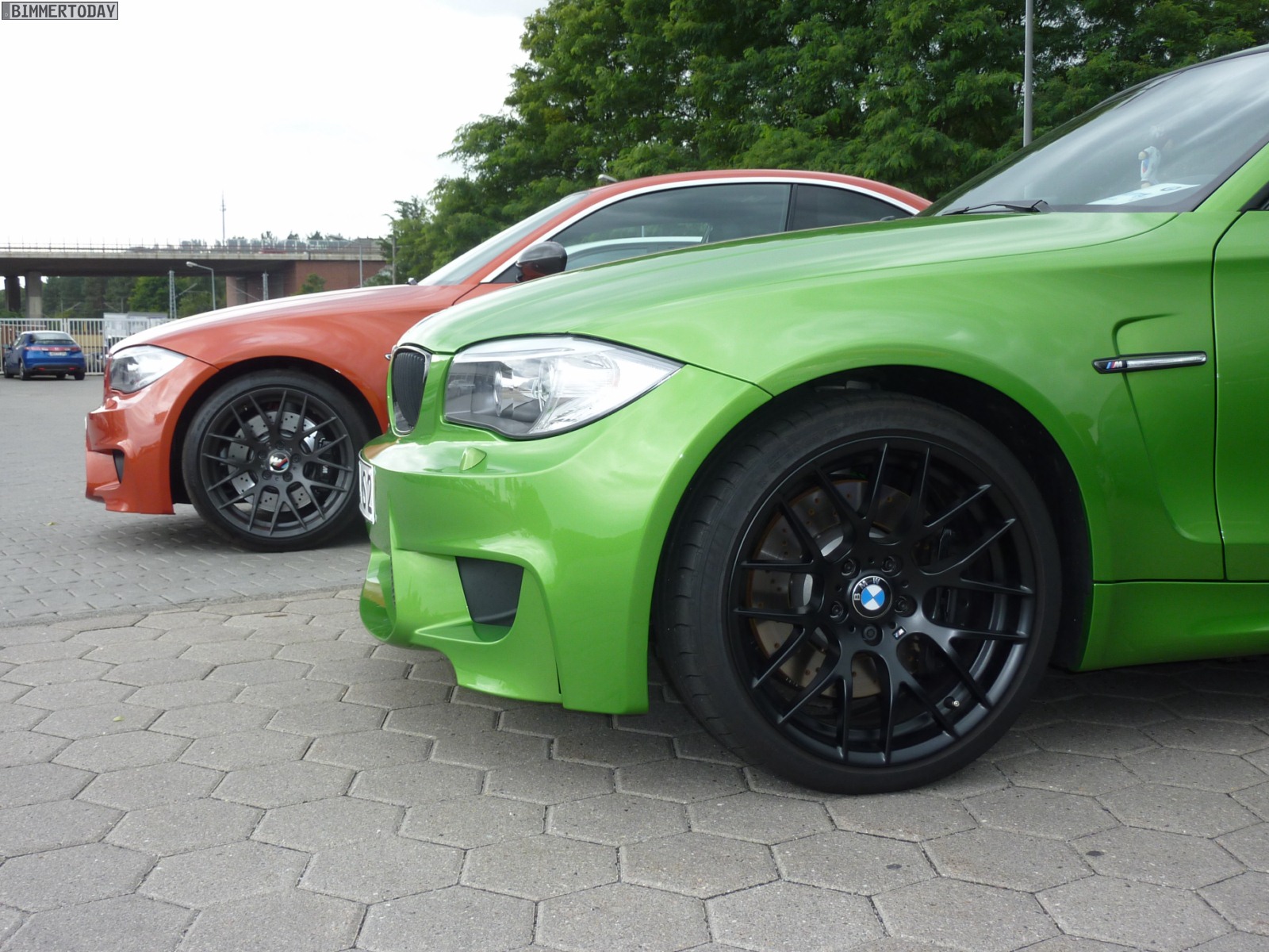 Auffälligstes Fahrzeug war die Green Mamba in Javagrün Metallic, die inzwischen ohne ihre bei der Übergabe noch vorhandenen schwarzen Streifen unterwegs ist und außerdem dunklere Heckleuchten trägt. Ebenfalls zu sehen waren unter anderem ein BMW M3 Cabrio E93 in Velvet Blue metallic, ein BMW X5 M in Estorilblau und ein weiteres BMW 1er M Coupé in Valencia Orange mit einigen Carbon-Elementen.