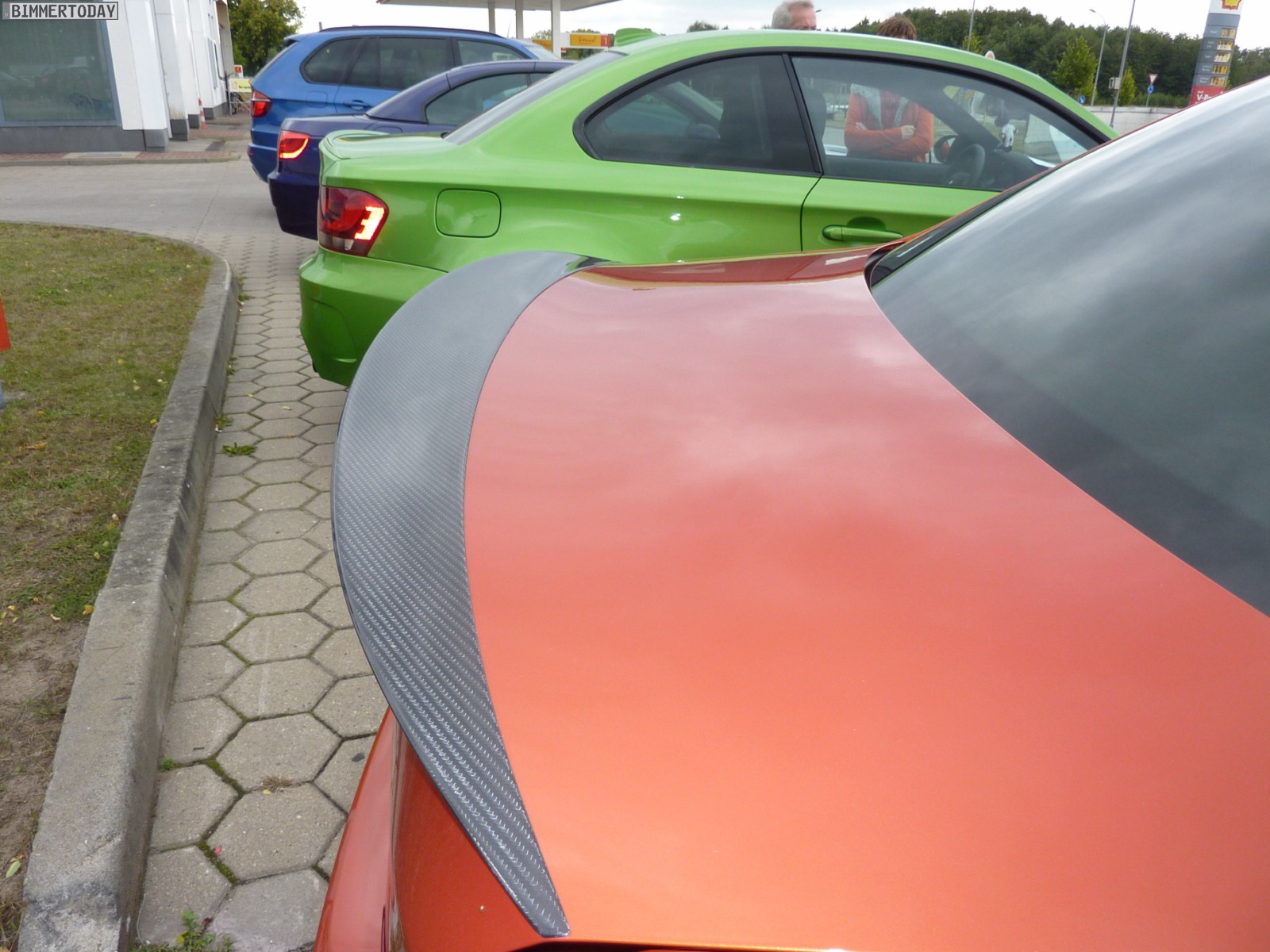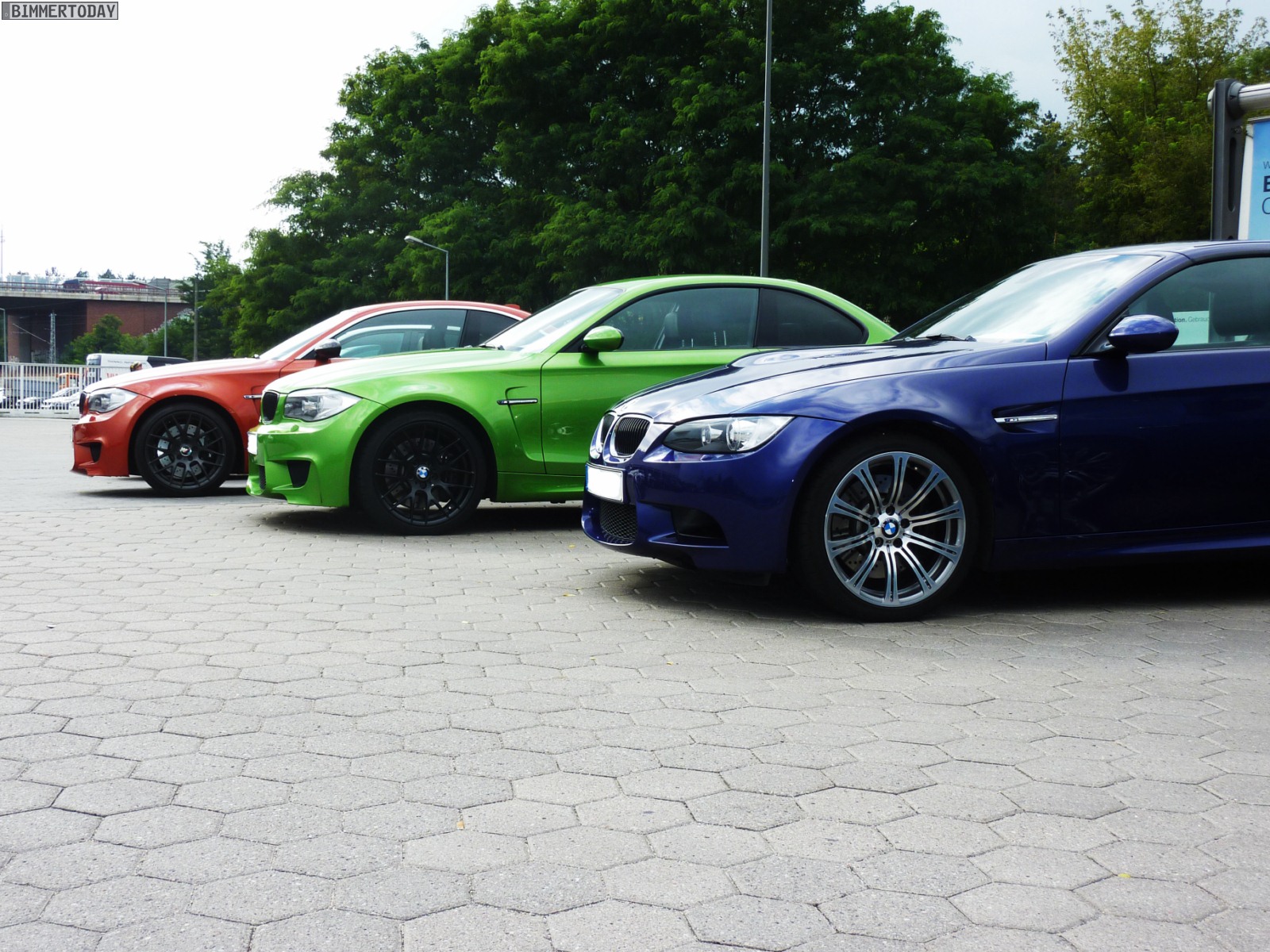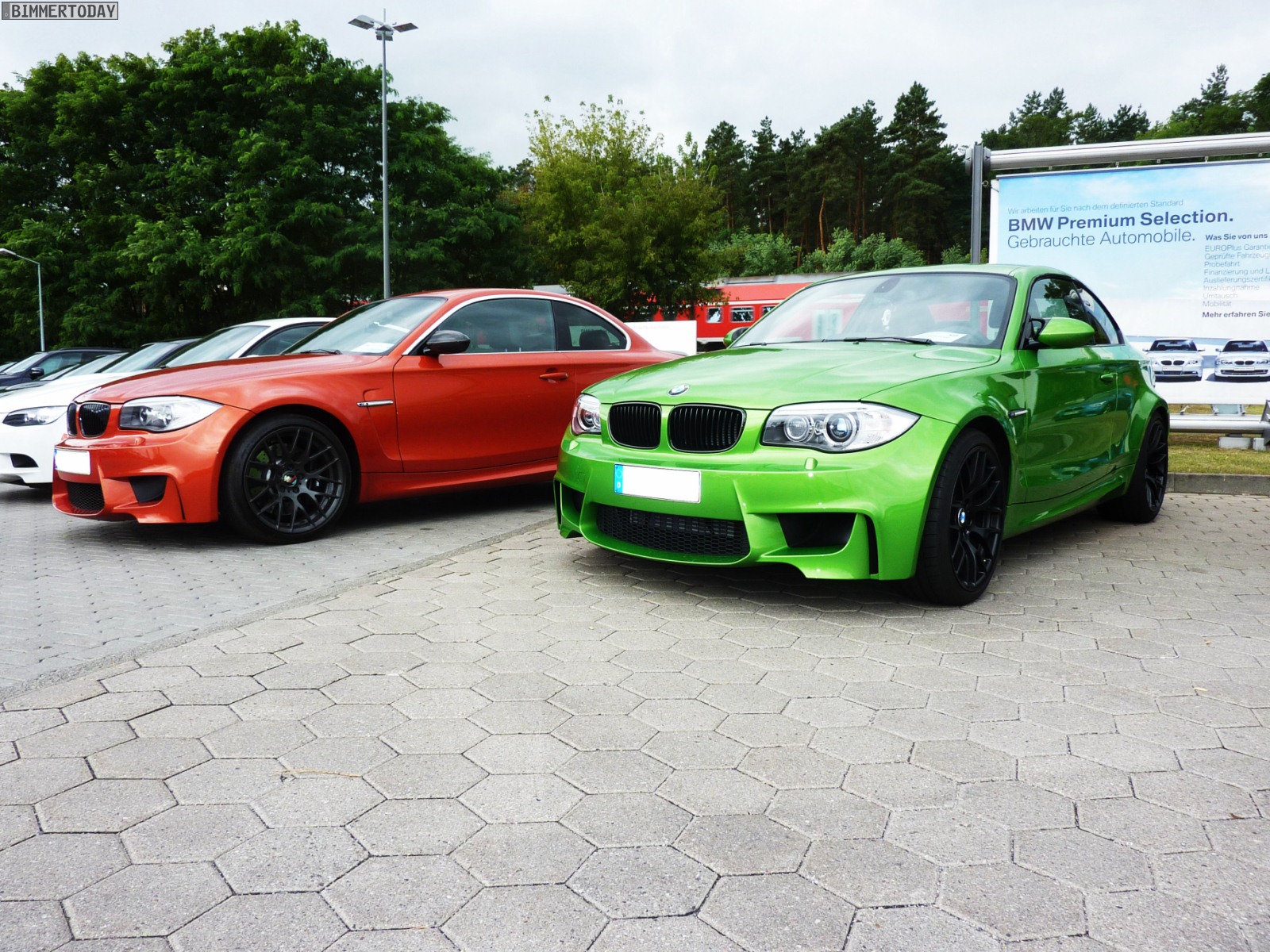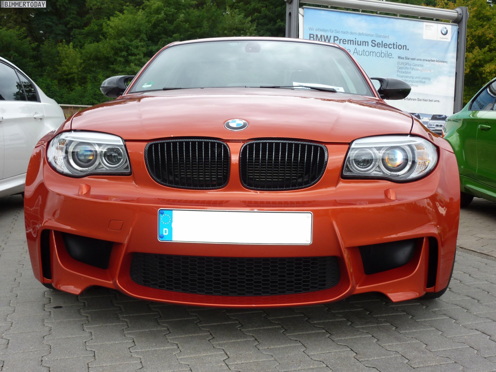Auffälligstes Fahrzeug war die Green Mamba in Javagrün Metallic, die inzwischen ohne ihre bei der Übergabe noch vorhandenen schwarzen Streifen unterwegs ist und außerdem dunklere Heckleuchten trägt. Ebenfalls zu sehen waren unter anderem ein BMW M3 Cabrio E93 in Velvet Blue metallic, ein BMW X5 M in Estorilblau und ein weiteres BMW 1er M Coupé in Valencia Orange mit einigen Carbon-Elementen.