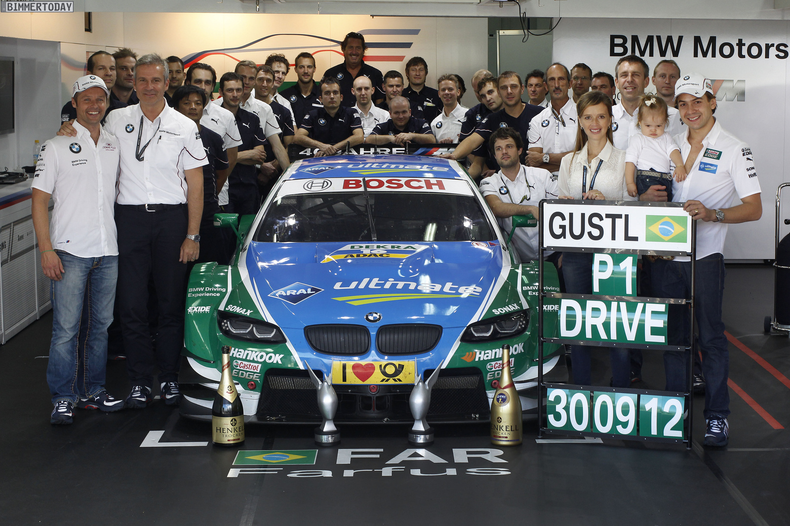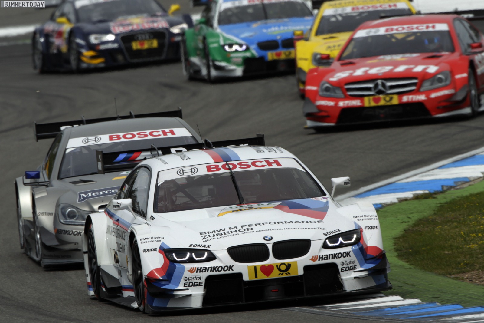 Hockenheim (DE), 29. April 2012: DTM-Comeback von BMW nach 20 Jahren. Vor dem ersten Rennen gibt es viele offene Fragen. Wo steht der BMW M3 DTM im Vergleich zur Konkurrenz? Wie kommen die DTM-Neulinge in dieser Serie zurecht? Wann wird BMW die ersten Punkte oder gar Podestplätze einfahren können? Das erste Wochenende liefert viel versprechende Antworten. Dirk Werner (DE) zeigt mit Platz drei im Qualifying aus dem Stand eine starke Vorstellung. Im Rennen sammelt Andy Priaulx (GB) als Sechster auf Anhieb acht Punkte. Die erfahrenen Piloten Bruno Spengler und Martin Tomczyk (DE) scheiden unverschuldet nach Kollisionen aus. Werner fällt weit zurück, nachdem auch er von einem Konkurrenten in der Anfangsphase getroffen wurde. Gary Paffett gewinnt vor Jamie Green und Mattias Ekström (SE, Audi).