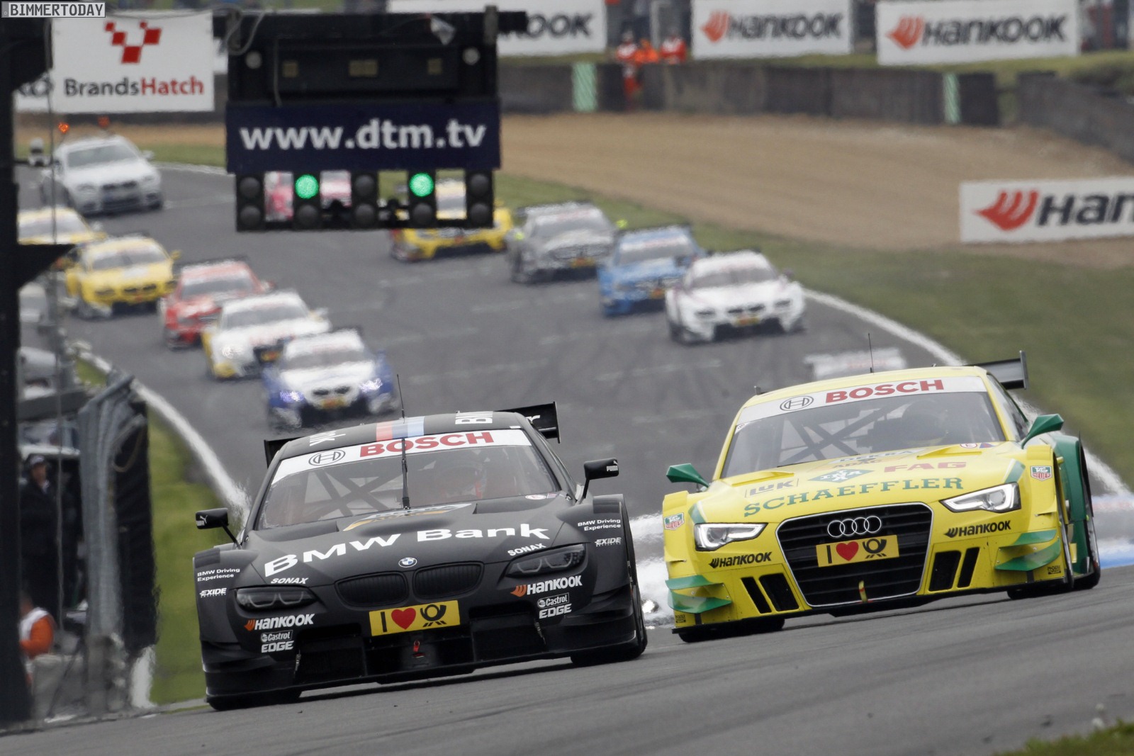 Brands Hatch (GB), 20. Mai 2012: Wie am Lausitzring duellieren sich Bruno Spengler und Gary Paffett, nur diesmal mit umgekehrten Vorzeichen. Paffett hält dem Druck von Spengler stand und gewinnt sein Heimspiel in England. Spengler sieht als Zweiter die Zielflagge. Martin Tomczyk wird hinter Mike Rockenfeller (DE, Audi) Vierter und dreht die schnellste Rennrunde. Jamie Green kommt als Achter ins Ziel.