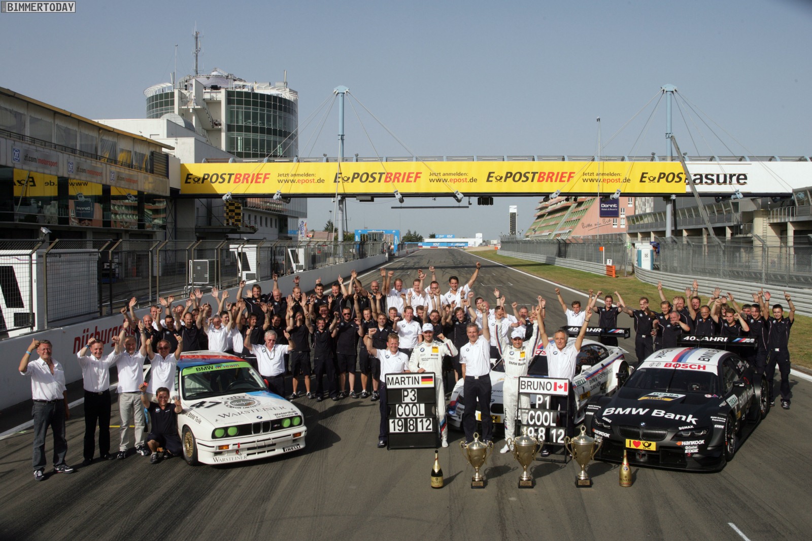 Nürburgring (DE), 19. August 2012: Bruno Spengler und das BMW Team Schnitzer kommen perfekt aus der Sommerpause und holen nach der zweiten Poleposition auch den zweiten Sieg der Saison. Martin Tomczyk krönt als Dritter hinter Edoardo Mortara das 40-jährige Jubiläum von BMW M, das in der Eifel gefeiert wird. Augusto Farfus sammelt als Zehnter ebenfalls einen Punkt. Jamie Green und Gary Paffett belegen die Plätze vier und sechs.