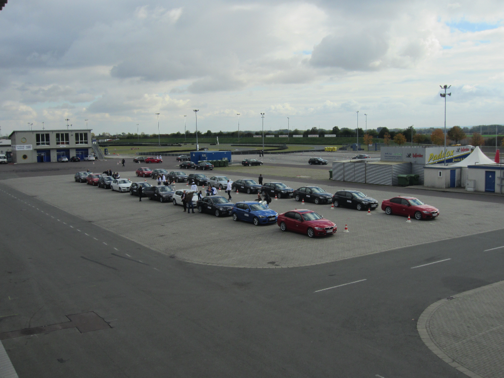 Anschliessend ging es auf den großen Platz hinter dem Fahrerlager, wo ein Pylonen-Parcours aufgebaut war. Es bestand die Möglichkeit mit BMW 3er F30 (ausschliesslich 328i)- und BMW 1er F20-Modellen (116d, 118d, 118i und 125d) diesen Parcours zu bewältigen. Als Instruktor stand bei diesem Step Harald Grohs jedem beratend zur Seite.