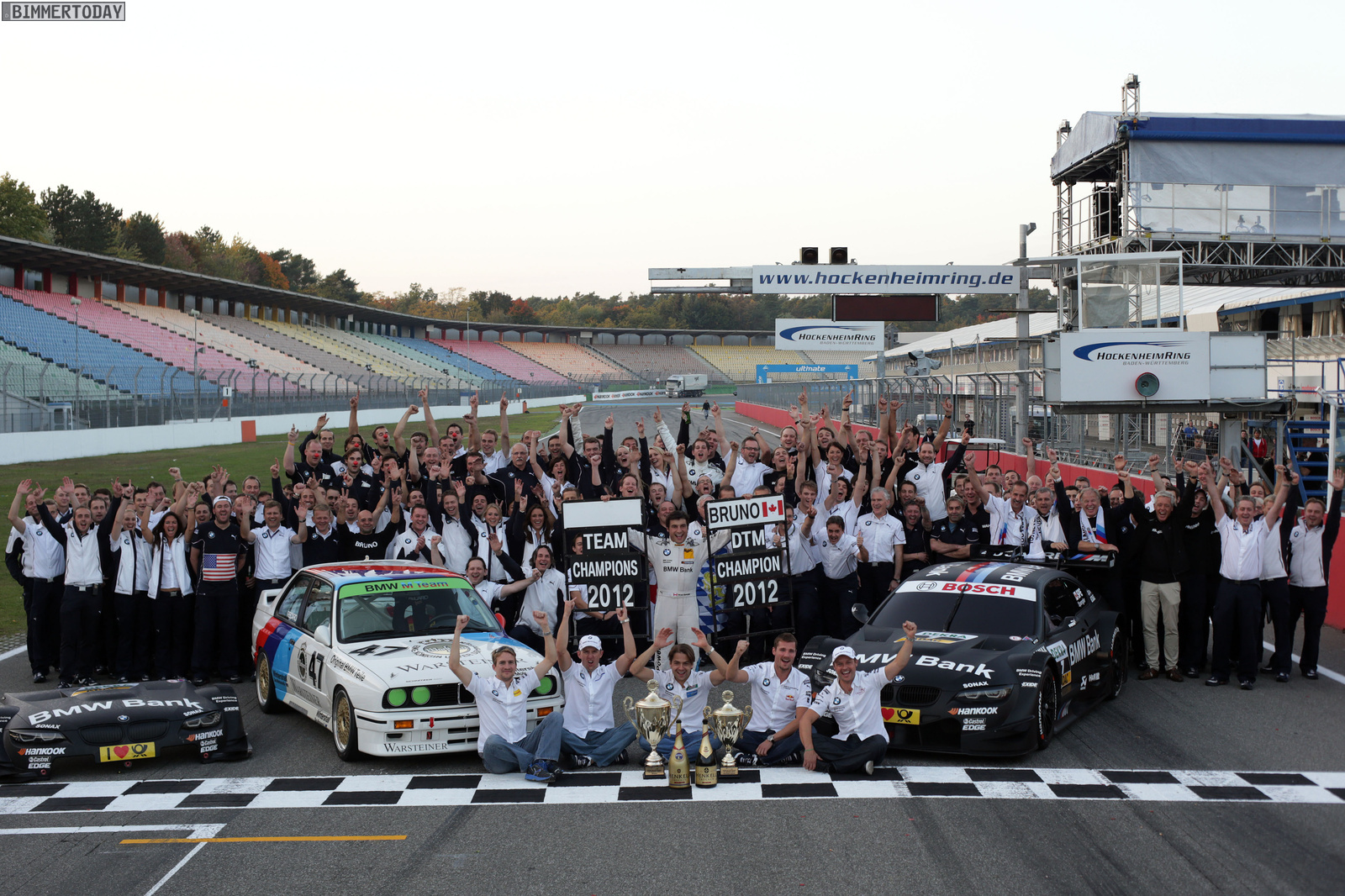 Jens Marquardt (BMW Motorsport Direktor): „Das Finale in Hockenheim war der krönende Abschluss einer für uns perfekten Saison. Mit seinem vierten Saisonsieg hat es Bruno Spengler tatsächlich geschafft, gleich im Comeback-Jahr von BMW in der DTM nach 20 Jahren den Fahrertitel zu gewinnen. Das ist ein sensationeller Erfolg, zu dem ich Bruno und natürlich auch seinem BMW Team Schnitzer im Namen von BMW Motorsport von ganzem Herzen gratuliere. Dass die Mannschaft von Charly Lamm auch in der Teamwertung Platz eins belegt und BMW die Herstellerwertung für sich entscheiden konnte, ist das i-Tüpfelchen. Schon 1989, als wir unseren bis dato letzten DTM-Titel erringen konnten, stand das BMW Team Schnitzer hinter diesem Triumph. Es ist eine schier unglaubliche Geschichte, dass Charly und seine Jungs fast ein Vierteljahrhundert später wieder ganz oben stehen. Aber auch das BMW Team RBM und das BMW Team RMG haben allen Grund, mit dieser Saison zufrieden zu sein. Gemeinsam haben die drei Teams für BMW fünf Siege, fünf Polepositions und zwölf Podestplätze errungen. Alle unsere sechs Fahrer konnten 2012 Punkte sammeln und der Saison mehr als einmal ihren Stempel aufdrücken. Um ganz ehrlich zu sein: Von einem derartigen Saisonverlauf hätten wir nicht zu träumen gewagt. Wir haben uns dem Wettkampf mit zwei DTM-erfahrenen, ambitionierten und ungemein starken Konkurrenten gestellt. Unser Ziel war es, im ersten Jahr zu lernen und rasch konkurrenzfähig zu sein. Dass wir viel mehr erreicht haben und nun drei Titel gewonnen haben, ist der Beleg für die herausragende Arbeit der gesamten Mannschaft – ganz gleich ob bei BMW Motorsport in München, bei unseren drei Teams oder durch unsere Fahrer im Cockpit. Ein großes Dankeschön geht an unsere Partner und Sponsoren, die sich gemeinsam mit uns ins Abenteuer DTM gestürzt und fantastische Unterstützung geleistet haben. Und natürlich bedanke ich mich auch bei der ITR sowie bei unseren Konkurrenten Audi und Mercedes-Benz. Wir wurden in dieser Serie herzlich willkommen geheißen. Gemeinsam haben wir den Fans zehn packende Rennen und Hochspannung bis zum Schluss bieten können. Damit ist das Konzept der neuen DTM voll aufgegangen. Gewonnen haben in diesem Jahr vor allem auch die Fans. Es wird eine Weile dauern, bis wir vollständig begriffen haben werden, was hier in Hockenheim an diesem Rennsonntag passiert ist. In jedem Fall hat es sich die gesamte Mannschaft verdient, heute ausgiebig zu feiern. Auf die Saison 2012 können wir alle sehr stolz sein. Wir alle haben ein weiteres Kapitel Motorsport-Geschichte geschrieben.“