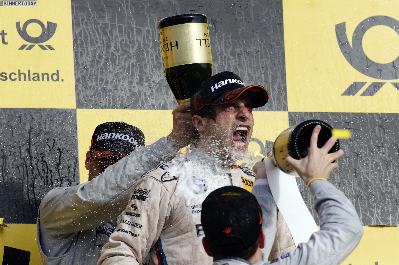 Bruno Spengler (Startnummer 7, BMW Team Schnitzer, Platz 1): „Ich kann es kaum glauben, dass wir mit BMW im ersten Jahr zurück in der DTM, sofort den Titel gewonnen haben. Glückwunsch an meinen Konkurrenten Gary Paffett, der über die gesamte Saison eine fantastische Leistung gezeigt und einen fairen Fight geliefert hat. Auch er hätte es verdient gehabt, Champion zu werden. Er ist ein großer Sportsmann. Er hat mich heute im letzten Rennen ziemlich unter Druck gesetzt. Ich habe oft in den Rückspiegel geschaut, und er ist immer näher gekommen. Aber ich konnte meine Pace halten und das Rennen nach Hause fahren. Mein Herz hat schon ganz schön heftig geschlagen. Danke an mein BMW Team Schnitzer. Meine Mannschaft hat über die ganze Saison fantastische Arbeit geleistet. Auch heute lief alles wieder perfekt. Das Team hat in einem Rennen, in den wir extrem unter Druck gestanden haben, wieder einen Riesen-Job bei den Boxenstopps gemacht. Man gewinnt nie allein, sondern nur im Team. Ich bin total durcheinander und weiß gar nicht, was ich fühlen soll. Ganz oben auf dem Podest zu stehen, den Pokal in den Himmel zu recken und die vielen Fans zu sehen, die mir zujubeln, ist eine einmaliges Erlebnis. Darauf habe ich so viele Jahre gewartet. Es ist einfach sensationell.