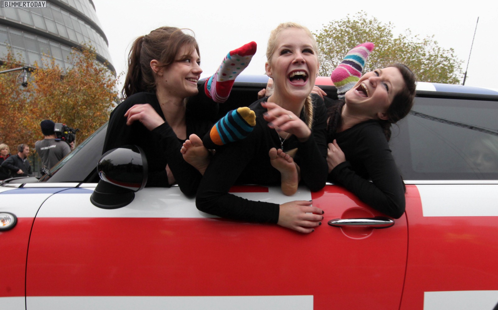 Ein MINI bietet nicht genug Platz? Na gut, über Sinn und Zweck der Übung darf man gerne streiten und auch in eine Polizeikontrolle sollte man so lieber nicht geraten, aber für manche Diskussion zum Platzangebot im britischen Kleinwagen der BMW Group könnte es trotzdem hilfreich sein: Obwohl der aktuelle MINI Hatch (R56 LCI) nur 3,72 Meter lang ist, passen offenbar 28 gelenkige Turnerinnen hinein.