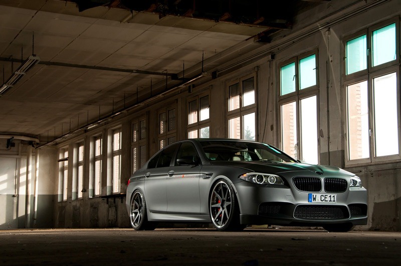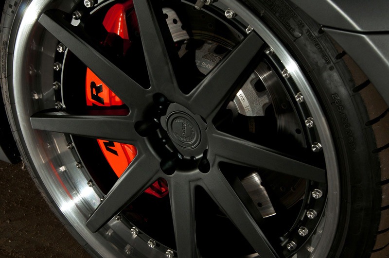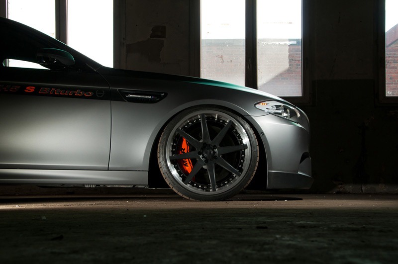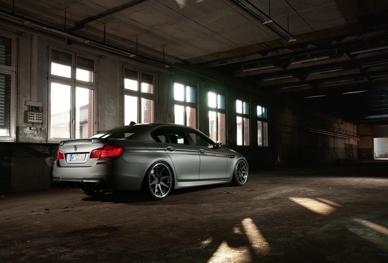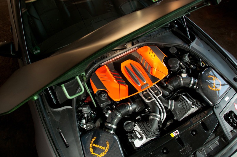 Die Aerodynamik dieses ganz speziellen BMW M5 F10 profitiert von einer auf die serienmäßige Frontschürze aufgesetzten Spoilerlippe, einem Heckspoiler für den Kofferraumdeckel und einem Diffusor-Einsatz für die Heckschürze. Sämtliche Aerodynamik-Anbauteile von MHR bestehen wie die Motorhaube mit zusätzlichen Lufteinlässen aus besonders leichtem und zudem gutaussehendem Carbon.