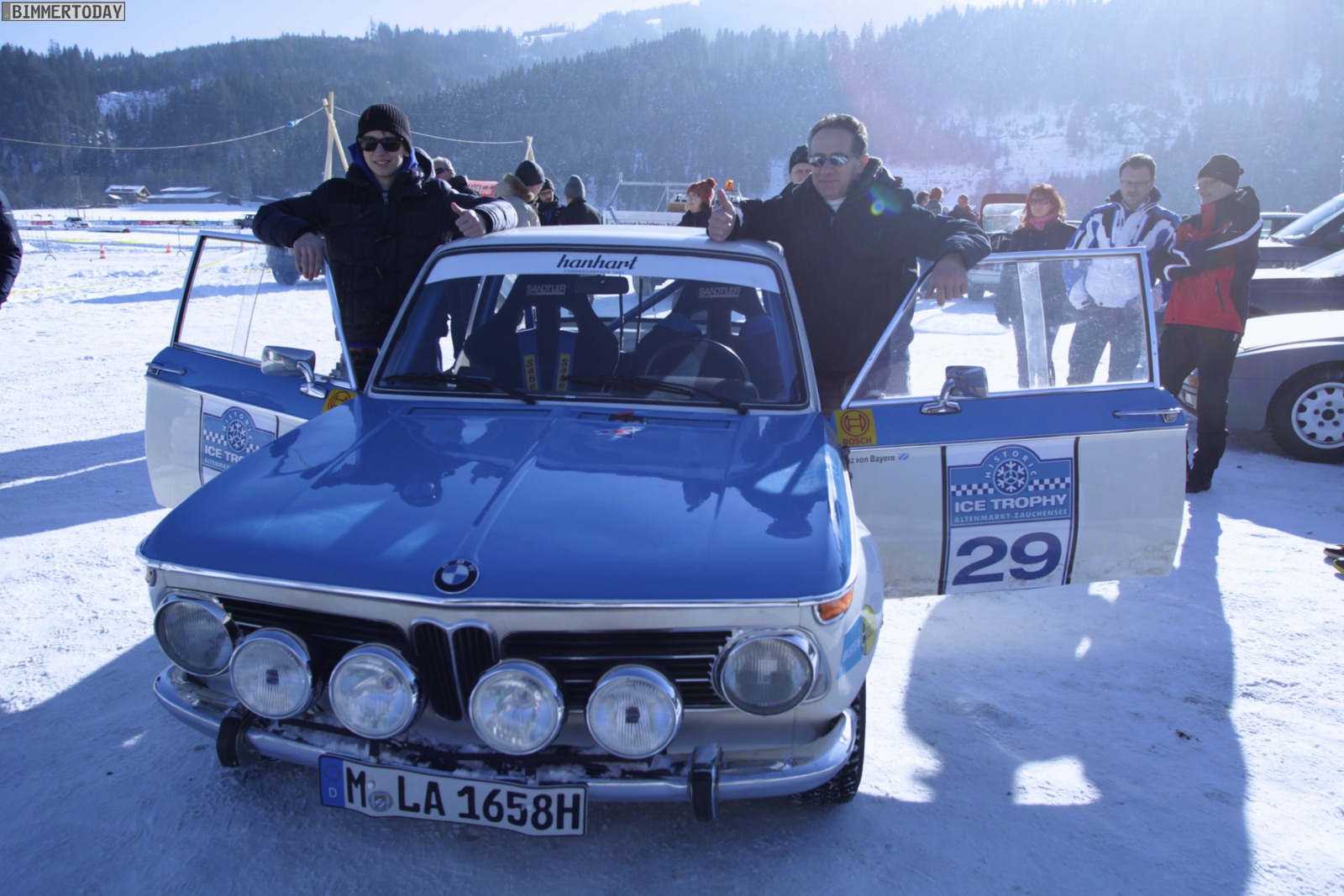 Wer der Meinung ist, besagten BMW 2002ti erst kürzlich in anderem Zusammenhang gesehen zu haben, irrt sich übrigens nicht: DTM-Pilot Bruno Spengler testete den Rallye-Oldie mit dem Kennzeichen M LA 1658H vor wenigen Monaten in Arjeplog.