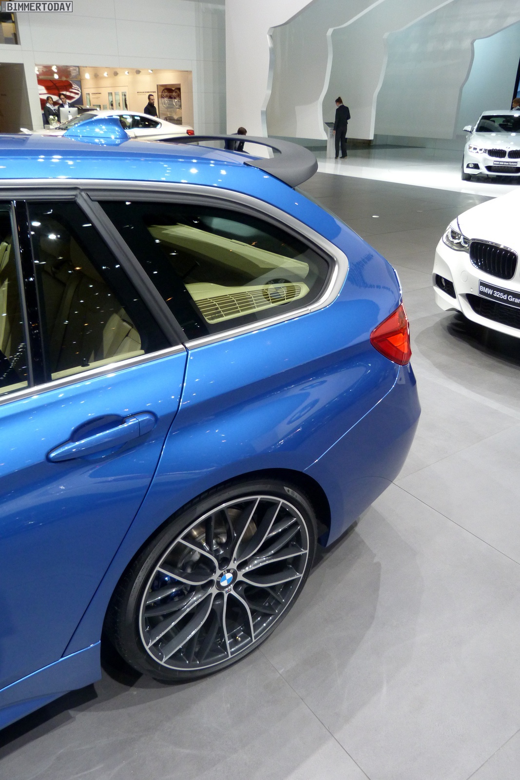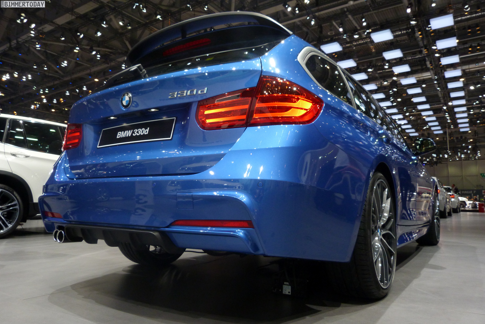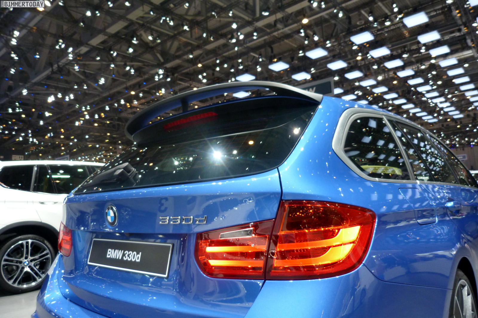 Als besonderen Hingucker für den zweiten Pressetag auf dem Genfer Salon 2013 hat sich BMW einen 3er Touring F31 mit Zubehör von BMW M Performance aufgehoben. Der praktische Kombi glänzt in Estorilblau Metallic und zeigt die auf dem M Sportpaket aufbauenden Komponenten, die über das Zubehör-Programm nachgerüstet werden können.