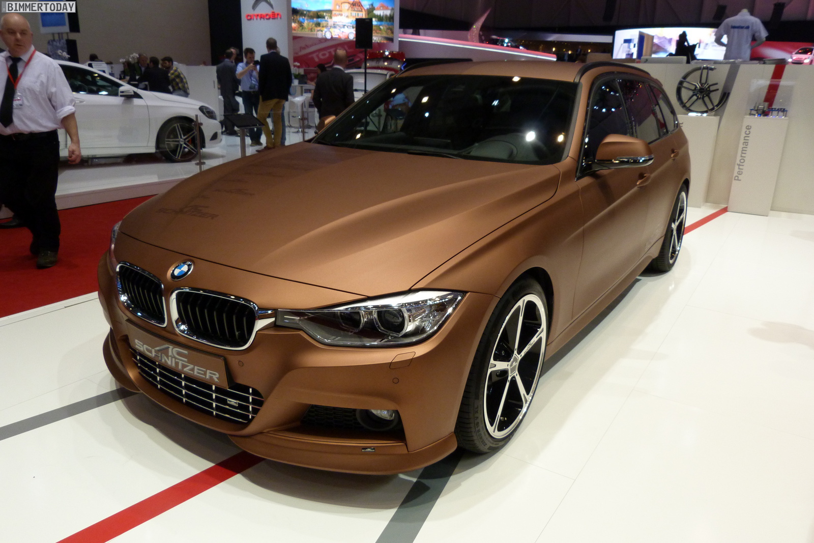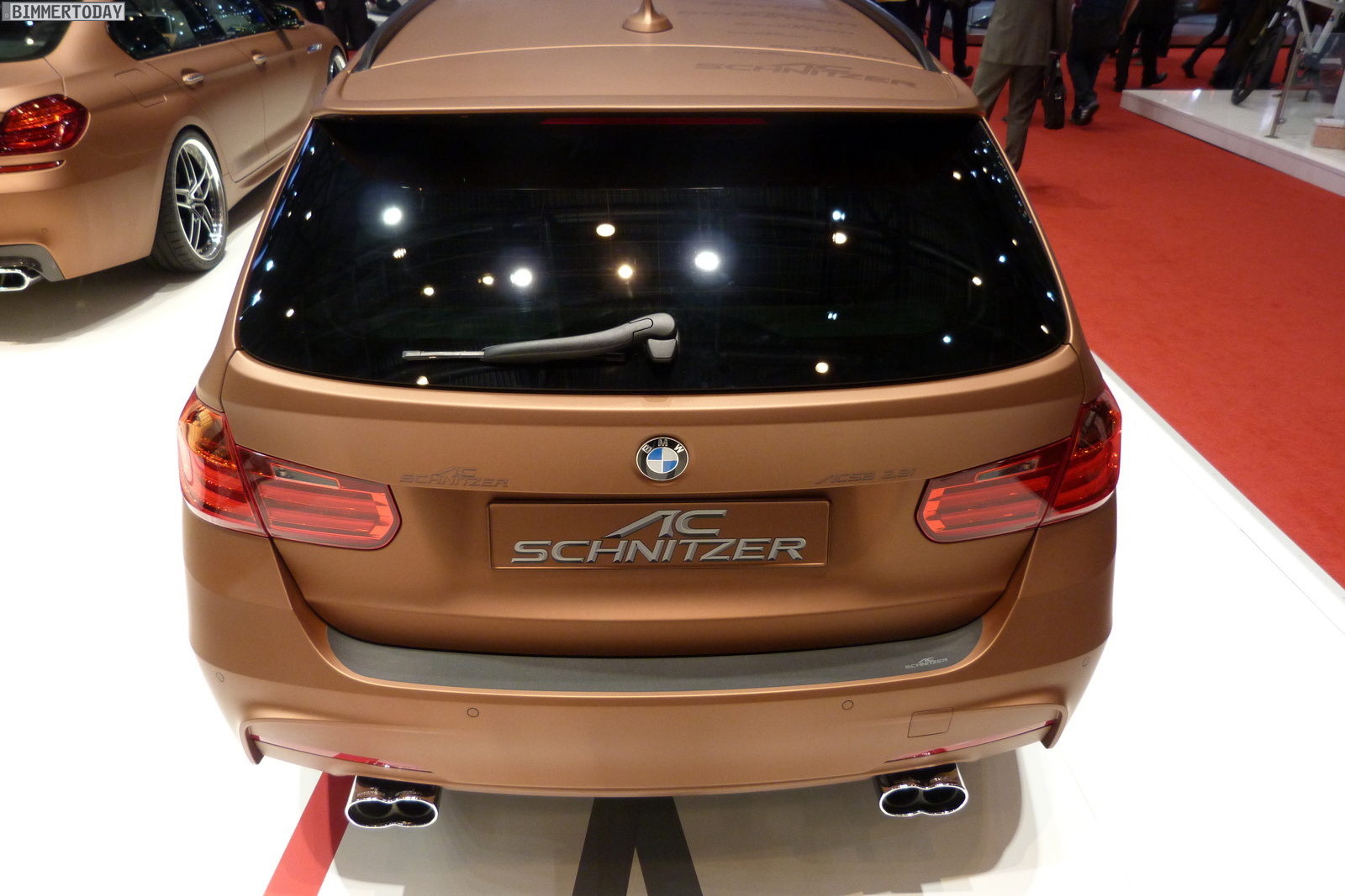 Wie angekündigt präsentiert AC Schnitzer auf dem Genfer Salon 2013 gleich zwei auffällige Neuheiten, die schon allein wegen ihrer Farbe die Blicke der Besucher anziehen: Sowohl das BMW 6er Gran Coupé als auch der BMW 3er Touring F31 am Stand des Tuners aus Aachen zeigen den Farbton Magic Copper, der die Formensprache der Fahrzeuge im Scheinwerferlicht der Messe betont.