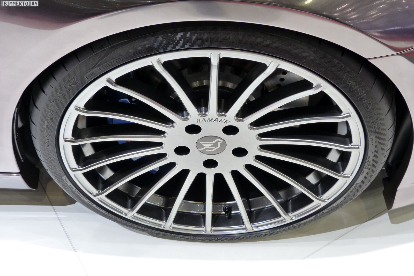 Auch für die hinteren Kotflügel und Türen bietet Hamann Motorsport eine Breitbau-Lösung an, die Platz für die 21 Zoll großen Felgen schafft. Auf diesen sind vorn 265 Millimeter breite Reifen montiert, an der Hinterachse übertragen 305er-Reifen die Kraft des V8-Biturbo unter der Haube. Auf die vor einem Jahr in Genf präsentierte Leistungssteigerung von 560 auf 720 PS verzichtet Hamann beim MI5SION, der mit Sportfedern 35 Millimeter näher an den Asphalt gebracht wird.