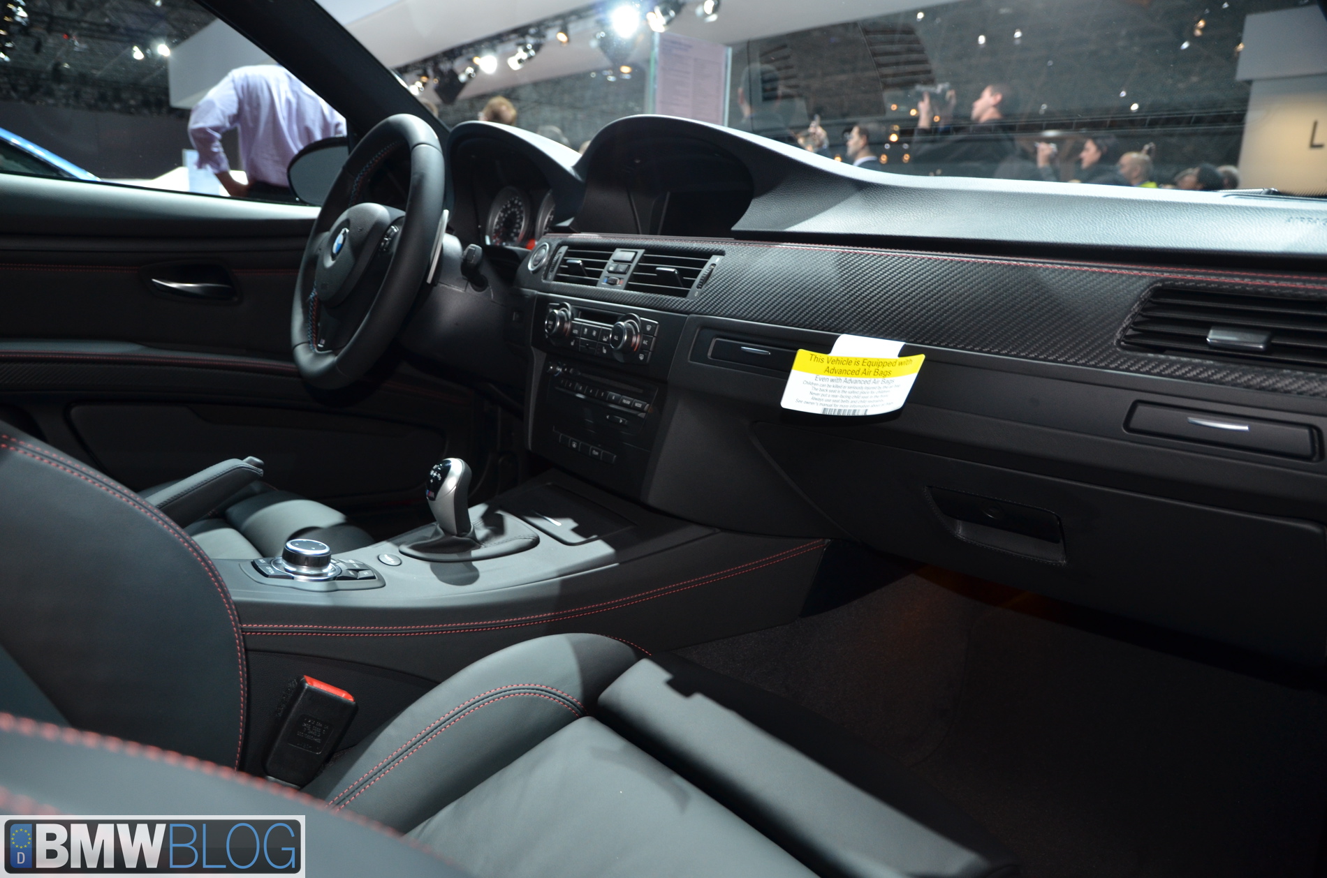 Bei dem in New York ausgestellten Fahrzeug handelt es sich um ein Exemplar aus der BMW M3 Coupé Frozen Limited Edition, die stets mit Competition Paket, 19-Zoll-Leichtmetallrädern in Frozen Black und natürlich dem serienmäßigen Carbon-Dach kommt.