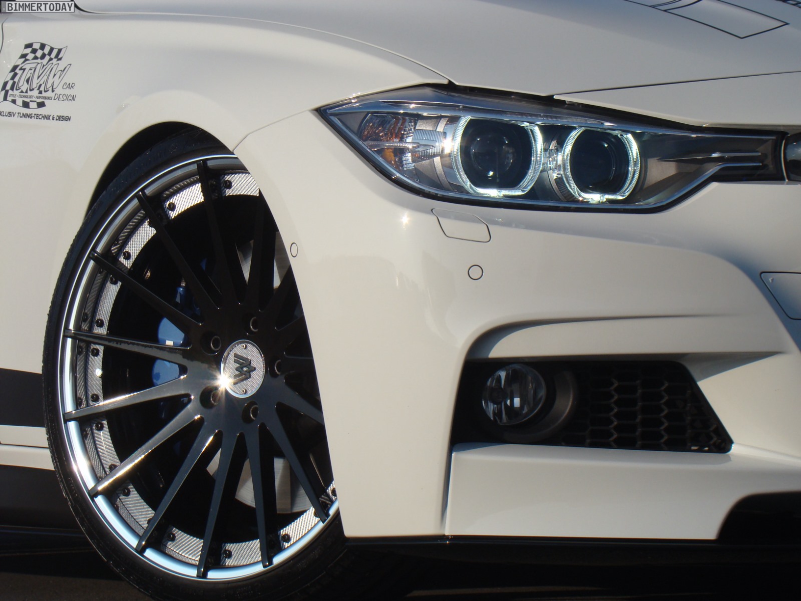 Neben der Tieferlegung weisen absolut einzigartige und 20 Zoll große Felgen von AM Swiss Design auf das Tuning-Programm von TVW Car Design hin: Um jeden Millimeter Platz im Radhaus nutzen zu können, hat TVW den BMW 3er F30 exakt vermessen und anschließend bei AM Swiss Design die perfekt passenden Felgen bauen lassen. Maximal sind die Dimensionen 9,5×20 an der Vorder- und 10,5×20 an der Hinterachse möglich, wobei jede Felge kundenspezifisch angefertigt wird und je nach Größe zwischen 1.150 und 1.600 Euro kostet.