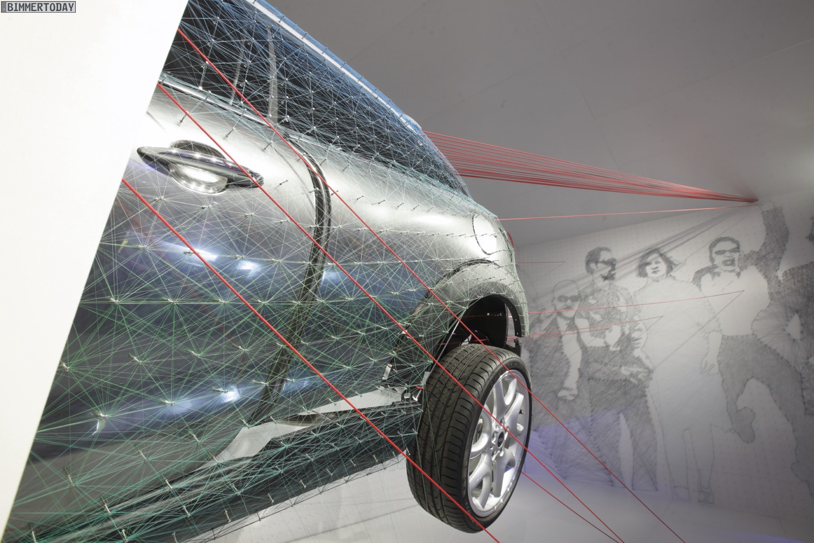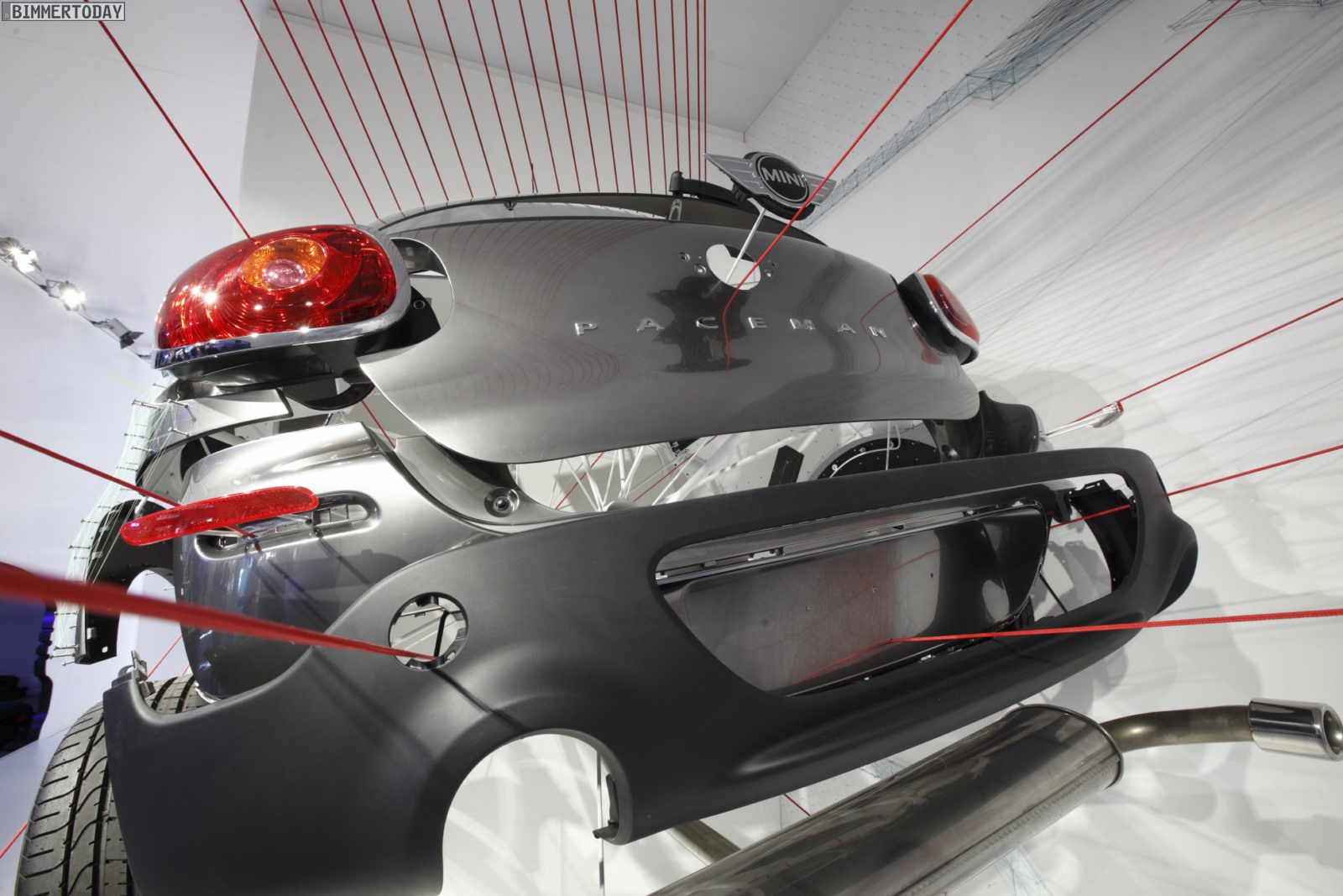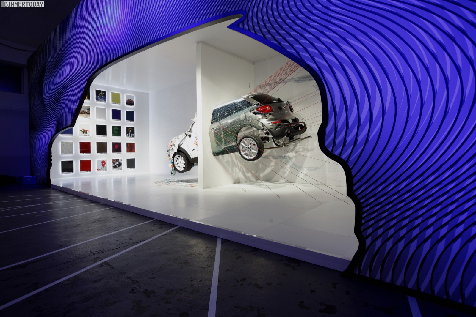 Die dynamische Skulptur ist in zwei Hälften geteilt und zeigt einen MINI Paceman dabei, wie er gerade räumliche Grenzen durchbricht und dabei eine Transformation von Materialien und Formen erlebt. Das dabei entstehende Geräusch kann man sich nach Ansicht des MINI Design-Teams rund um Anders Warming in etwa wie folgt vorstellen: KAPOOOW!