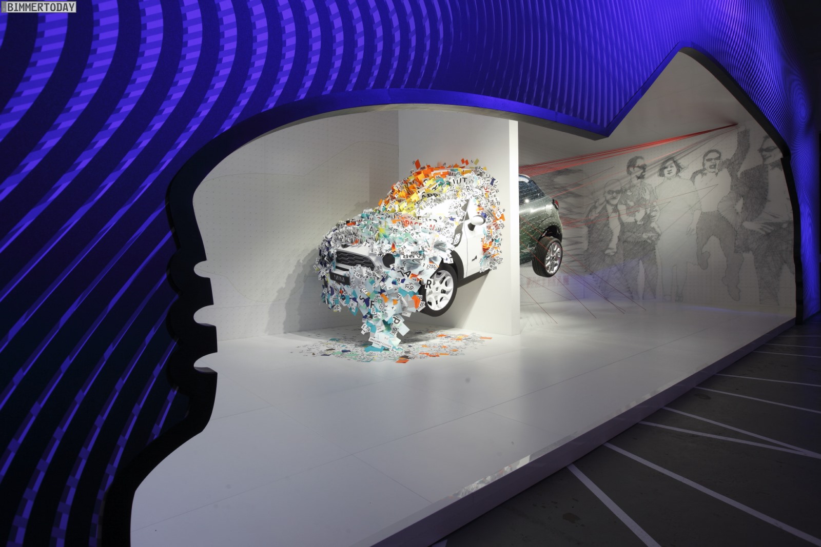 Sinnbildlich steht die Installation dafür, dass der MINI ein emotionales und Normen durchbrechendes Produkt ist, das über eine stark ausgeprägte Persönlichkeit verfügt. Die Sportlichkeit und Dynamik der Fahrzeuge wird durch den Sprung unterstrichen, den der Paceman in MINI KAPOOOW! gerade vollführt – während er in ein neues Universum eindringt und eine Metamorphose vom realen Fahrzeug in eine Ideen-Sammlung aus Papier erlebt.