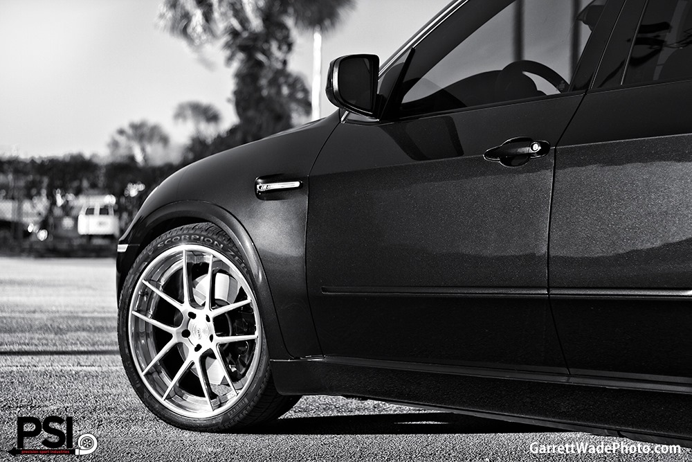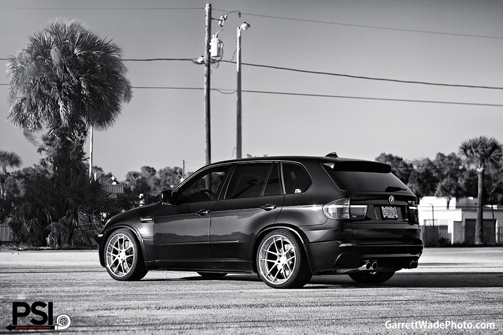 Größere Modifikationen sind dafür nicht notwendig: Üppige Lufteinlässe und gewaltige Abmessungen sorgen bereits ab Werk dafür, dass der BMW X5 M Respekt einflößt – selbst die 22 Zoll großen ADV.1 5.0-Felgen wirken in diesem Umfeld nur geringfügig überdimensioniert. Etwas näher an den Asphalt bringt PSI den X5 M mit Hilfe von H&R Tieferlegungsfedern.