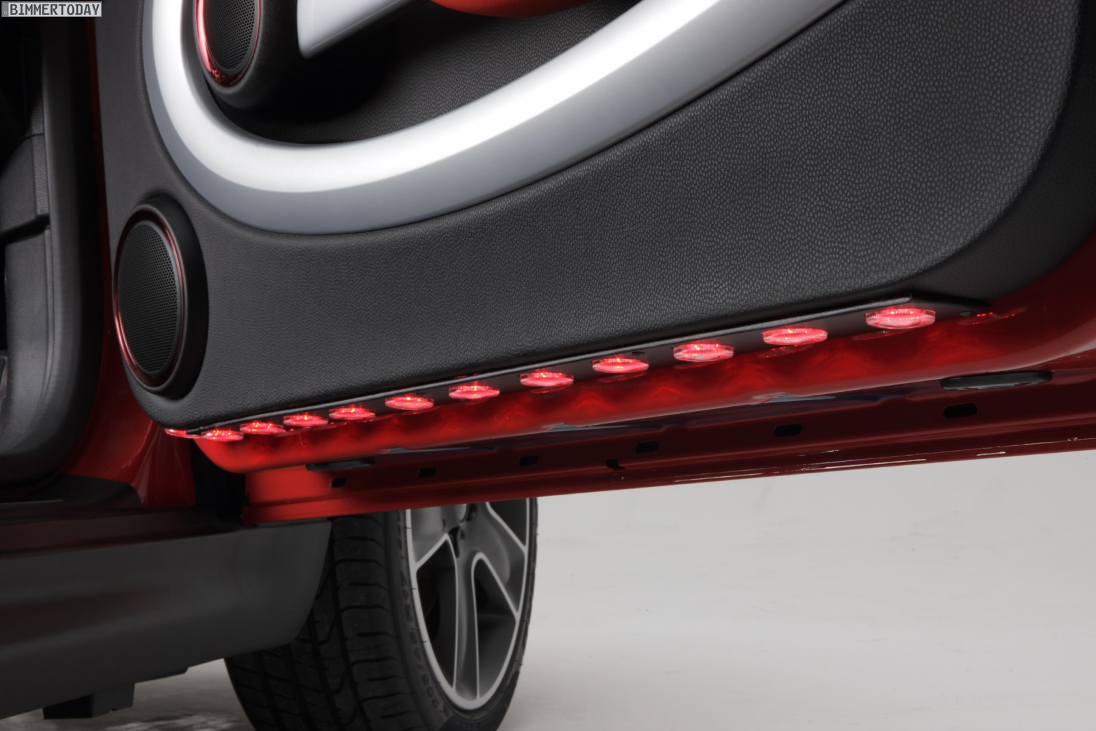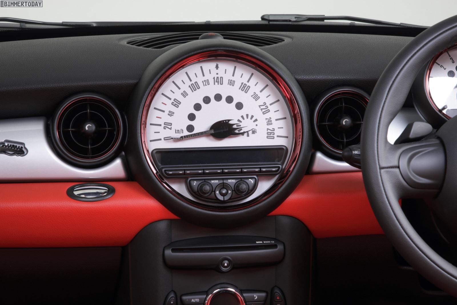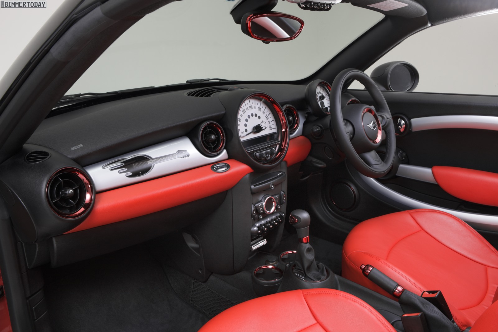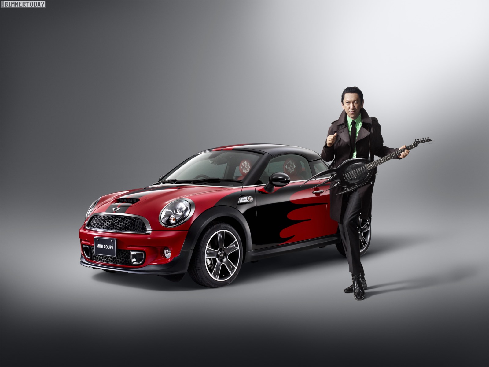 Tomoyasu Hotei genießt in Japan große Beliebtheit und ist unter anderem für seine Liebe zur Gitarre bekannt, was auch im Innenraum und speziell an den Zeigern der Rundinstrumente der von ihm bearbeiteten MINIs unübersehbar ist. Viele Details wie Noten auf den Einstiegsleisten passen ebenfalls in dieses Bild.