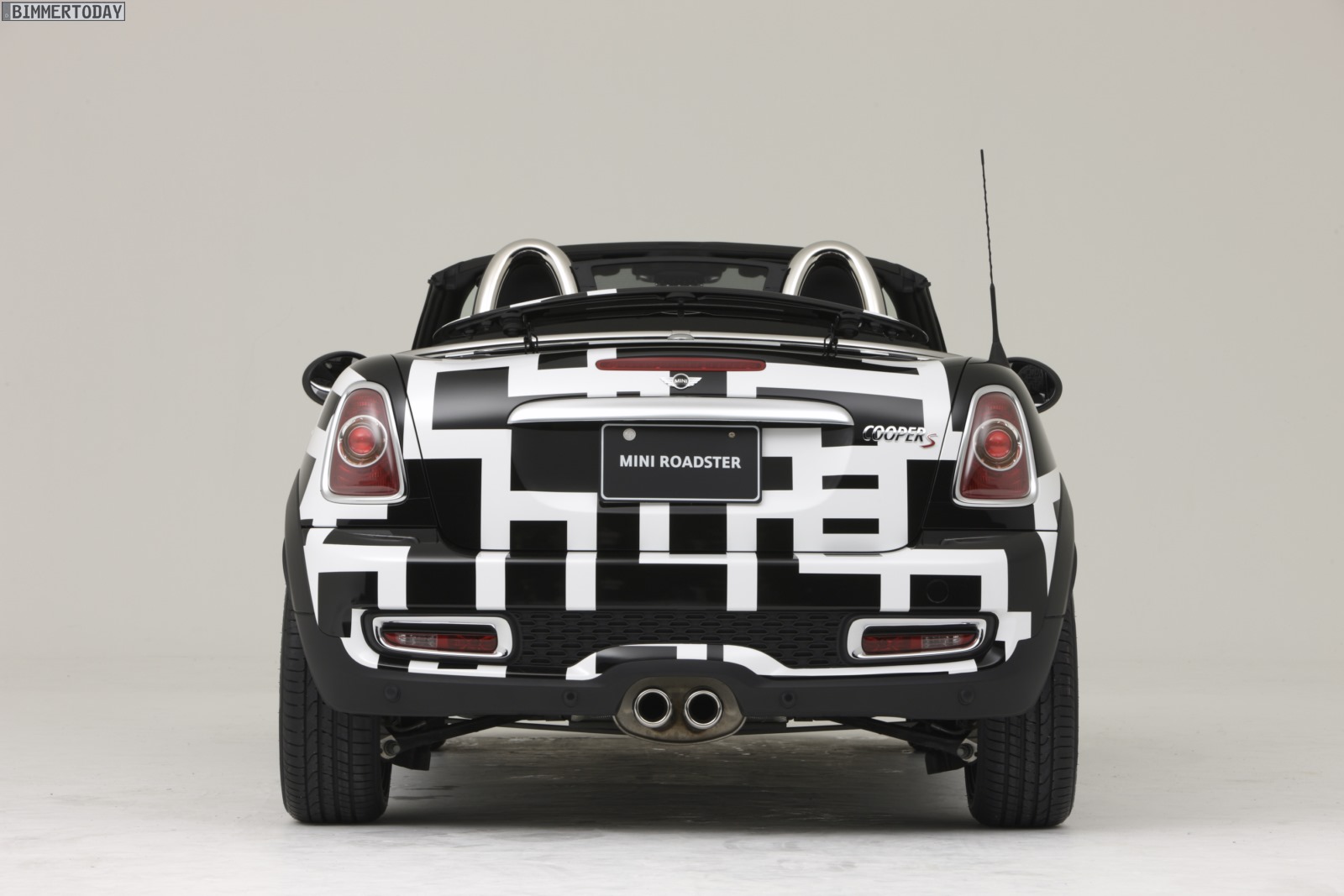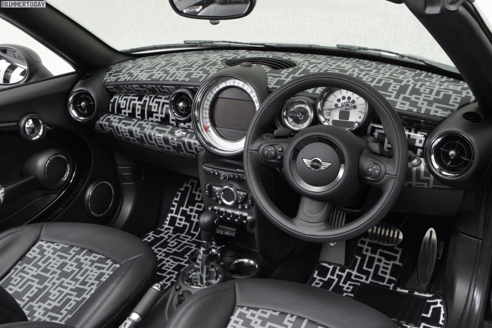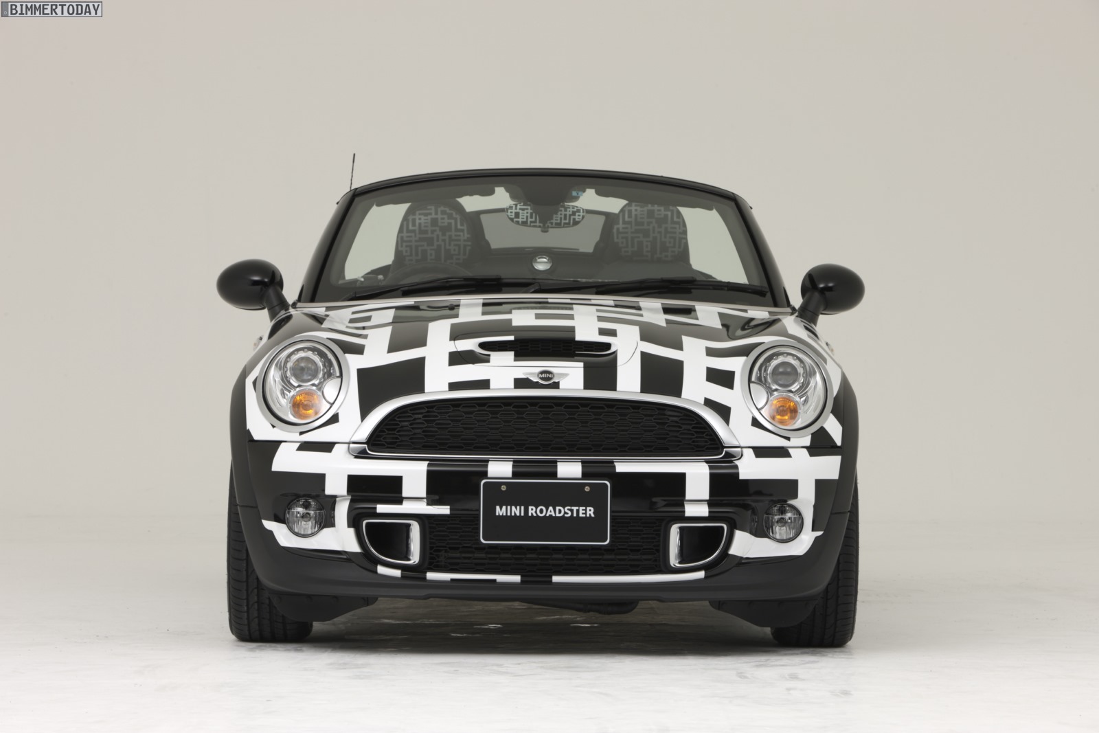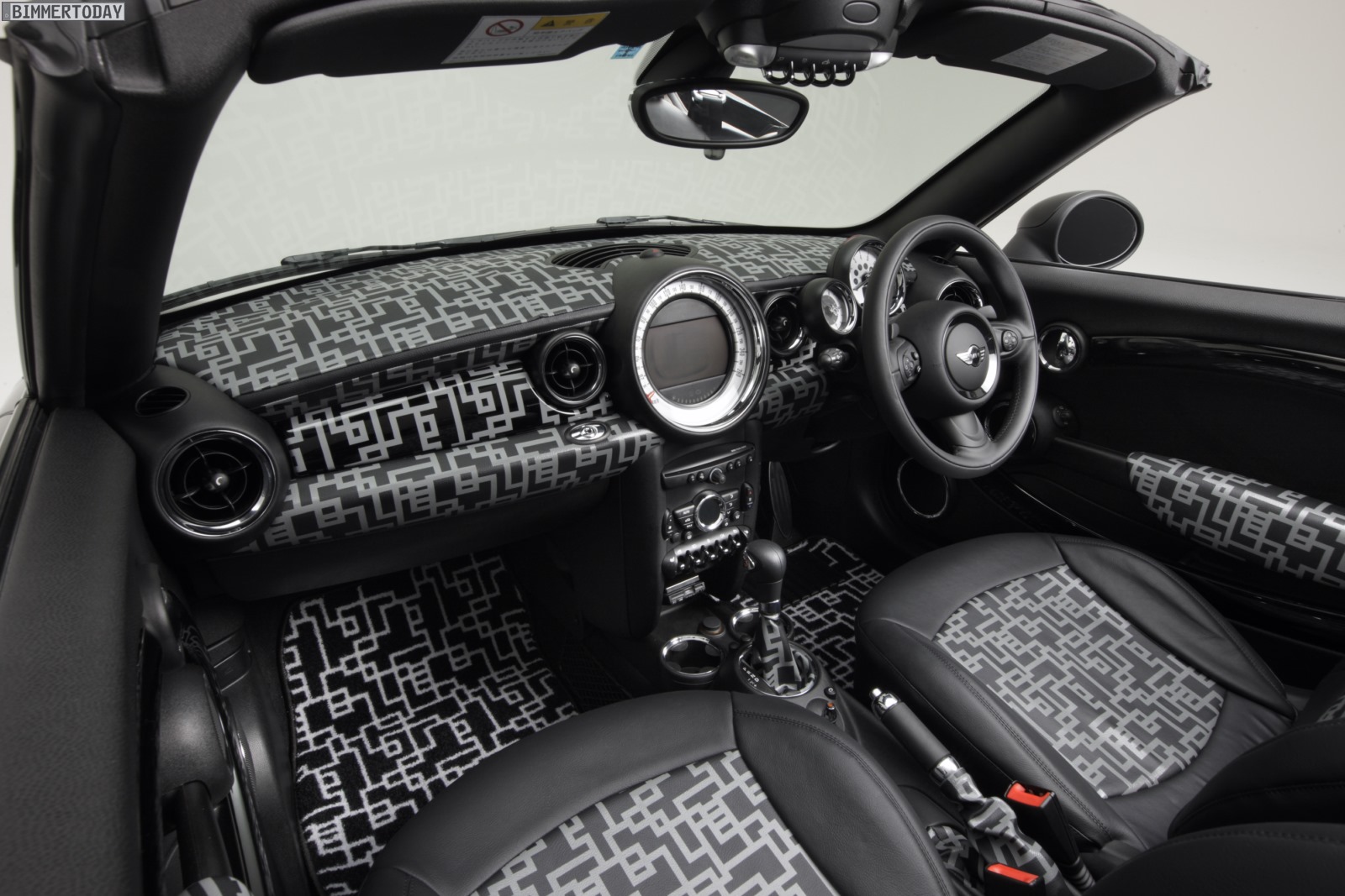 Noch auffälliger als das rot-schwarz designte MINI Coupé ist das MINI Art Car von Tomoyasu Hotei auf Basis des zweisitzigen Roadster, der als Cooper S zur rollenden Leinwand wurde. Die schwarz-weiße Musterung ziert dabei nicht nur das Exterieur, sie setzt sich auch im Innenraum in unverminderter Schärfe fort und findet sich selbst an der Rückseite des Innenspiegels wieder.