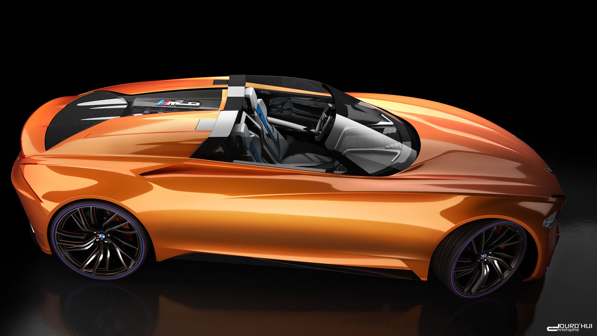 Mit seinem BMW MZ8 wollte Christophe Jourd’hui die Design-Welten von BMW M und Z8 miteinander verbinden. Mit seiner flachen und gestreckten Form strahlt der nur virtuell existente Roadster auf den ersten Blick Freude am Fahren aus, was der Blick auf die Technik eindrucksvoll unterstreicht: Konzipiert ist der BMW MZ8 als Mittelmotor-Sportler, wobei der aktuelle V8-Biturbo S63 mit 4,4 Liter Hubraum in einer fiktiven 600-PS-Leistungsstufe die Hinterräder antreibt.