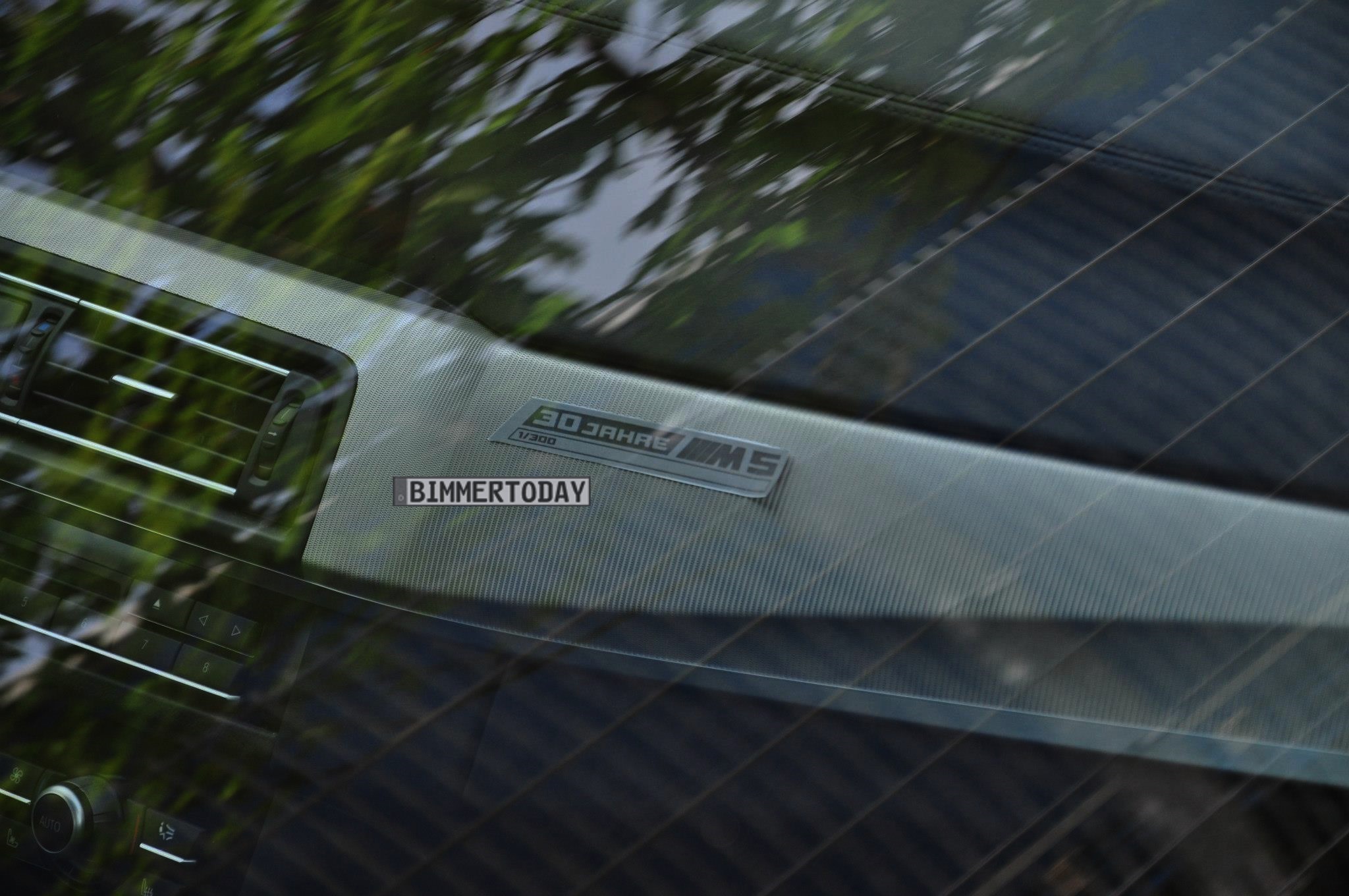 Allem Anschein nach plant man in Garching ein Sondermodell “30 Jahre M5” auf Basis des BMW M5 F10, das auch in Kundenhand übergeben werden soll: Eine Plakette im Innenraum weist das Fahrzeug als “1 / 300” aus, auch wenn es sich natürlich noch nicht um ein Kunden-Exemplar des Sondermodells handeln wird.