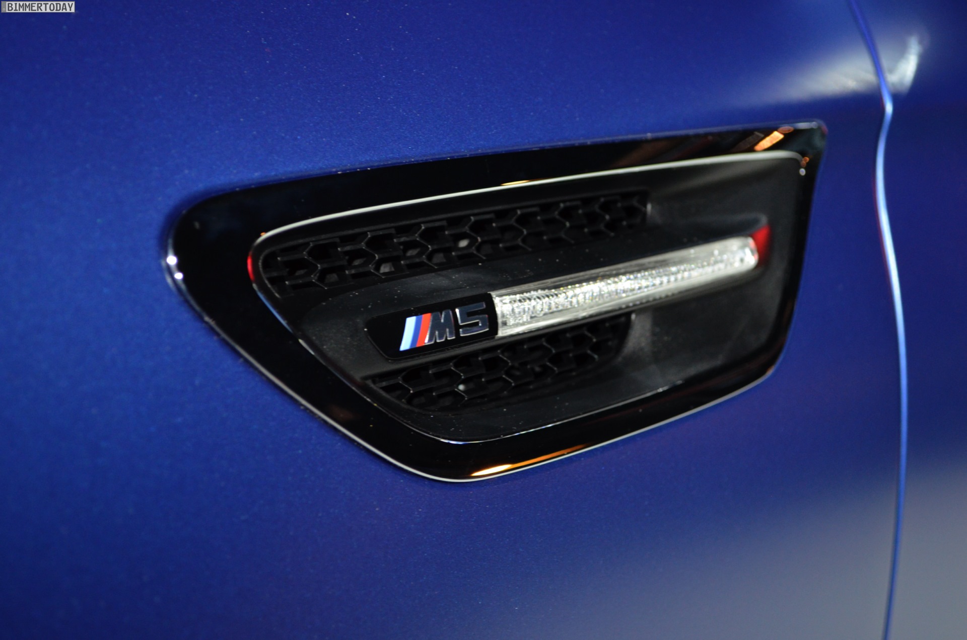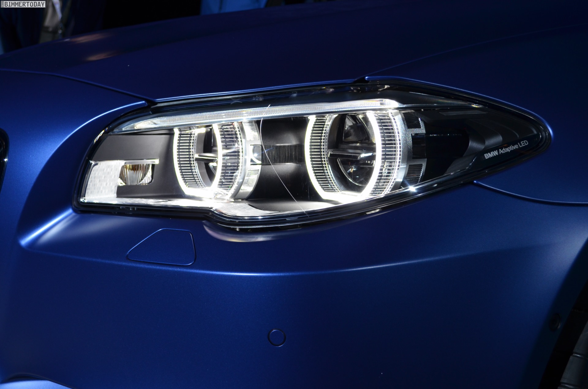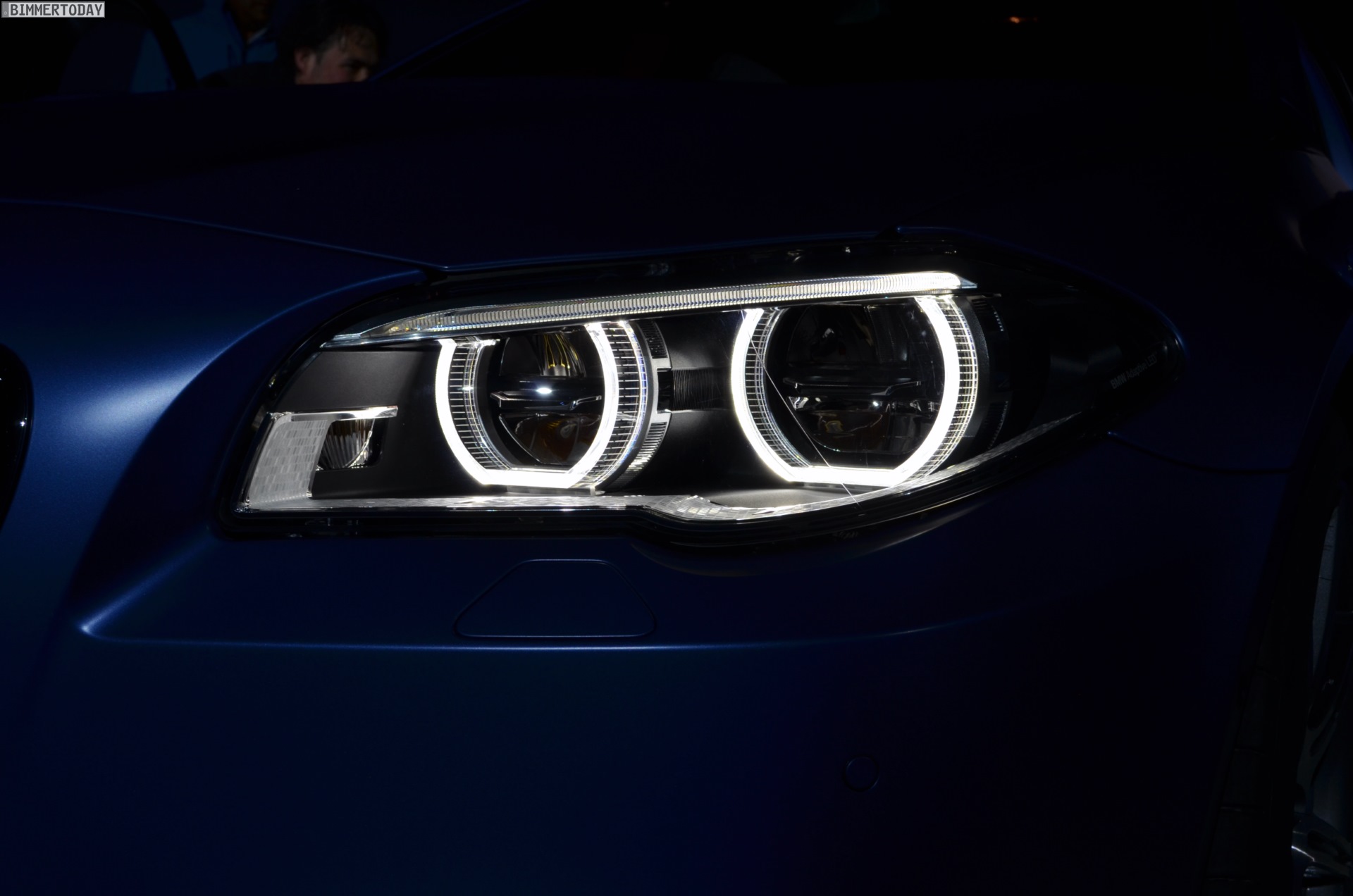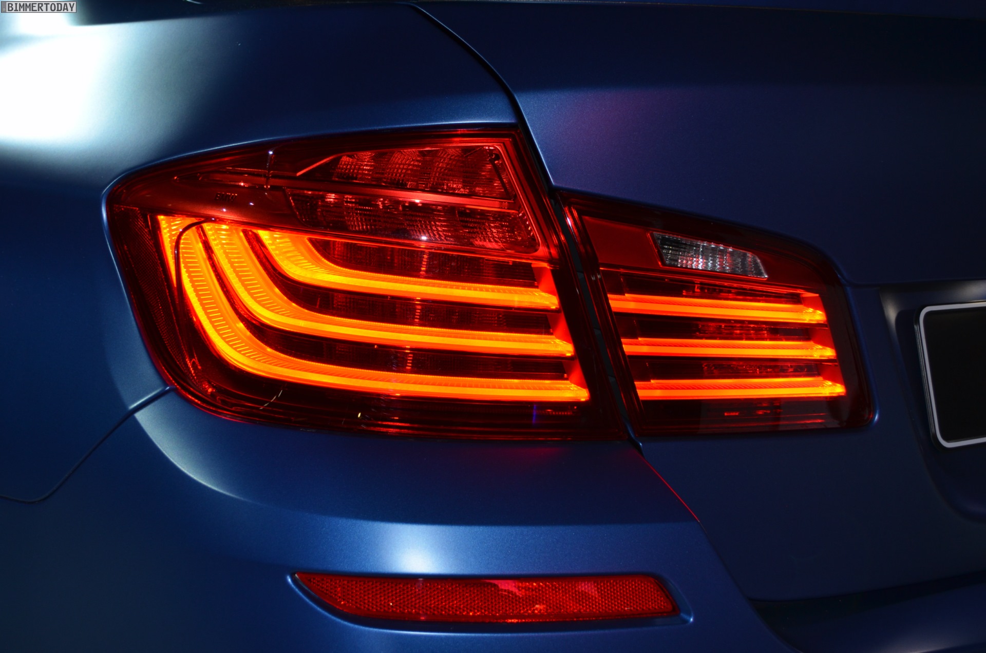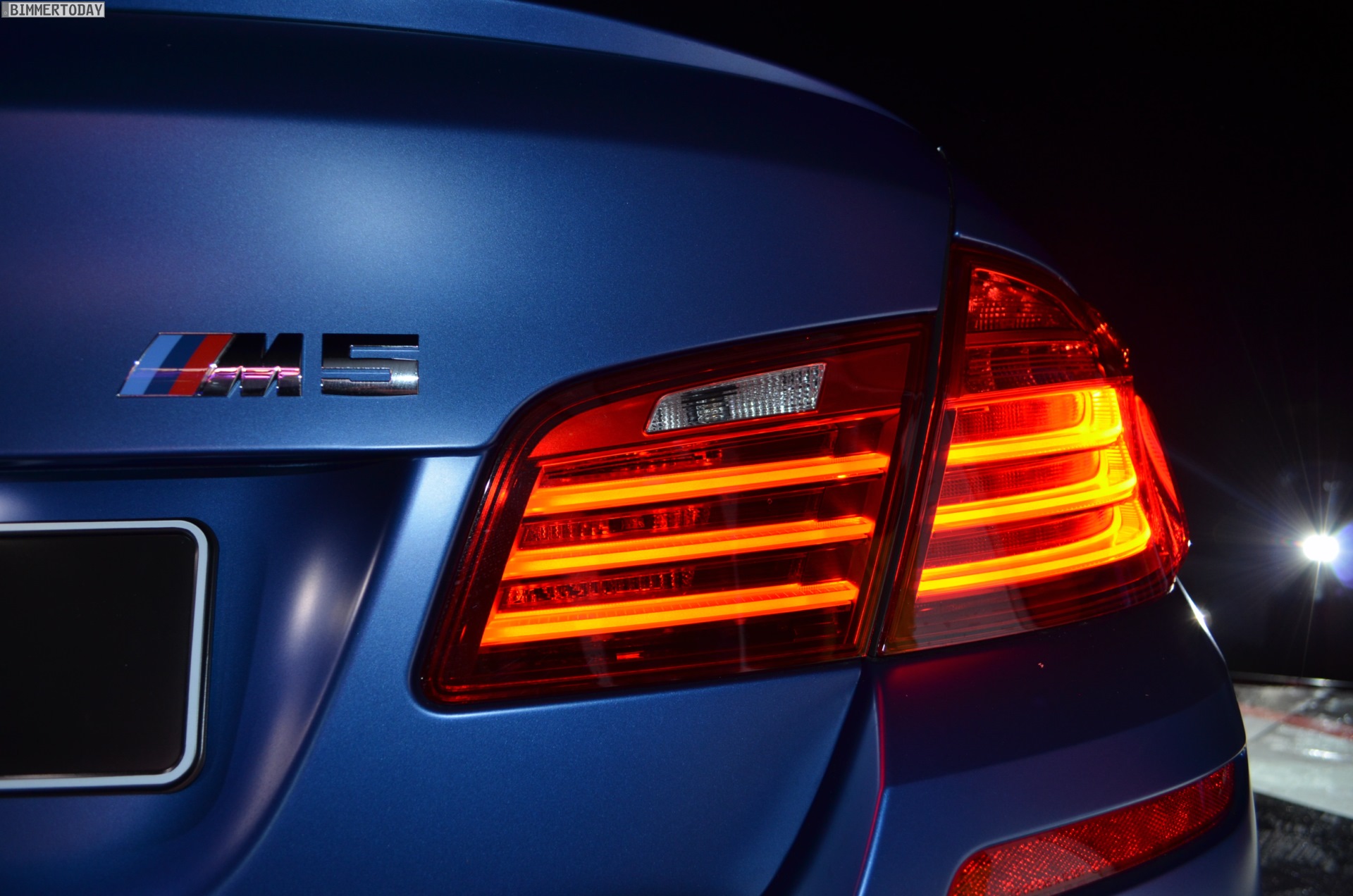 Das Exterieur des BMW M5 Facelift 2013 kommt zudem – unabhängig vom Competition Paket – mit neuen Nieren, die über Streben im Doppelspeichen-Design verfügen und von einem M5-Logo geziert werden. Wie alle F10 LCI ist auch der BMW M5 ab Juli 2013 auf Wunsch mit Voll-LED-Scheinwerfern erhältlich, von denen wir an dieser Stelle exklusiv einige Live-Fotos präsentieren können. Das gilt auch für die Rückleuchten, die über ein neues Innenleben mit drei schmalen, L-förmigen und dreidimensional ausgeführten Leuchtbänken verfügen.