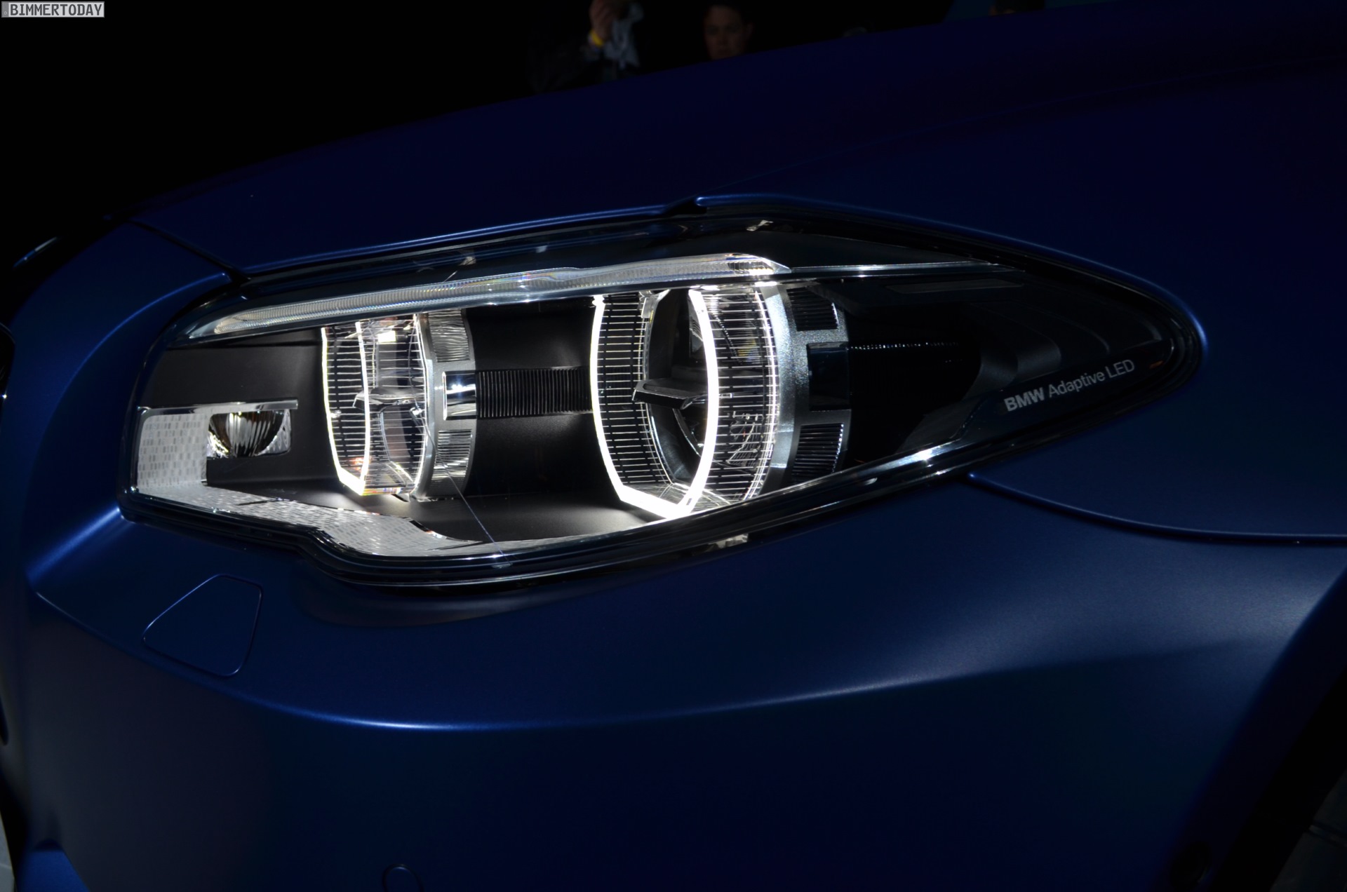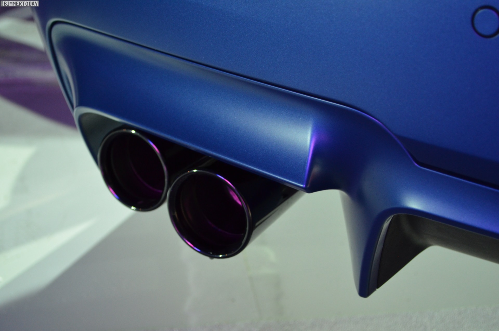Das ausgestellte Fahrzeug trägt die neue Individual-Lackierung in BMW Frozen Blue Metallic, bei der es sich um eine mehrschichtige Metallic-Lackierung mit mattem Klarlack handelt. Zu sehen sind außerdem die 20 Zoll großen Felgen und die schwarzen Endrohre der Sportabgasanlage, die nur mit dem Competition Paket erhältlich sind.