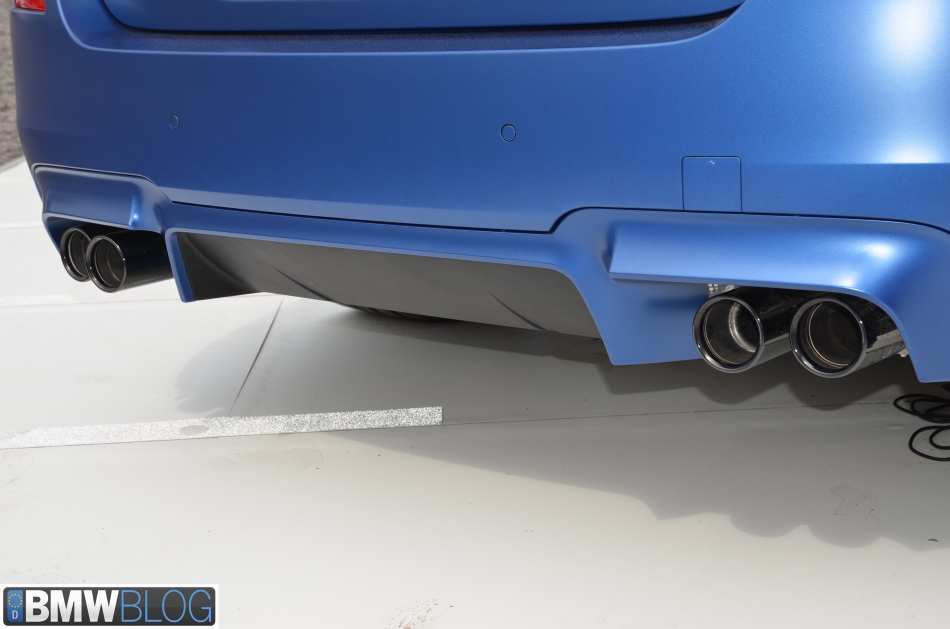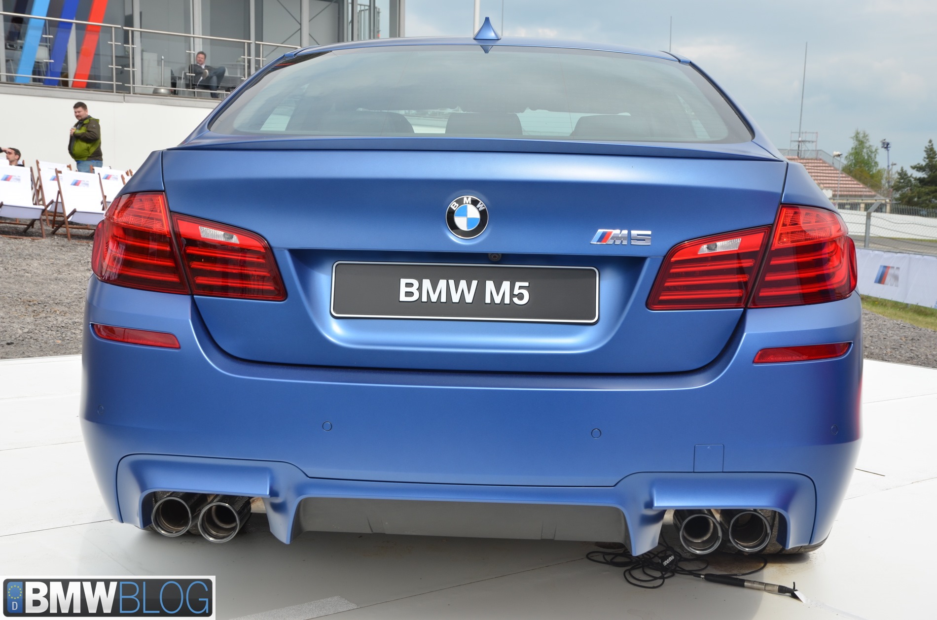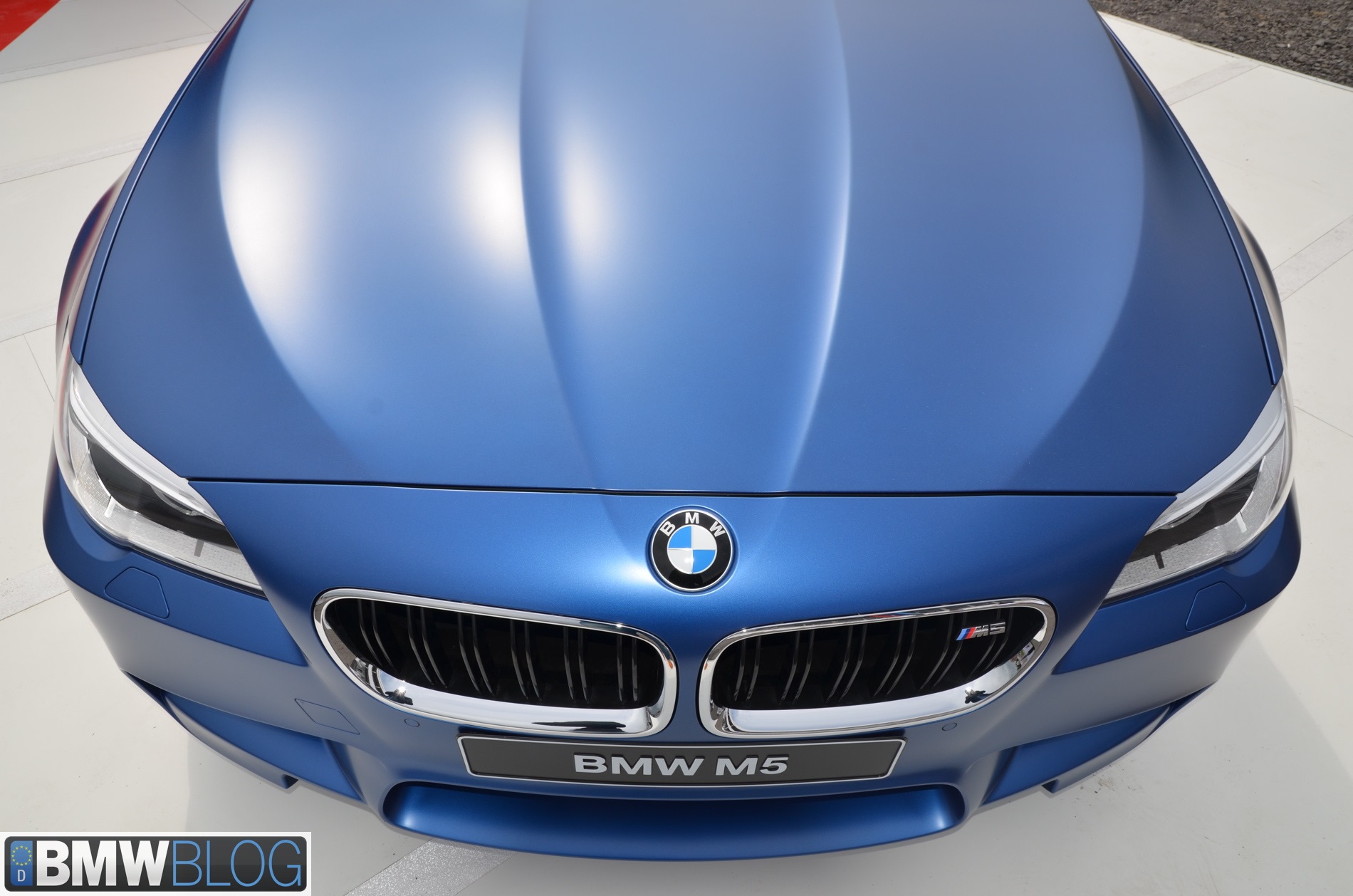 Nach unseren Bildern von der Weltpremiere in der Nacht können wir nun dank BMWblog.com auch einige Fotos vom BMW M5 2013 mit Competition Paket in Frozen Blue Metallic bei Tag nachreichen. Sowohl die matte Lackierung als auch die Details der neuen Niere mit M5-Logo, der Abgasanlage mit dunklen Endrohren und der optionalen Voll-LED-Scheinwerfer kommen dabei nochmals in einem anderen Licht zur Geltung.