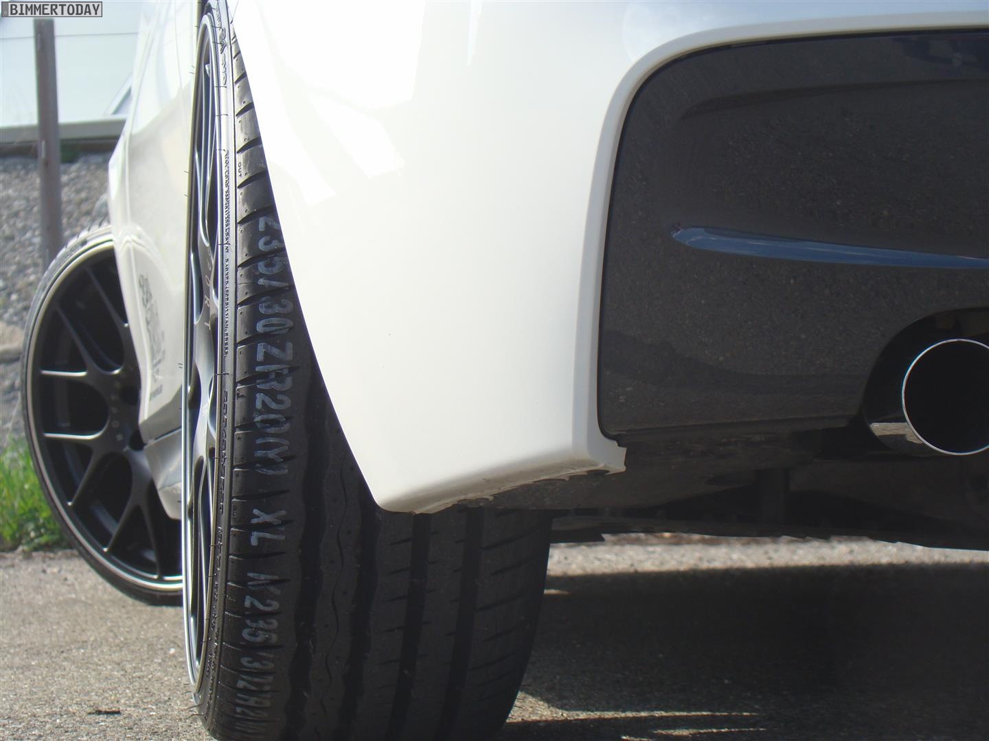 Für eine verschärfte Optik sorgen neben den mattschwarzen Felgen auch die mattschwarz folierten Flaps an der Frontschürze des M Sportpakets, die Dekor-Streifen an der Seite und die ebenfalls mattschwarz folierte Oberseite des Serien-Heckspoilers. Abgerundet wird der Schwarz-Weiß-Look von ab der B-Säule abgedunkelten Scheiben und den Black Line-Rückleuchten, die im BMW Zubehör-Programm erhältlich sind.