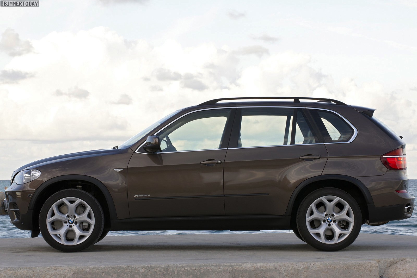 Ansonsten beschränken sich die optischen Änderungen fast vollständig auf die Leuchteinheiten an Front und Heck, wobei vorn eine ähnliche Lösung wie bei 3er und 4er mit bis an die Niere reichenden Scheinwerfern Verwendung findet. In der Seitenansicht sorgen stärker ausgeformte Lichtkanten und Sicken sowie flachere Dachgepäckträger für mehr Dynamik beim BMW X5 2013.