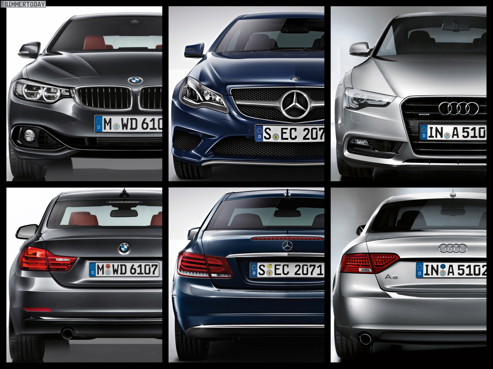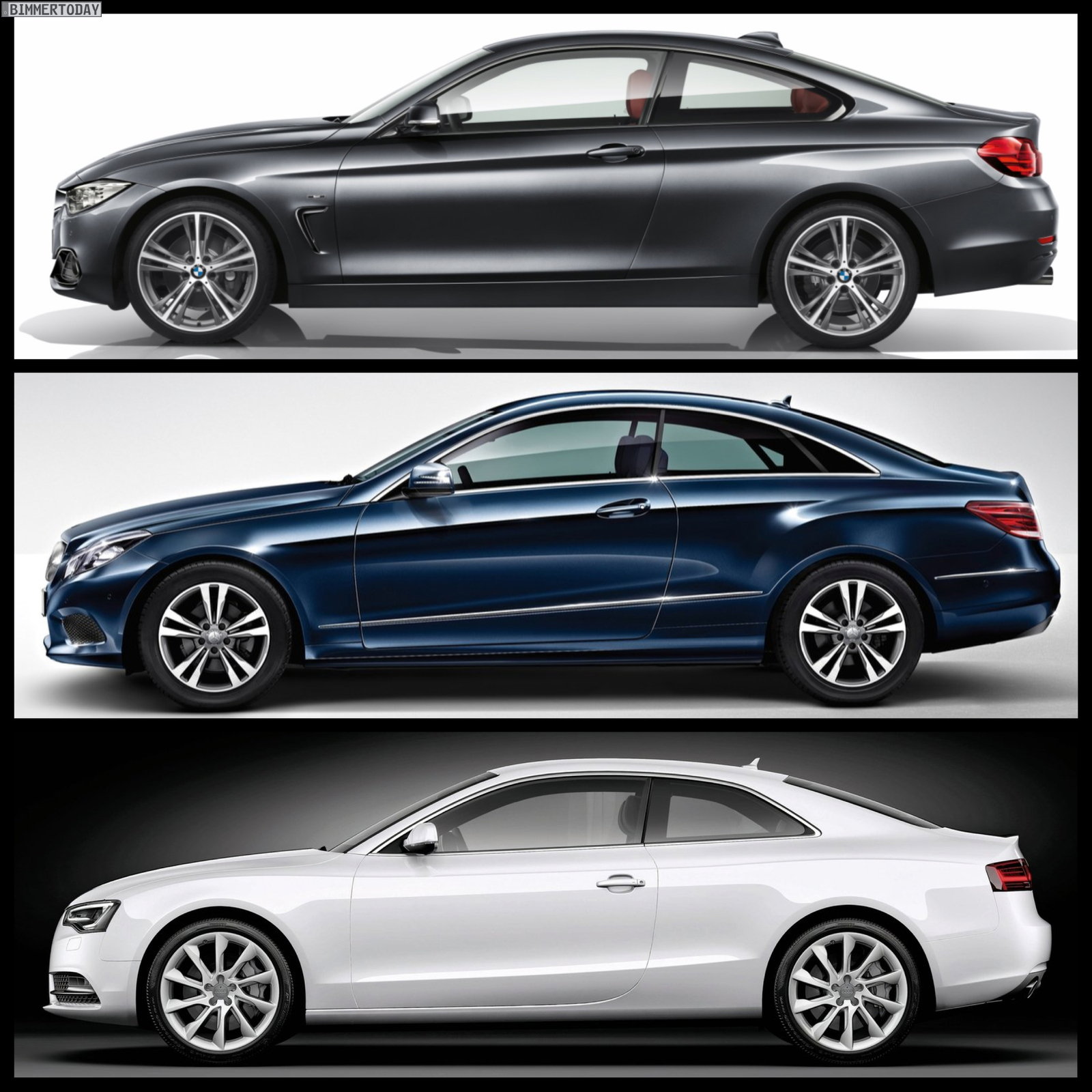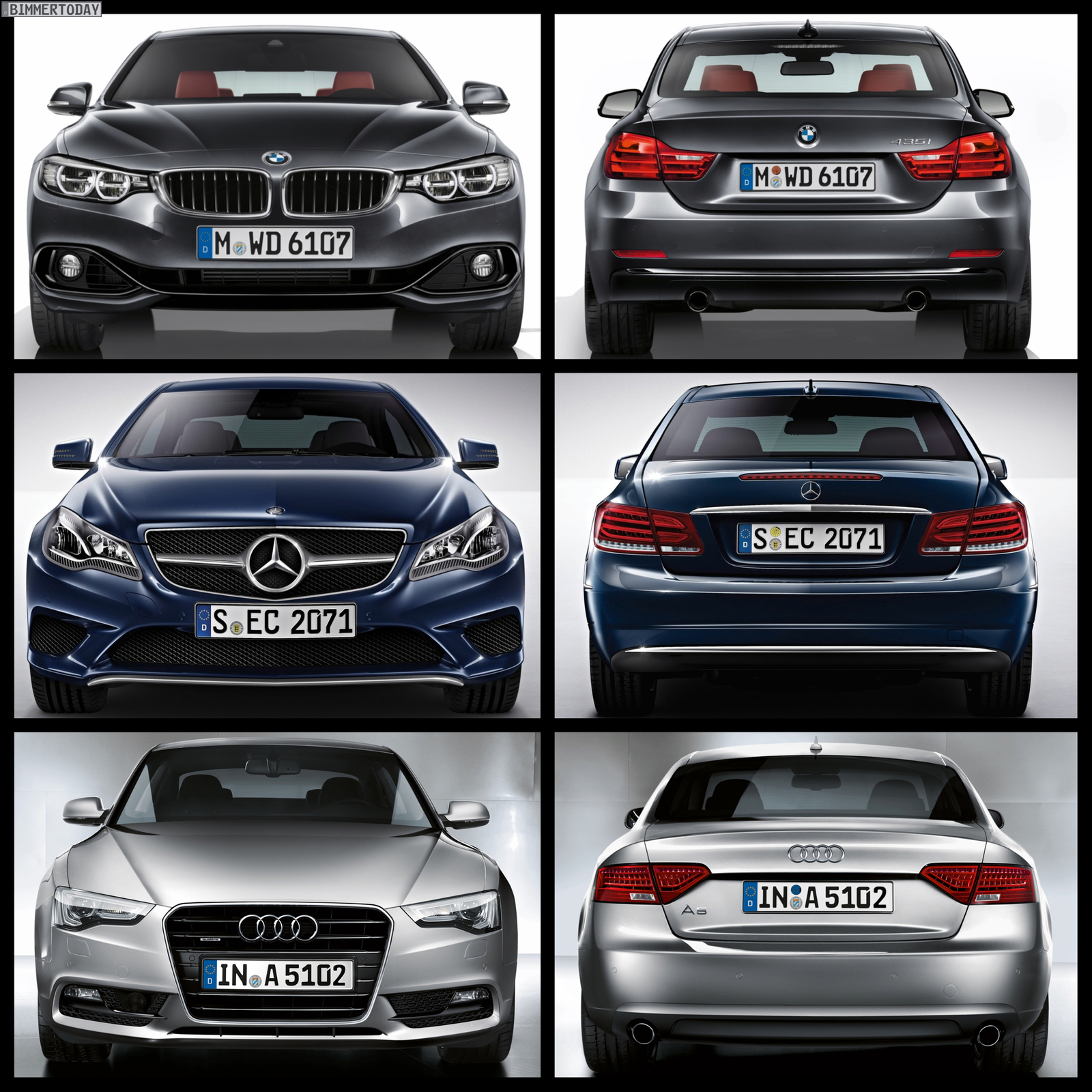 Nachdem die Hüllen von der Serienversion des BMW 4er F32 endlich gefallen sind, ist es höchste Zeit für einen ersten Bildvergleich mit den beiden schärfsten Gegnern des E92-Nachfolgers. Diese kommen ebenfalls aus Deutschland und befinden sich bereits in der zweiten Hälfte ihres Modellzyklus, weshalb beide Fahrzeuge bereits ein Facelift tragen.