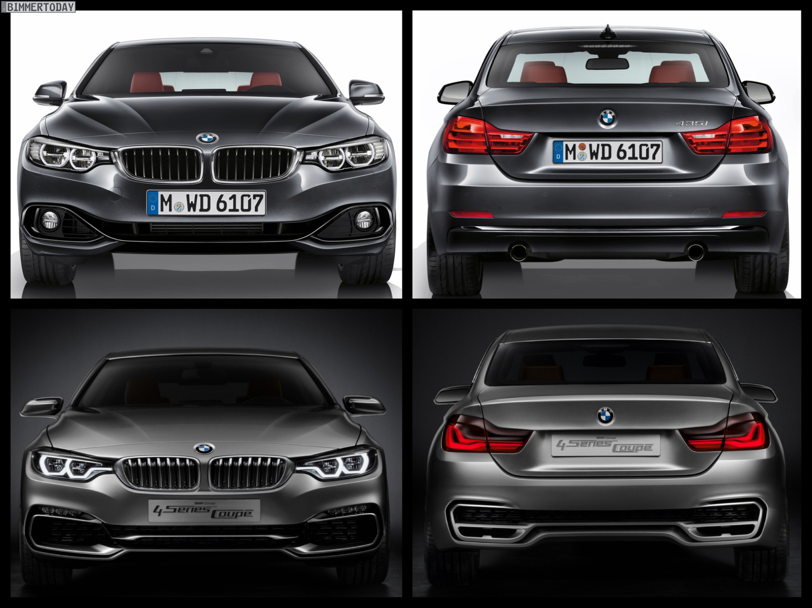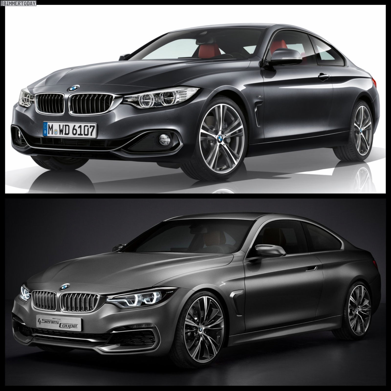 Besonders groß fallen die Unterschiede an der Heckschürze und bei der Lichttechnik aus, im Vergleich mit dem Concept Car zeigt sich der Serien-4er hier deutlich konventioneller und weniger speziell. Die grundlegenden Proportionen und Abmessungen sind allerdings praktisch identisch, wie speziell in der Seitenansicht deutlich wird.