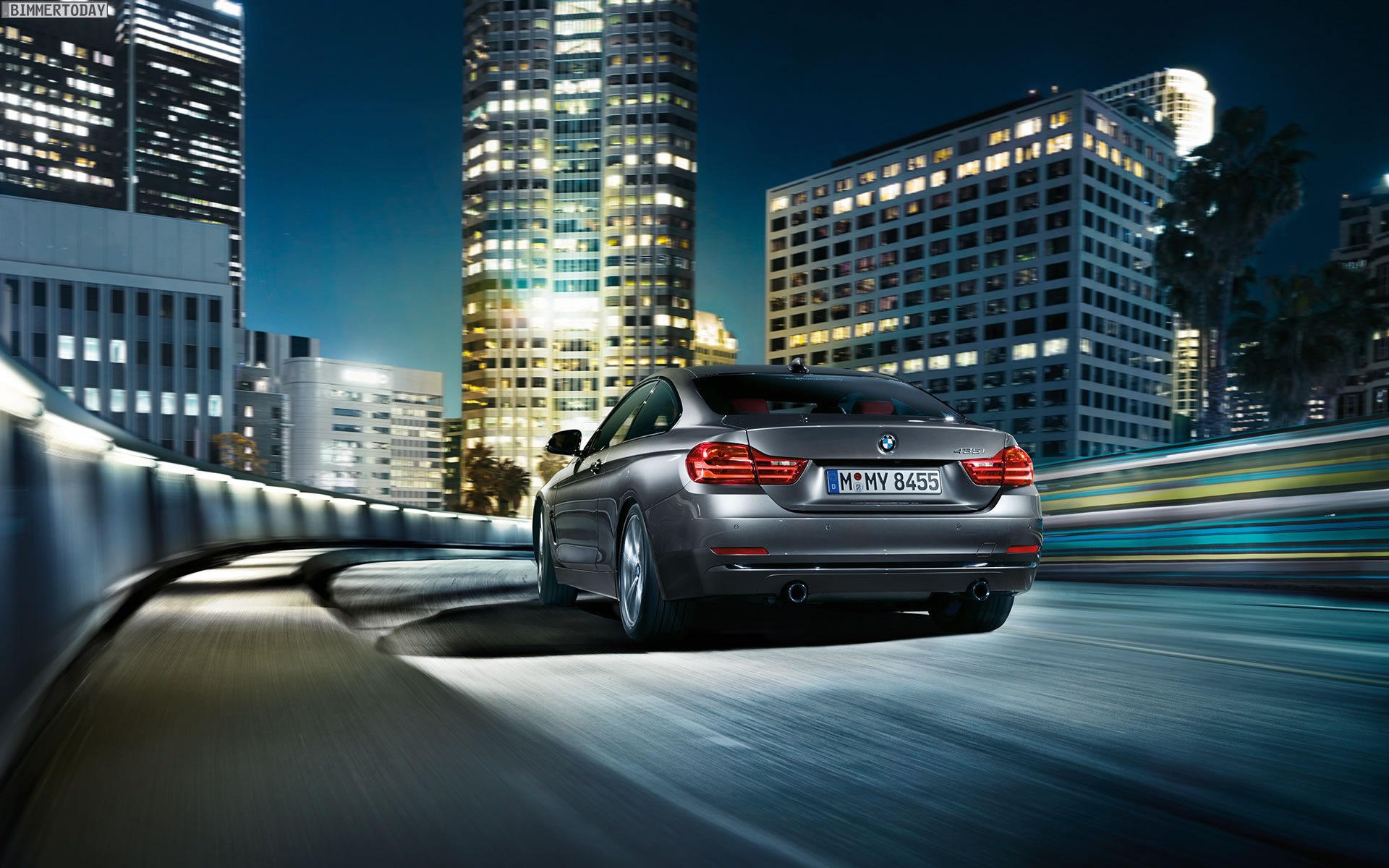 Zu sehen ist das neue BMW 4er Coupé F32 bei Nacht in einer Großstadt, was uns den bisher besten Eindruck von der Lichttechnik und Nacht-Optik des E92-Nachfolgers beschert. Der 435i mit Sport Line glänzt dabei natürlich mit den adaptiven Voll-LED-Scheinwerfern, die für 1.900 Euro Aufpreis bestellt werden können.