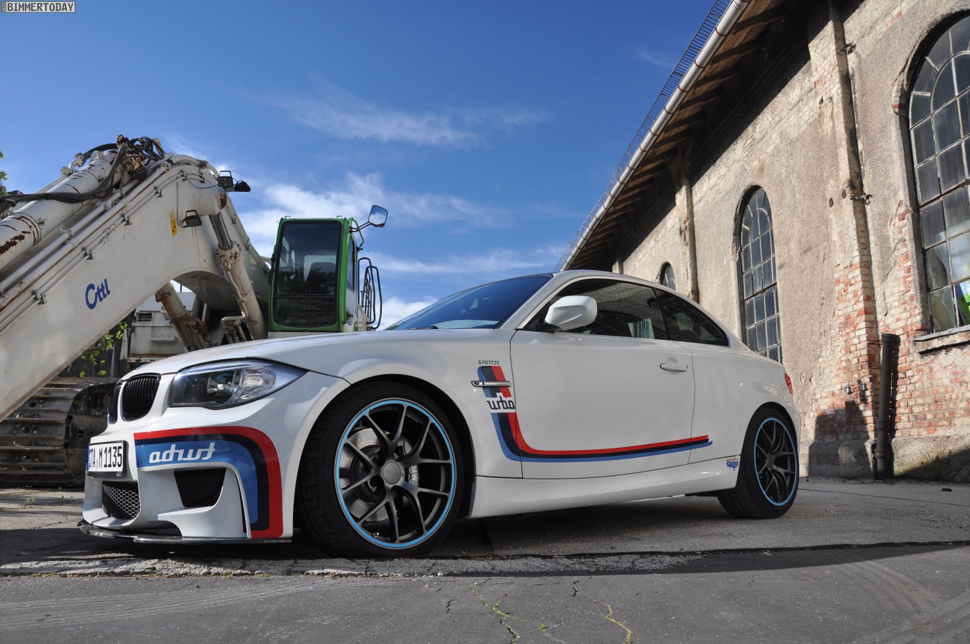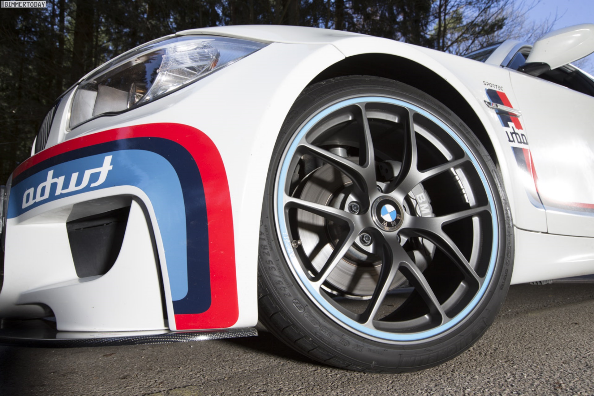 Die Schweizer Tuning-Schmiede Sportec greift den seinerzeit provokanten Auftritt des BMW 2002 turbo nun wieder auf und schickt ein BMW 1er M Coupé an den Start, das mit der gleichen Kriegsbemalung glänzt, die den turbo 1973 ins Abseits manövrierte. Genau wie der Klassiker bietet auch das inzwischen nicht mehr gebaute BMW 1er M Coupé ein sehr gutes Leistungsgewicht und lädt den Fahrer jederzeit zum Driften ein, wenn ihm danach ist.