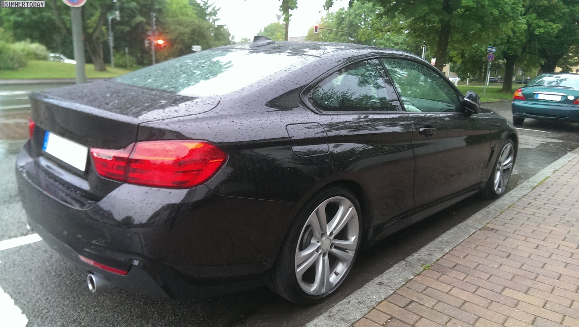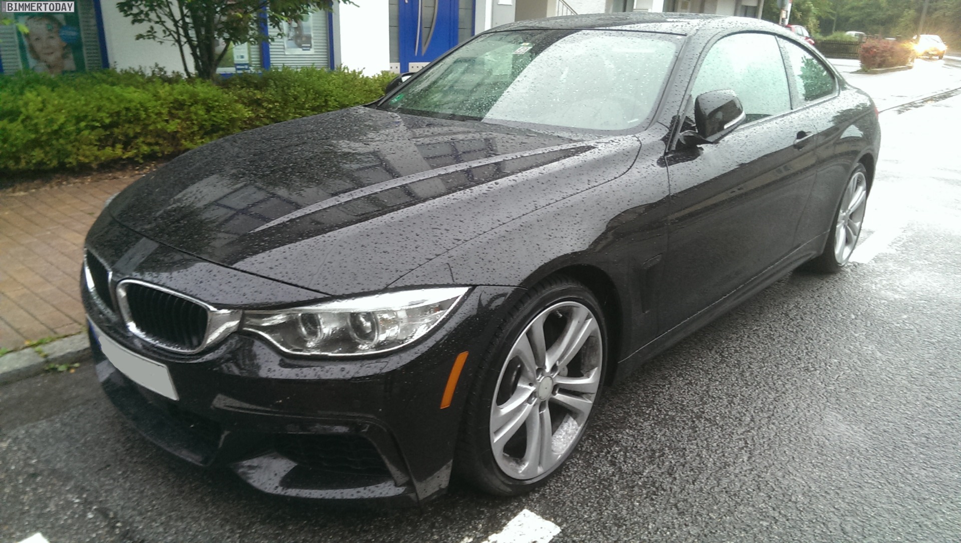 Es handelt sich dabei nicht um irgendeinen BMW 4er F32, sondern um das vorläufige Topmodell BMW 435i mit M Sportpaket. Wie die orangen Reflektoren vor den Vorderrädern verraten, sehen wir die US-Version des Mittelklasse-Coupés, das erst auf der IAA 2013 offiziell enthüllt wird.