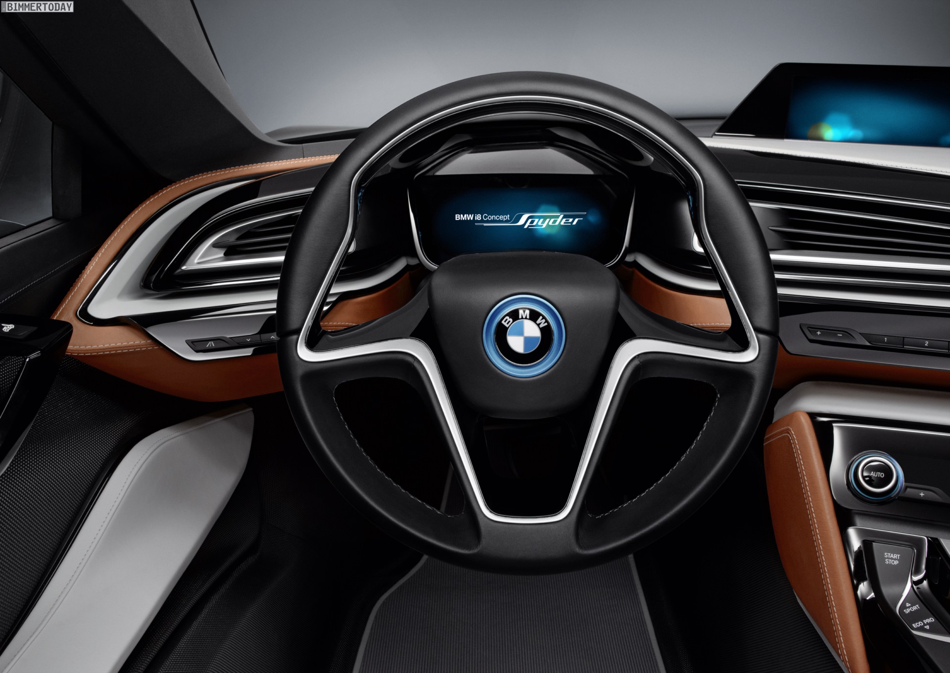 Mit einem Leergewicht von 1.630 Kilogramm ist das rund 15 Zentimeter kürzere BMW i8 Spyder Concept exakt 150 Kilogramm schwerer als das i8 Coupé, der Kofferraum fällt mit 100 Liter etwas kleiner aus als beim Coupé (150 Liter). Für das komplette Aufladen der wie im Coupé zwischen Fahrer und Beifahrer untergebrachten Lithium-Ionen-Batterie werden selbst an einer gewöhnlichen Steckdose nur eine Stunde und 45 Minuten benötigt.